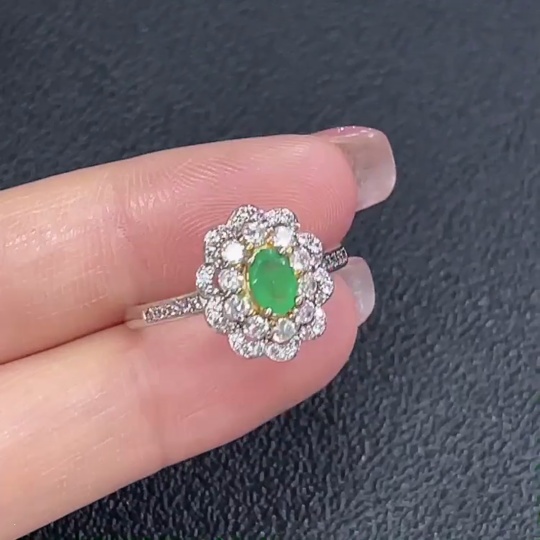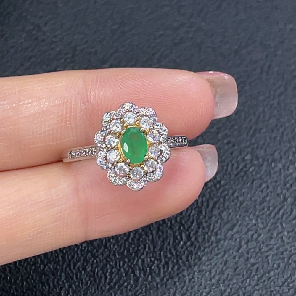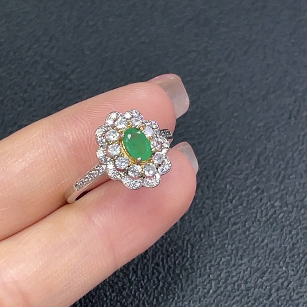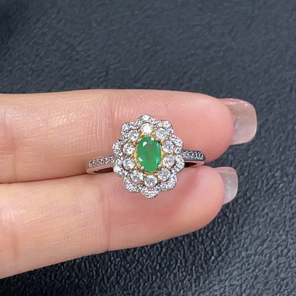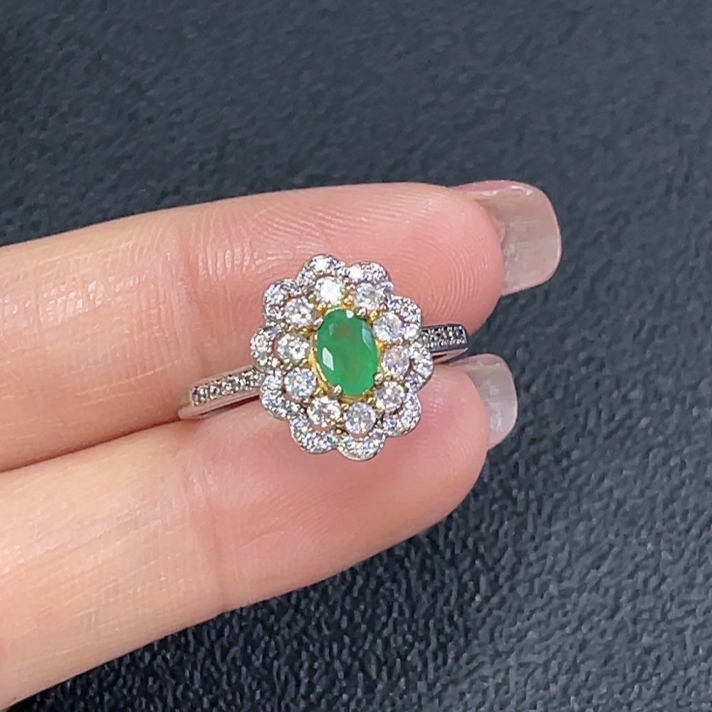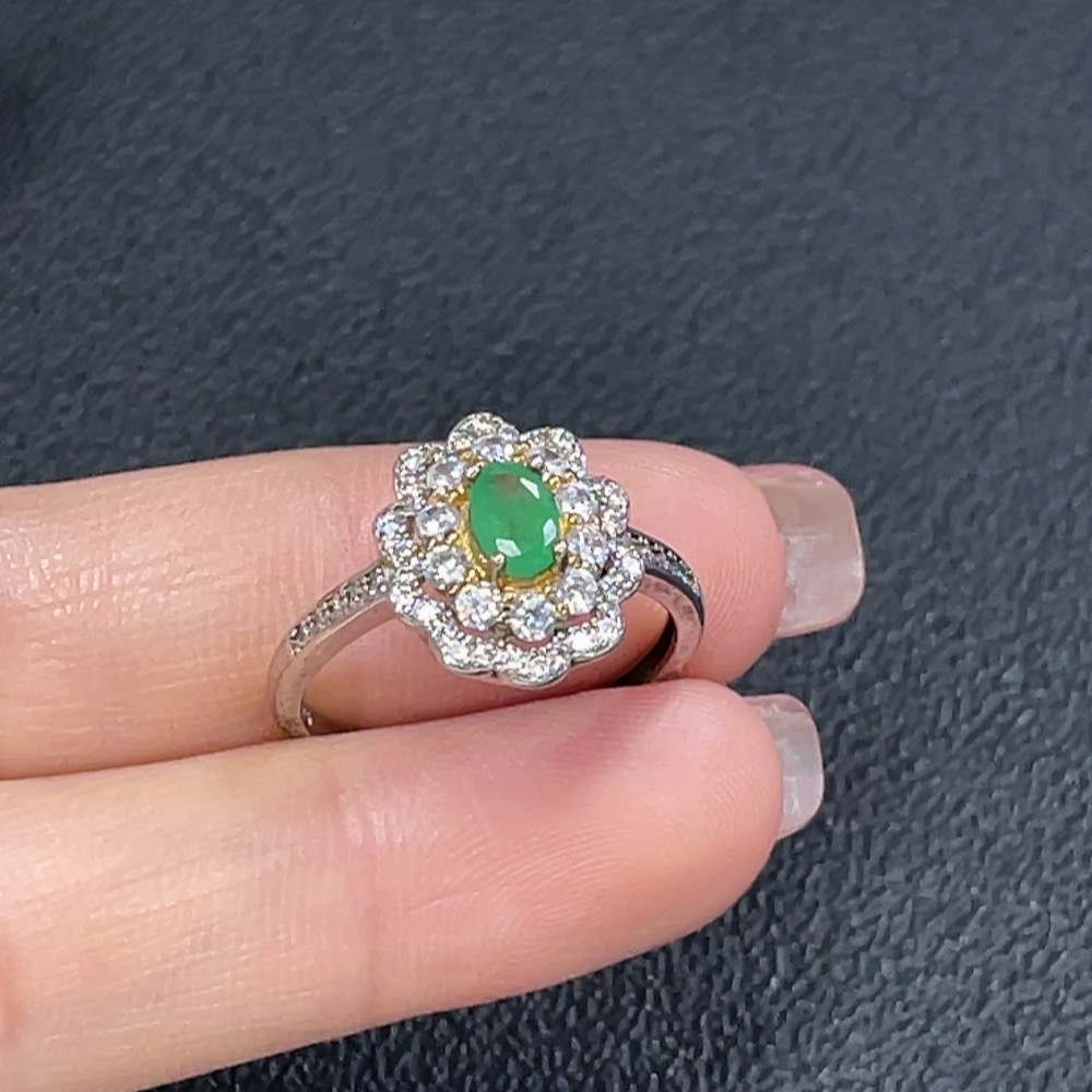 Emerald Ring Clarity Enhanced Non-Gold Setting Adjustable Shank Total Weight Approx. 2.7g