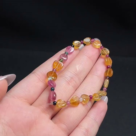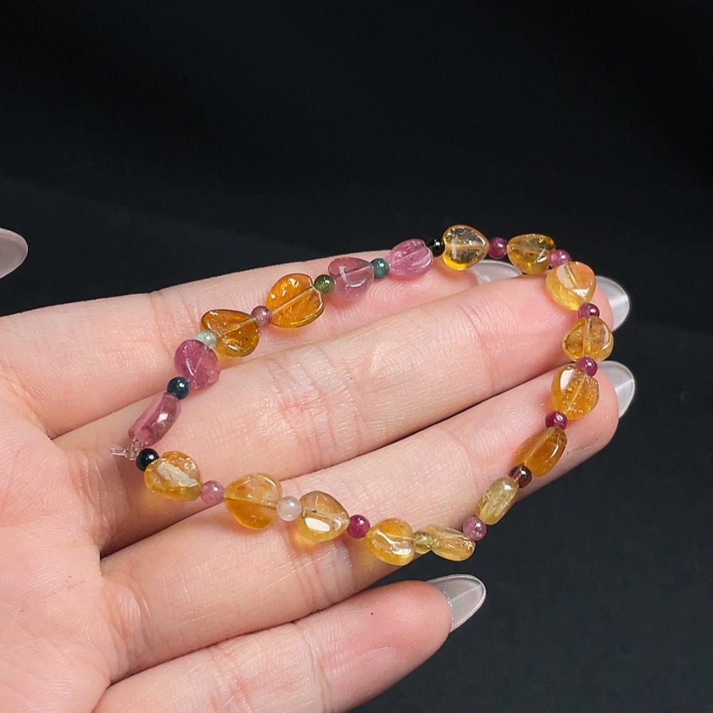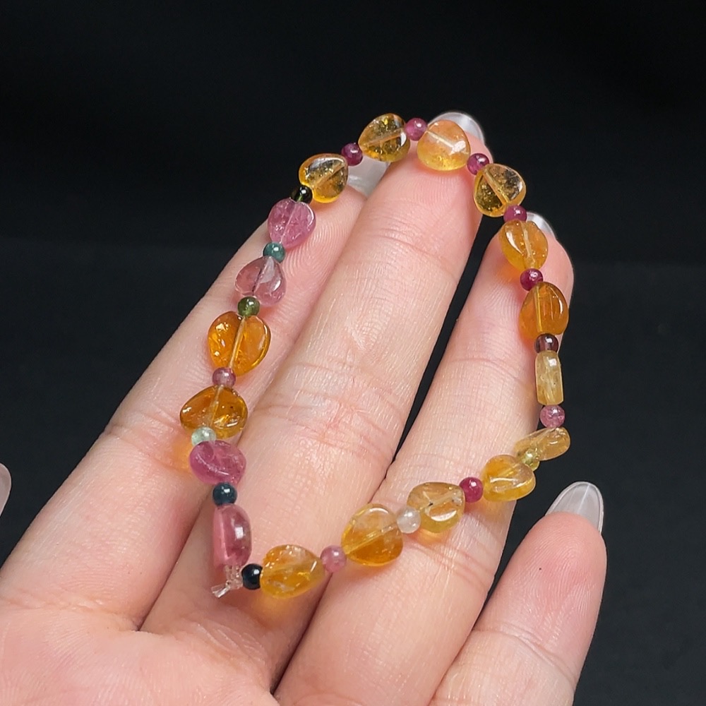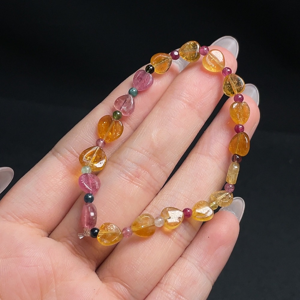 Tourmaline Bracelet with Other Mineral Components, Visible Organic Matter, Total Weight Approx. 4.66g, Size About 6.9mm