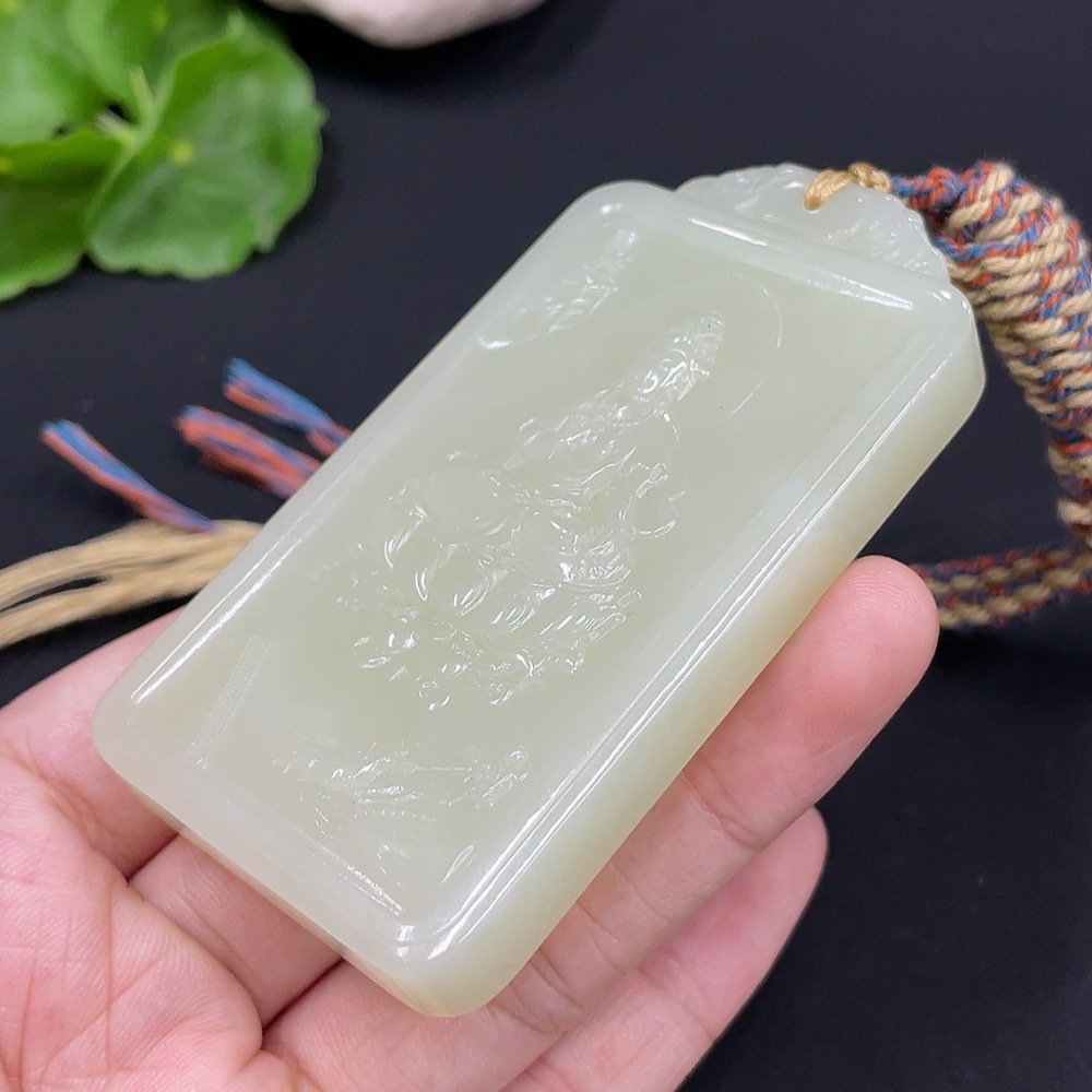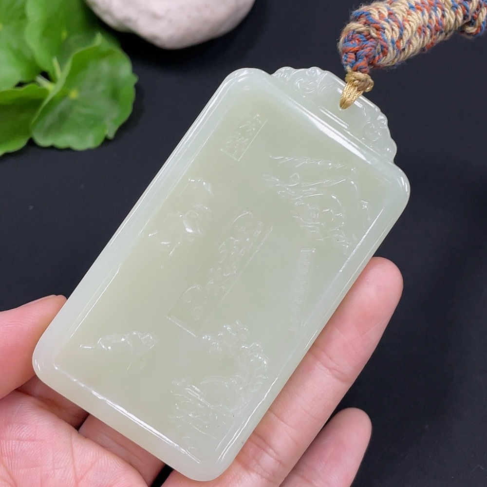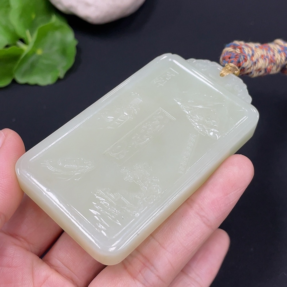 Hetian Jade Pendant Landscape Plaque Total Weight (including rope) 77.9g