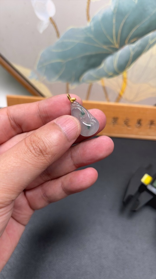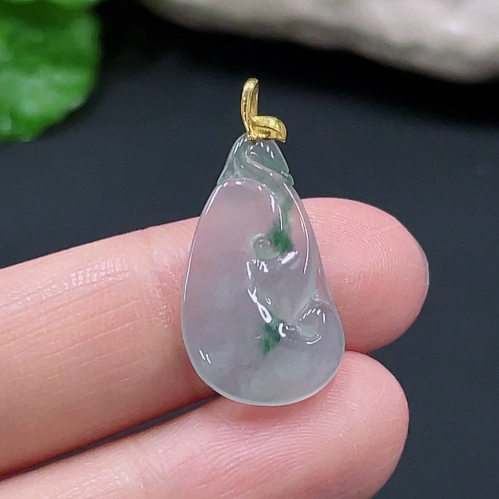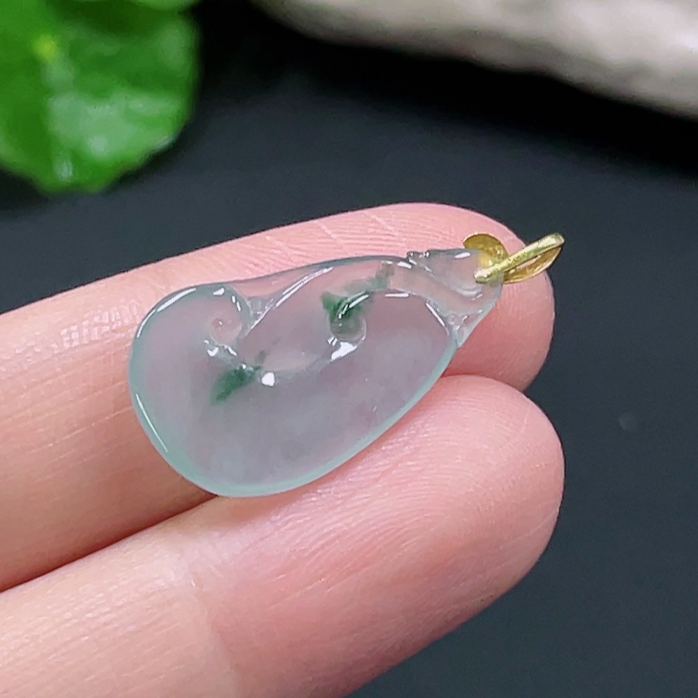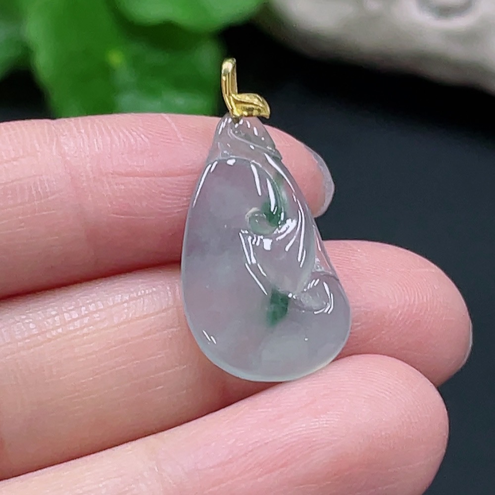 Jadeite Ruyi Pendant with 18K Gold Clasp, Total Weight Approximately 1.89g