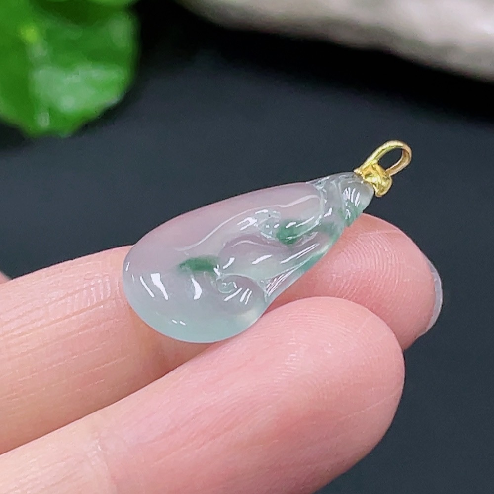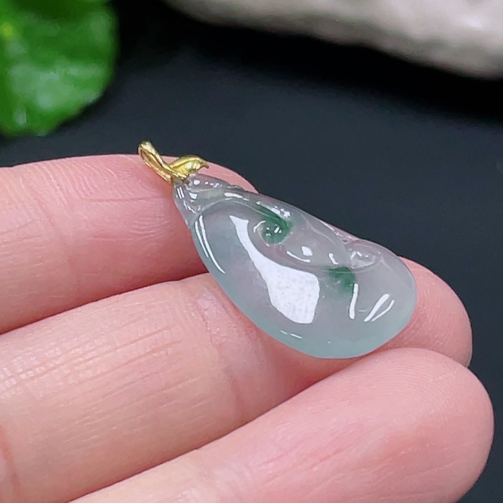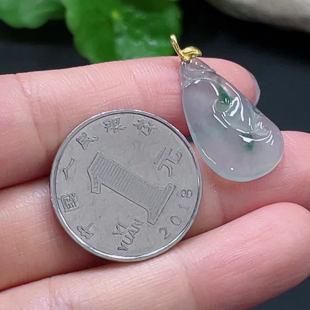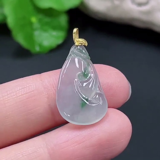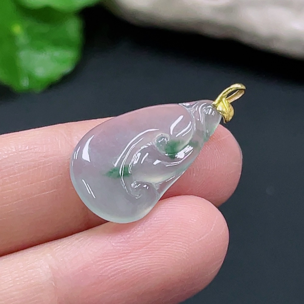 Jadeite Ruyi Pendant with 18K Gold Clasp, Total Weight Approximately 1.89g