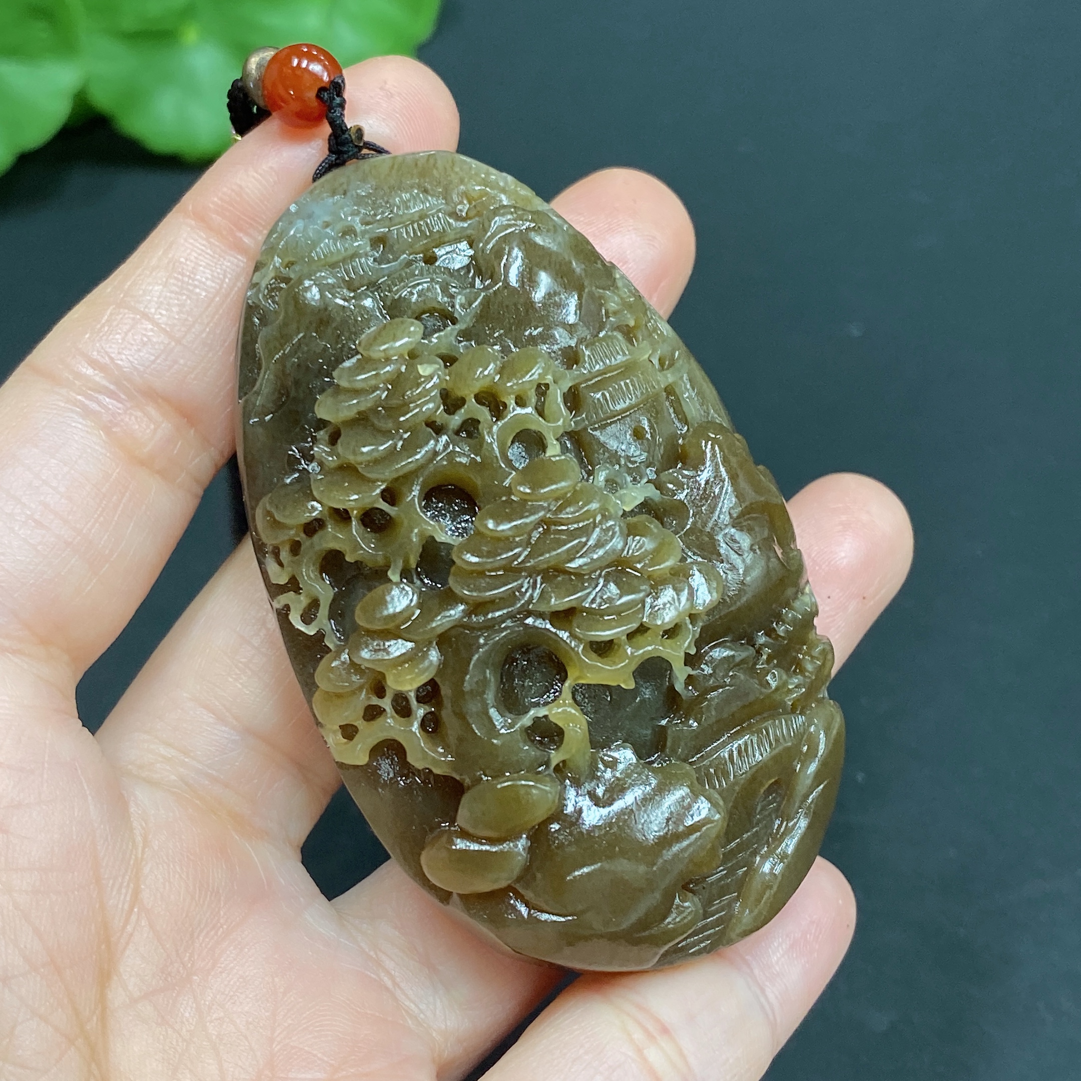 Hetian Jade Pendant Landscape Total Weight (including rope) Approx. 71.5g