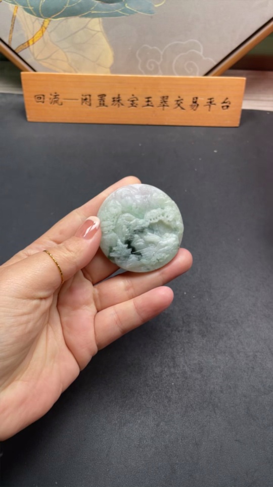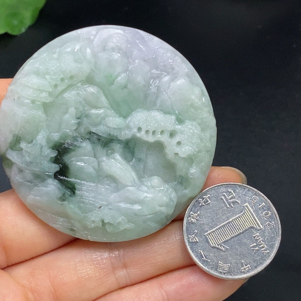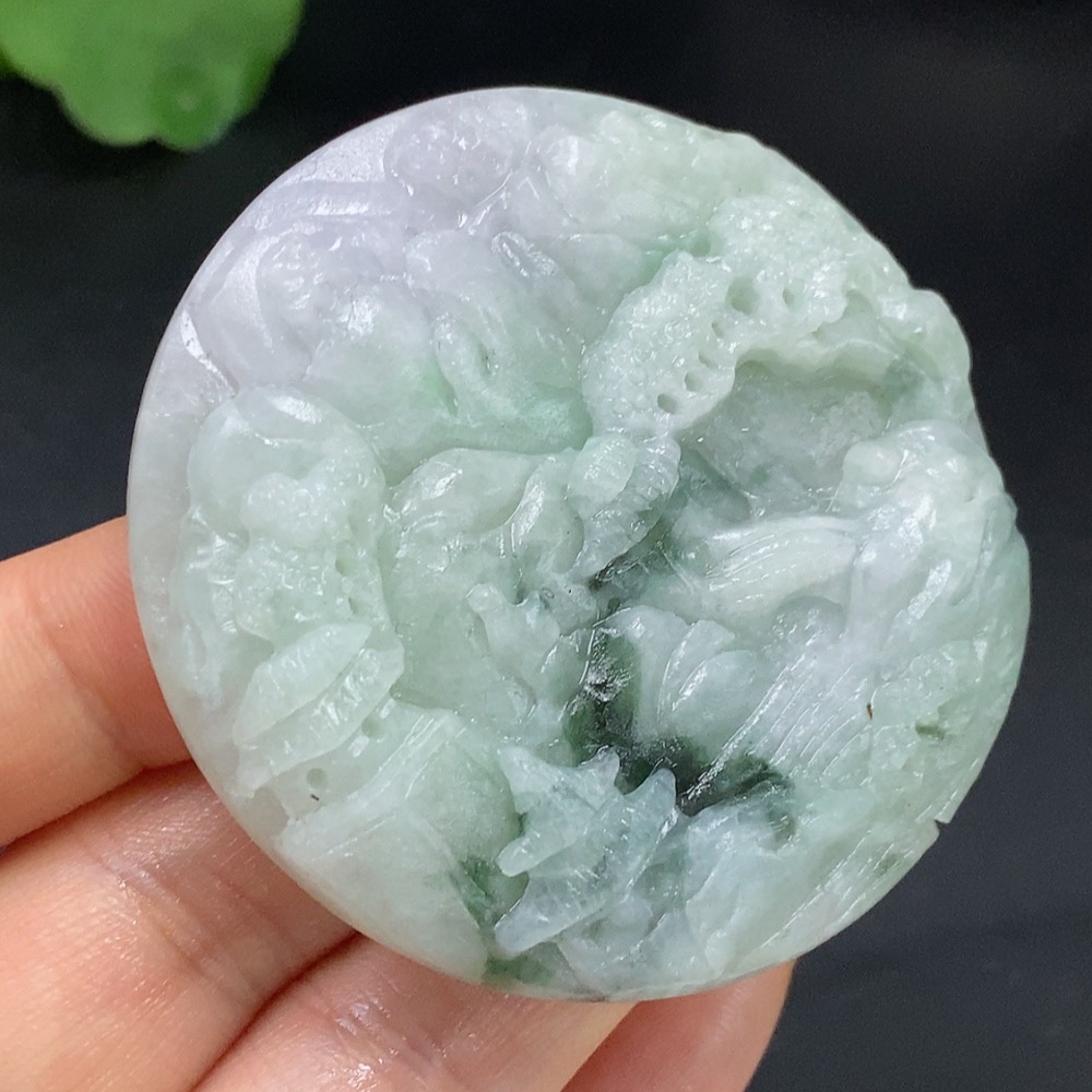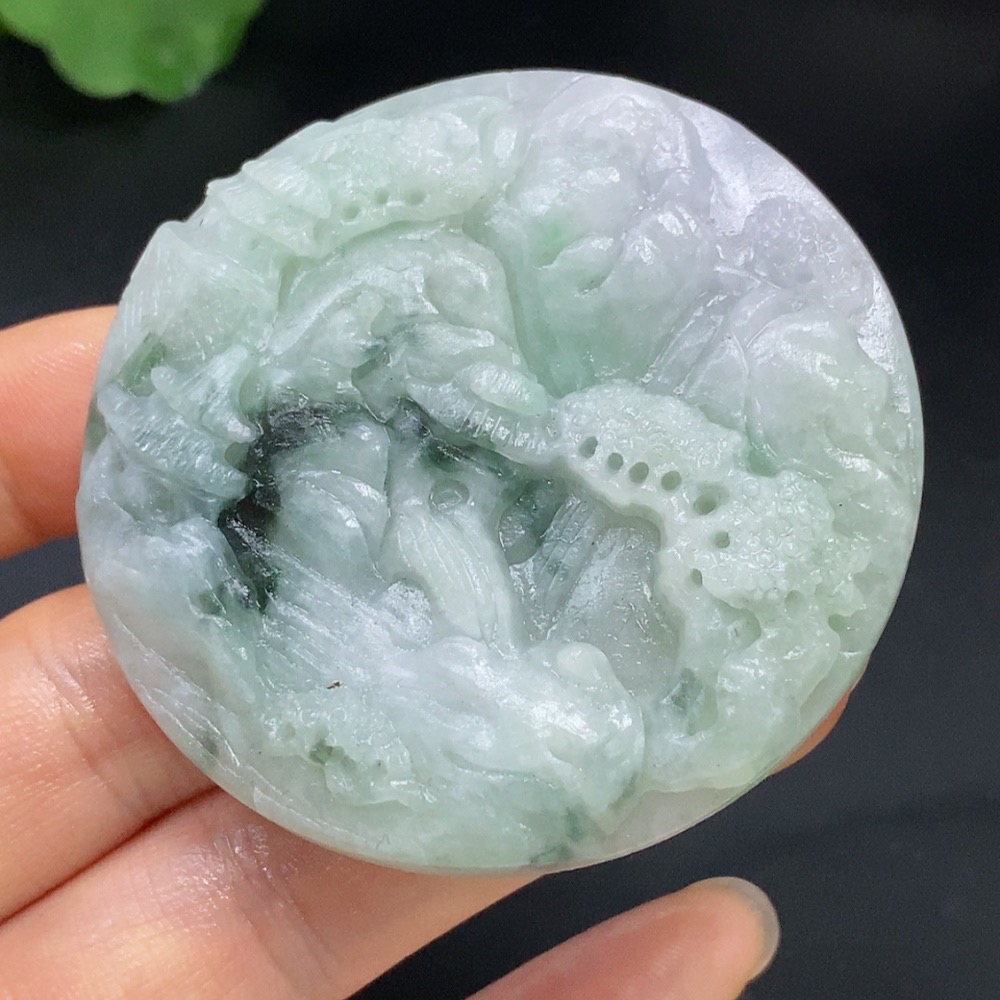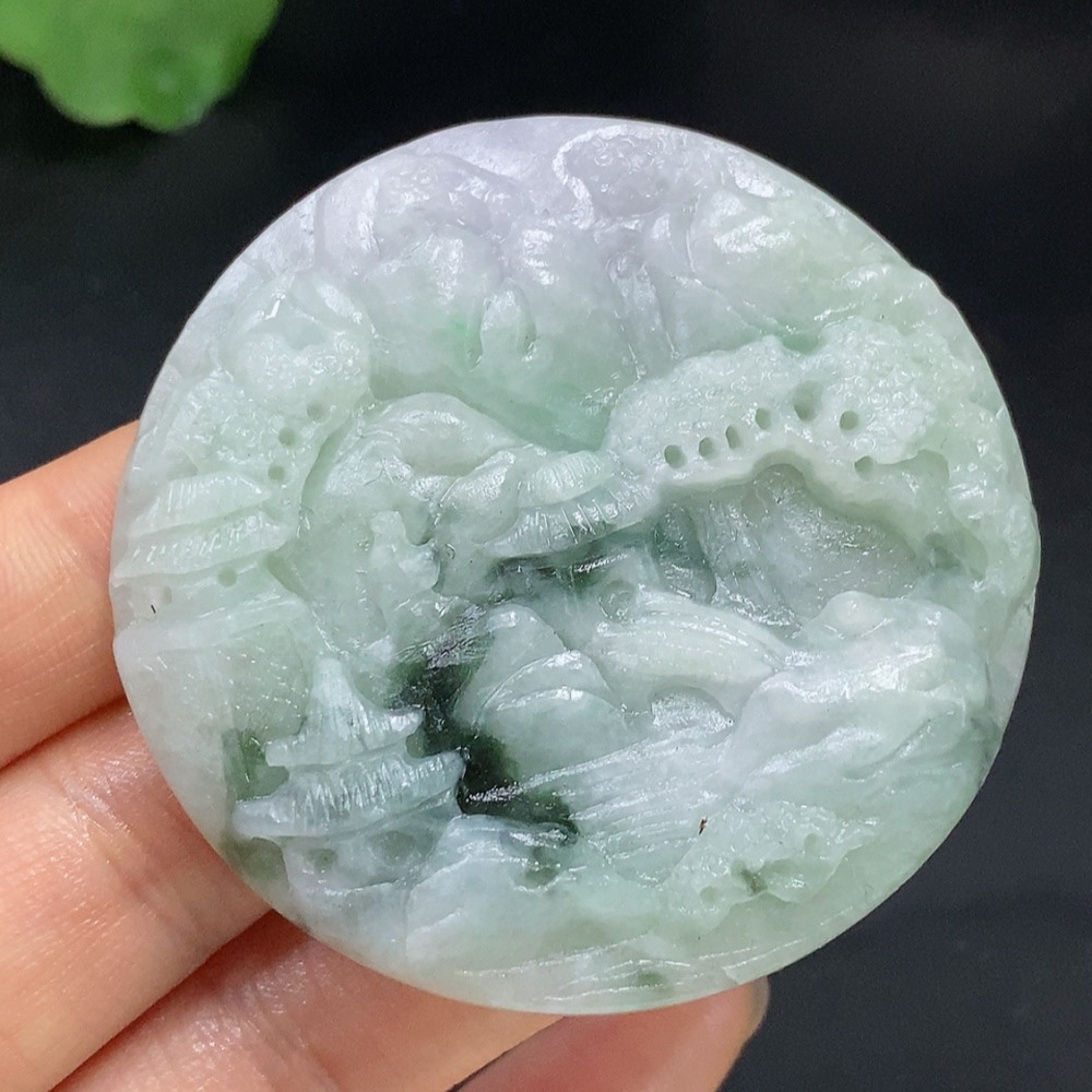 Jadeite rough landscape plaque pendant total weight about 49g containing other mineral components
