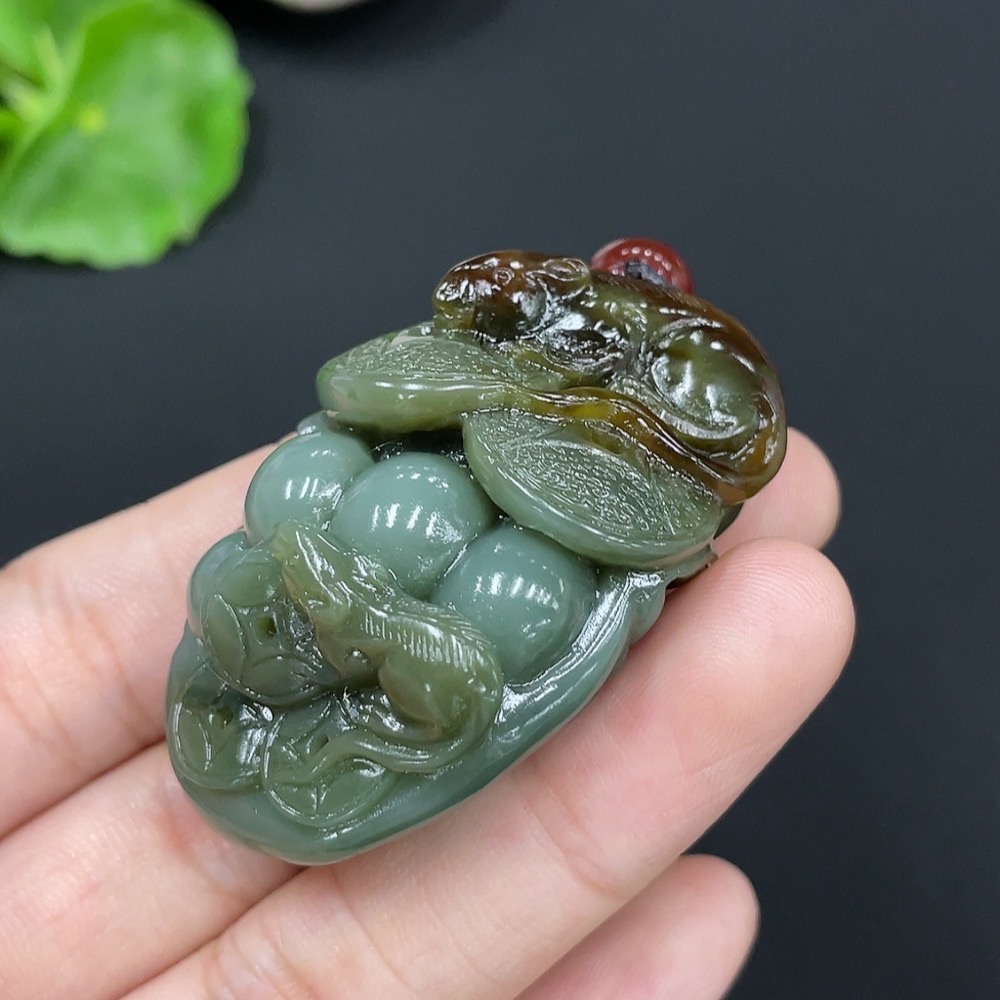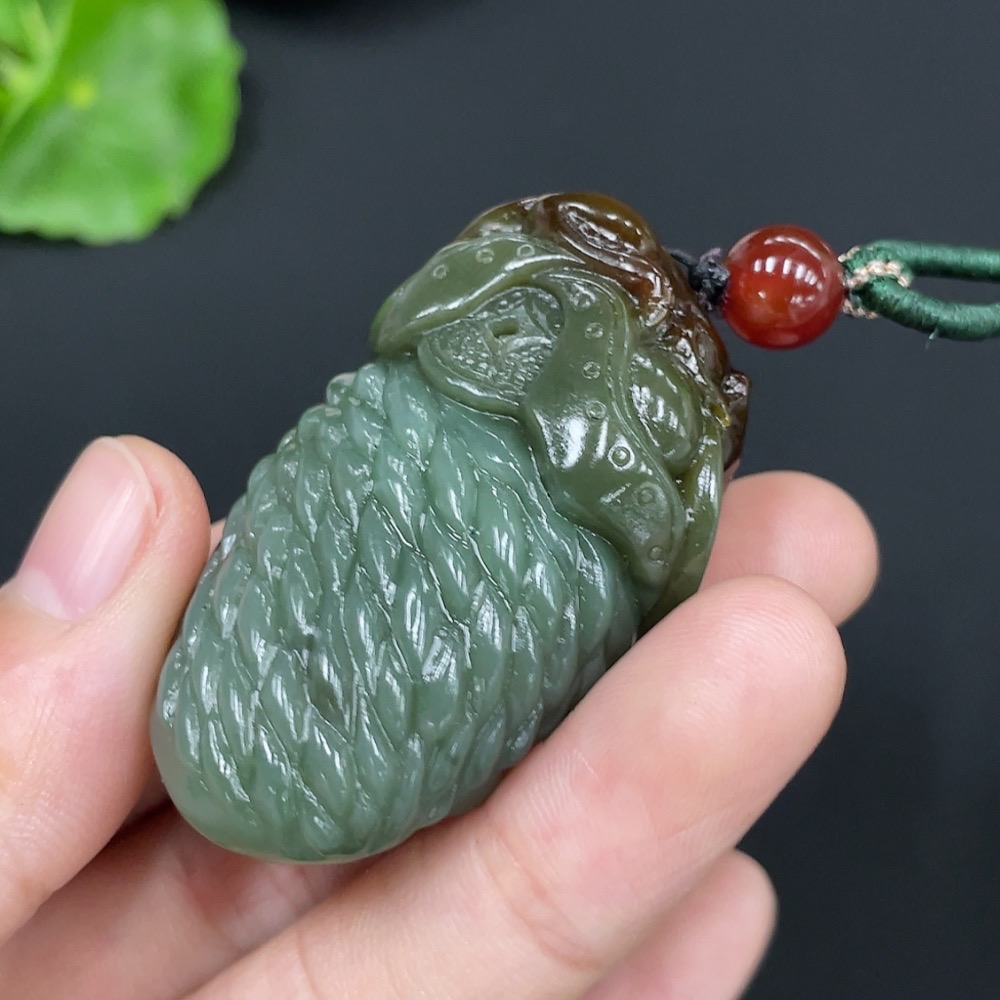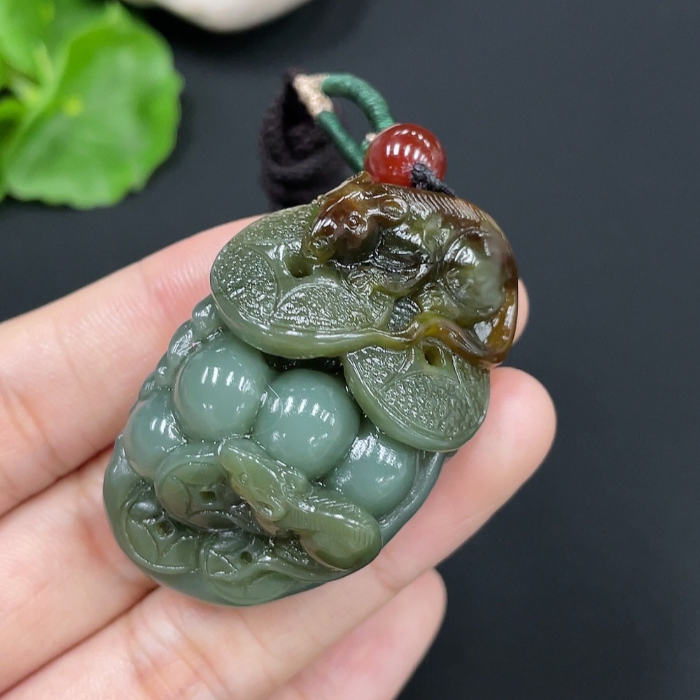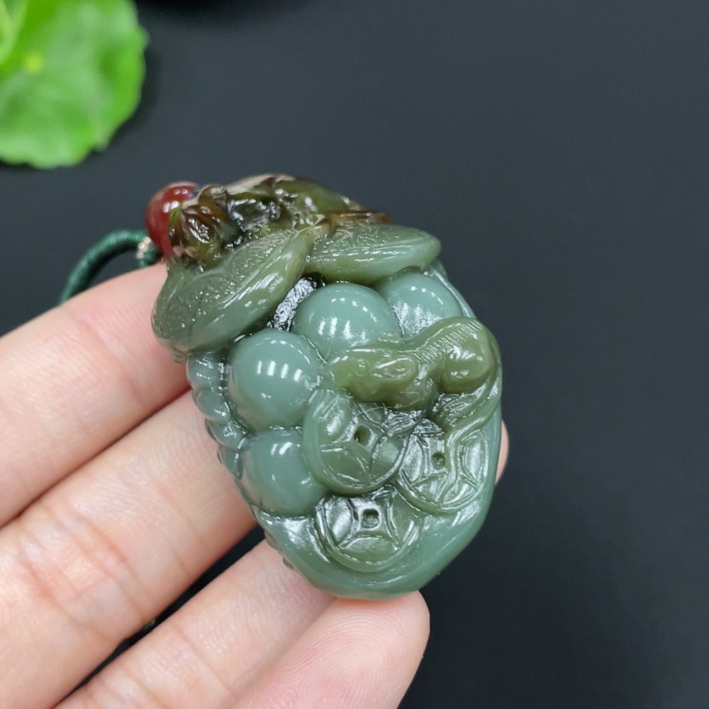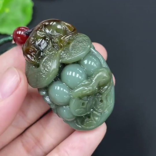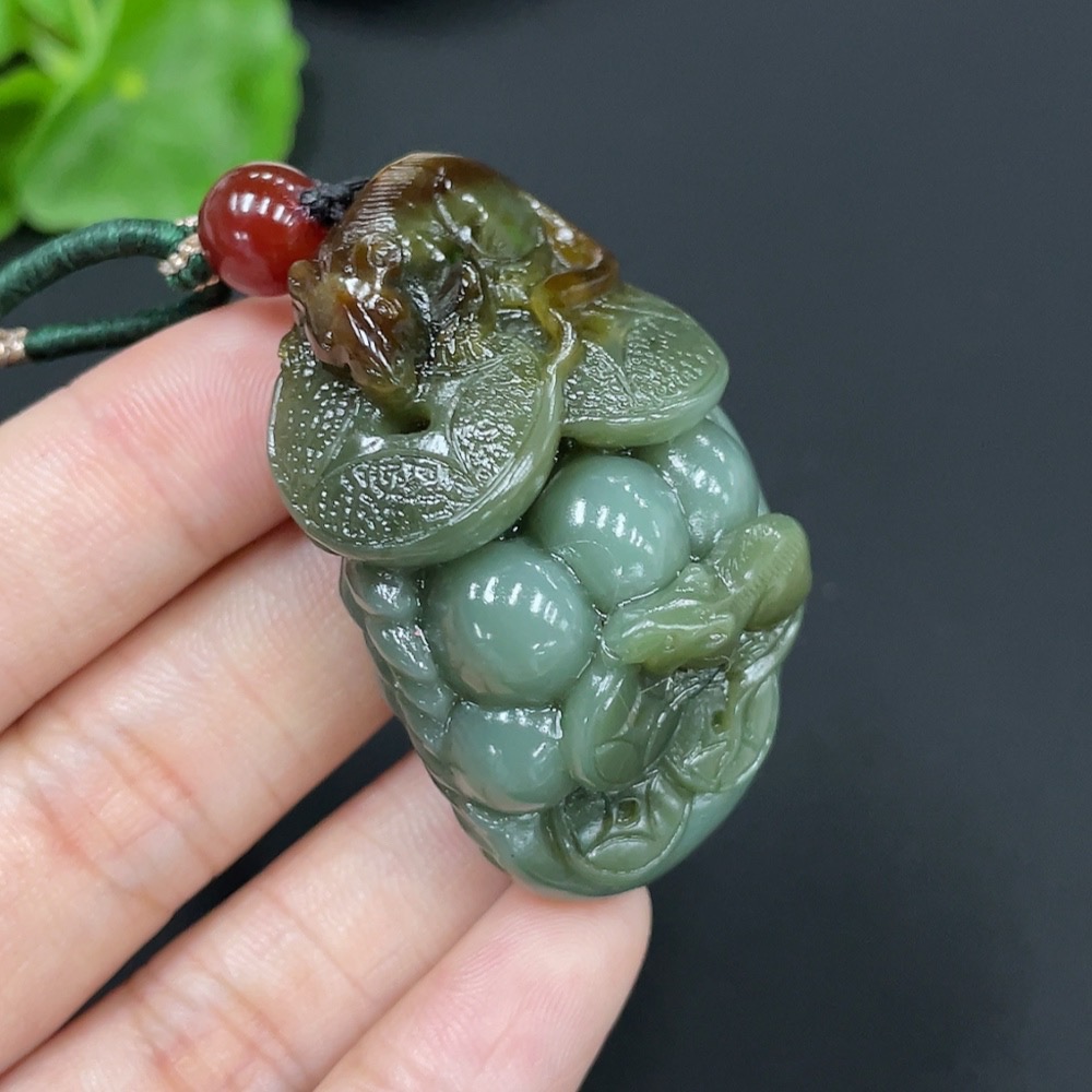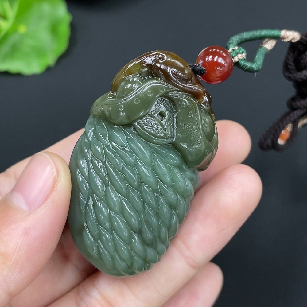 Hetian Jade Pendant, "Wealth-Bringing Mouse," Undetermined Skin Color Formation, Total Weight (Including Cord) Approx. 39.2g