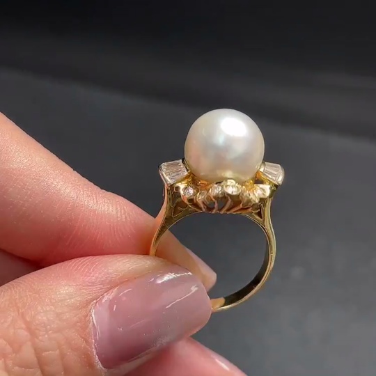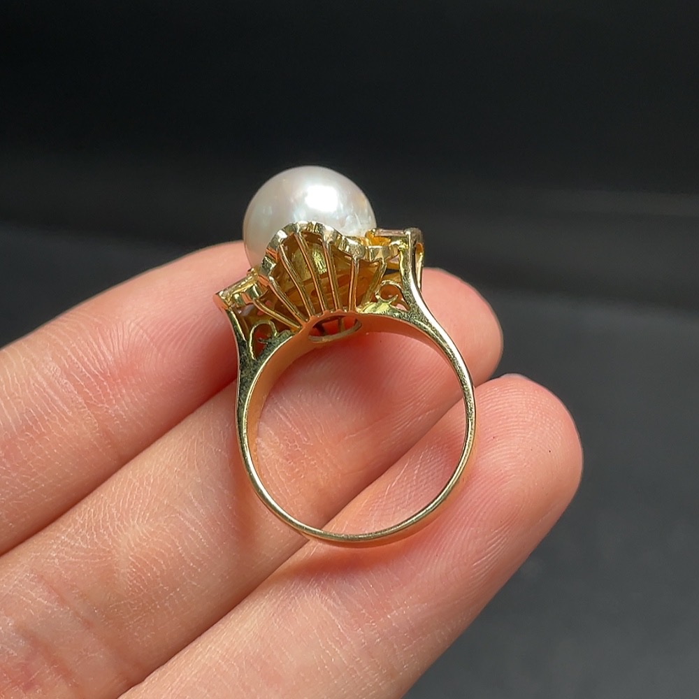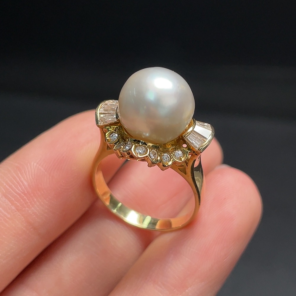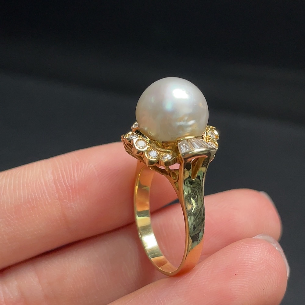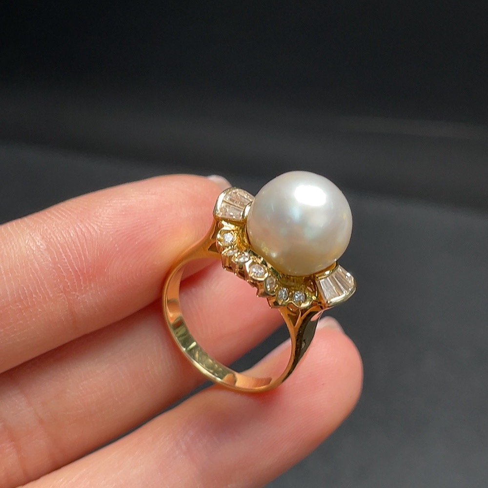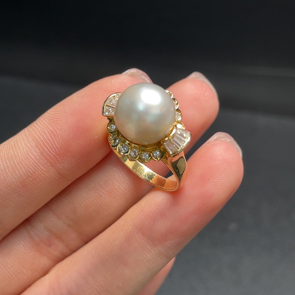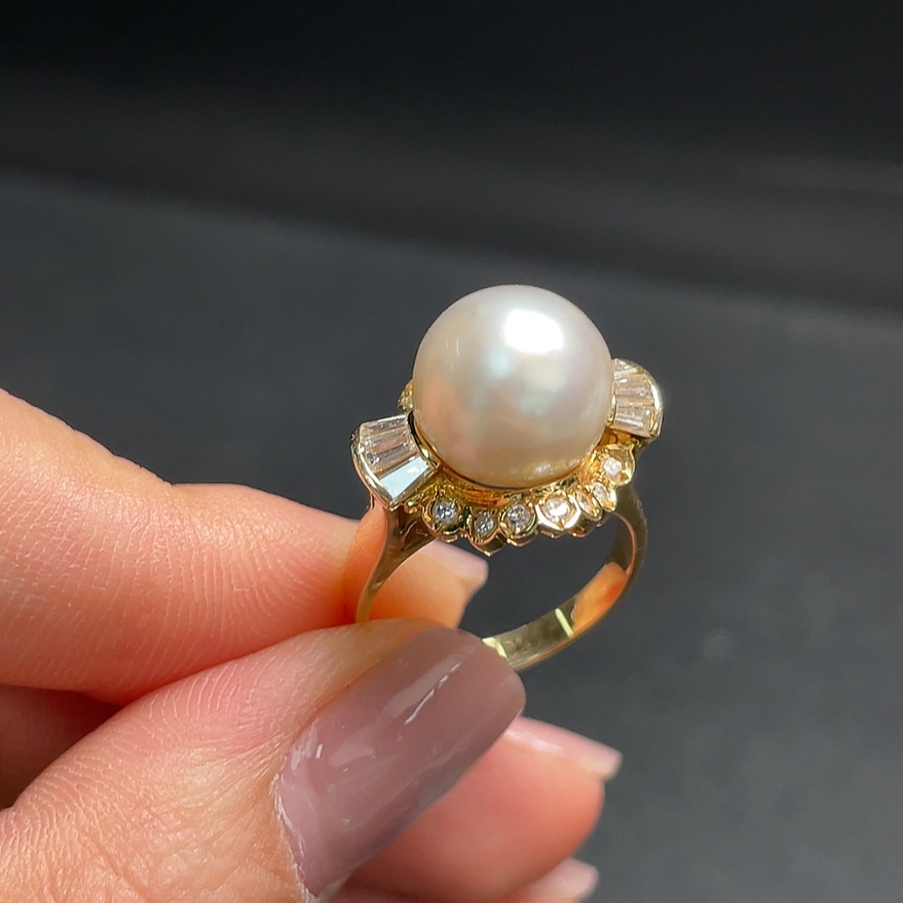 Seawater Pearl Inlaid Ring 53% Gold Content Size 13 Approx. 10.8mm Total Weight About 6.50g With Diamond Accents