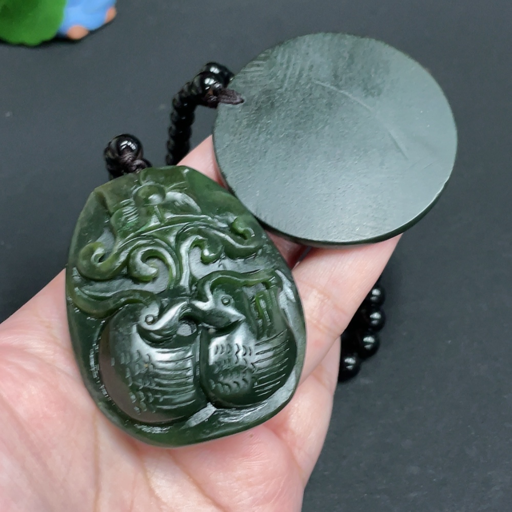 Hetian Jade Pendant, Plain Pendant, Eternal Harmony, Non-Hetian Jade Chain, Total Weight Approx. [Including Chain] 140.7g