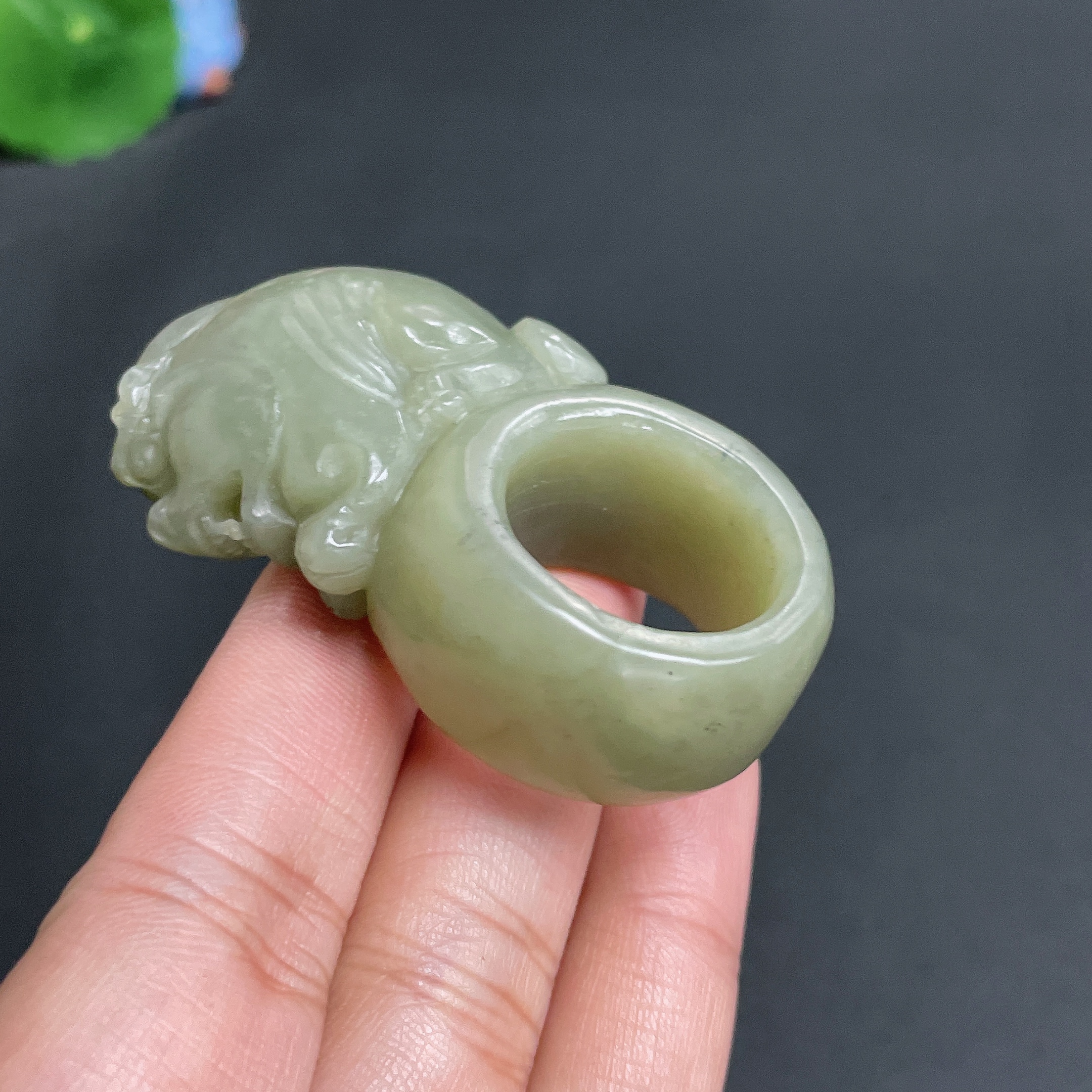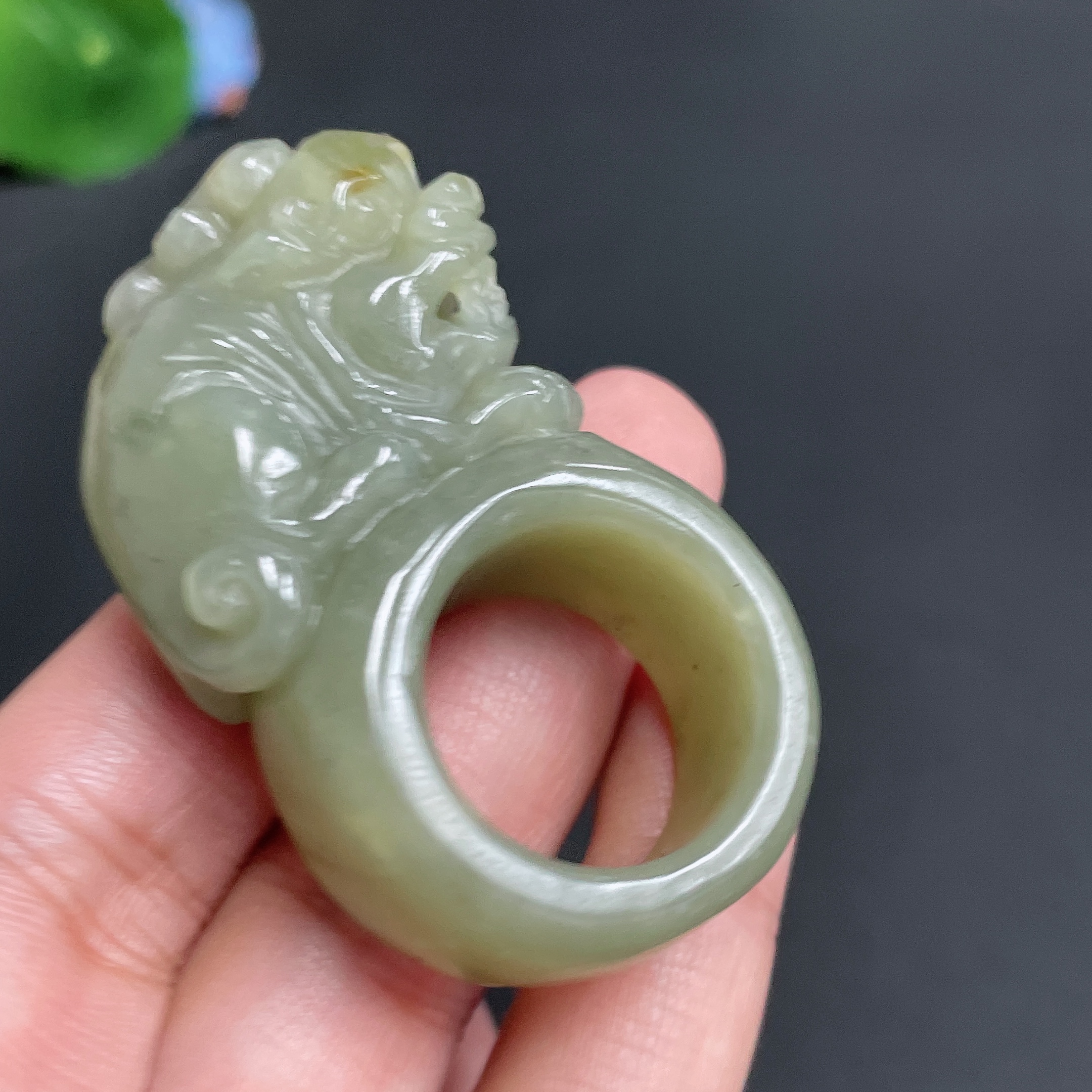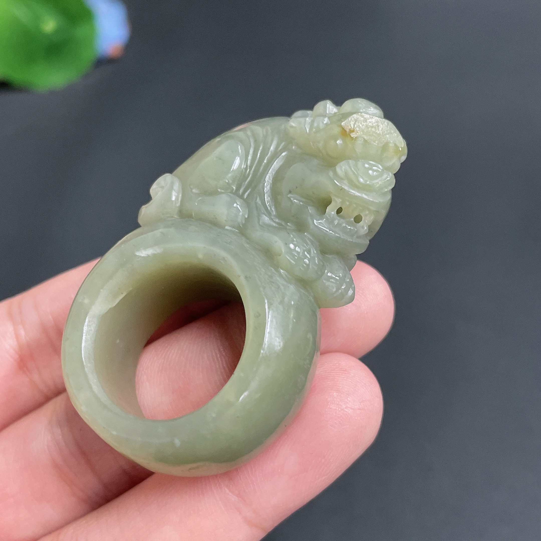 Hetian Jade Auspicious Beast Thumb Ring Size 22 Total Weight Approx. 40.8g Undetermined Skin Color Origin
