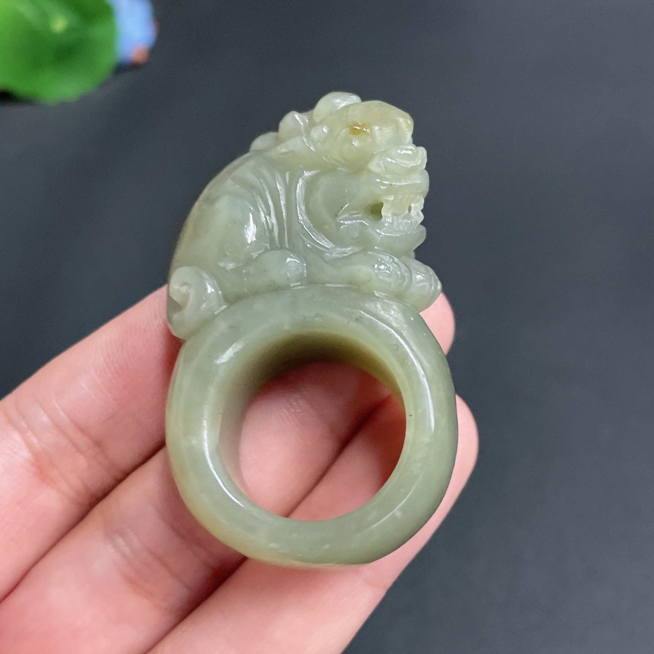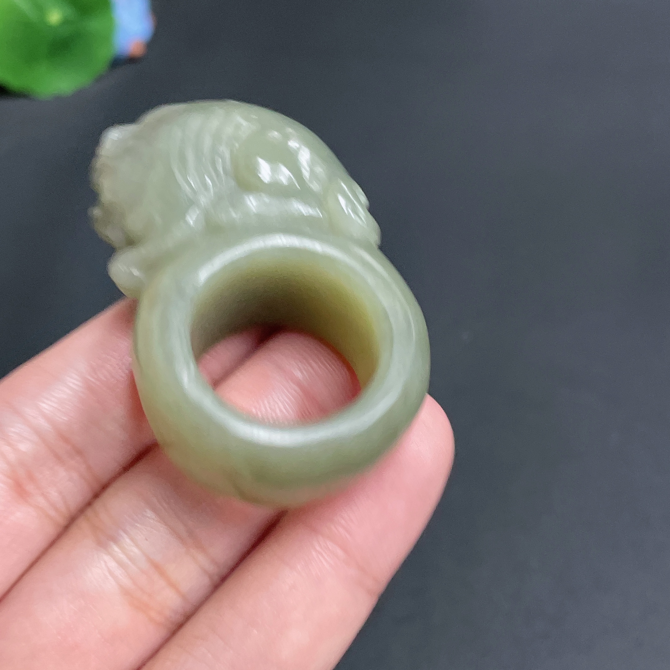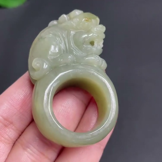 Hetian Jade Auspicious Beast Thumb Ring Size 22 Total Weight Approx. 40.8g Undetermined Skin Color Origin