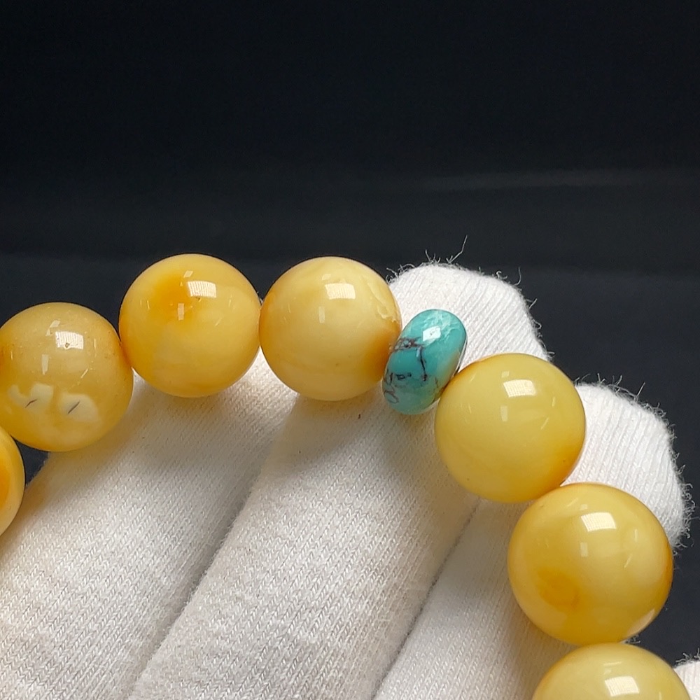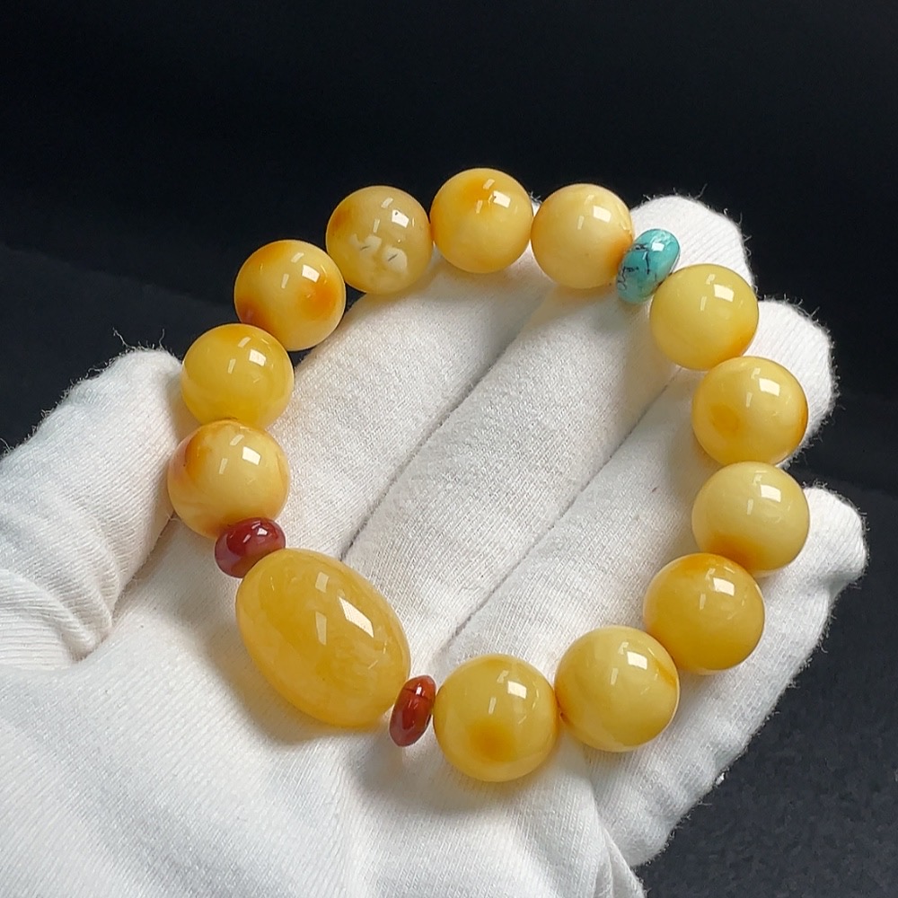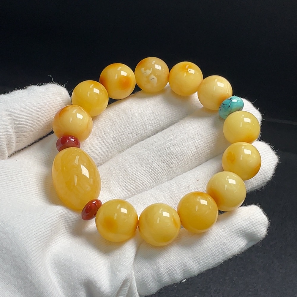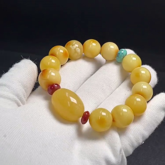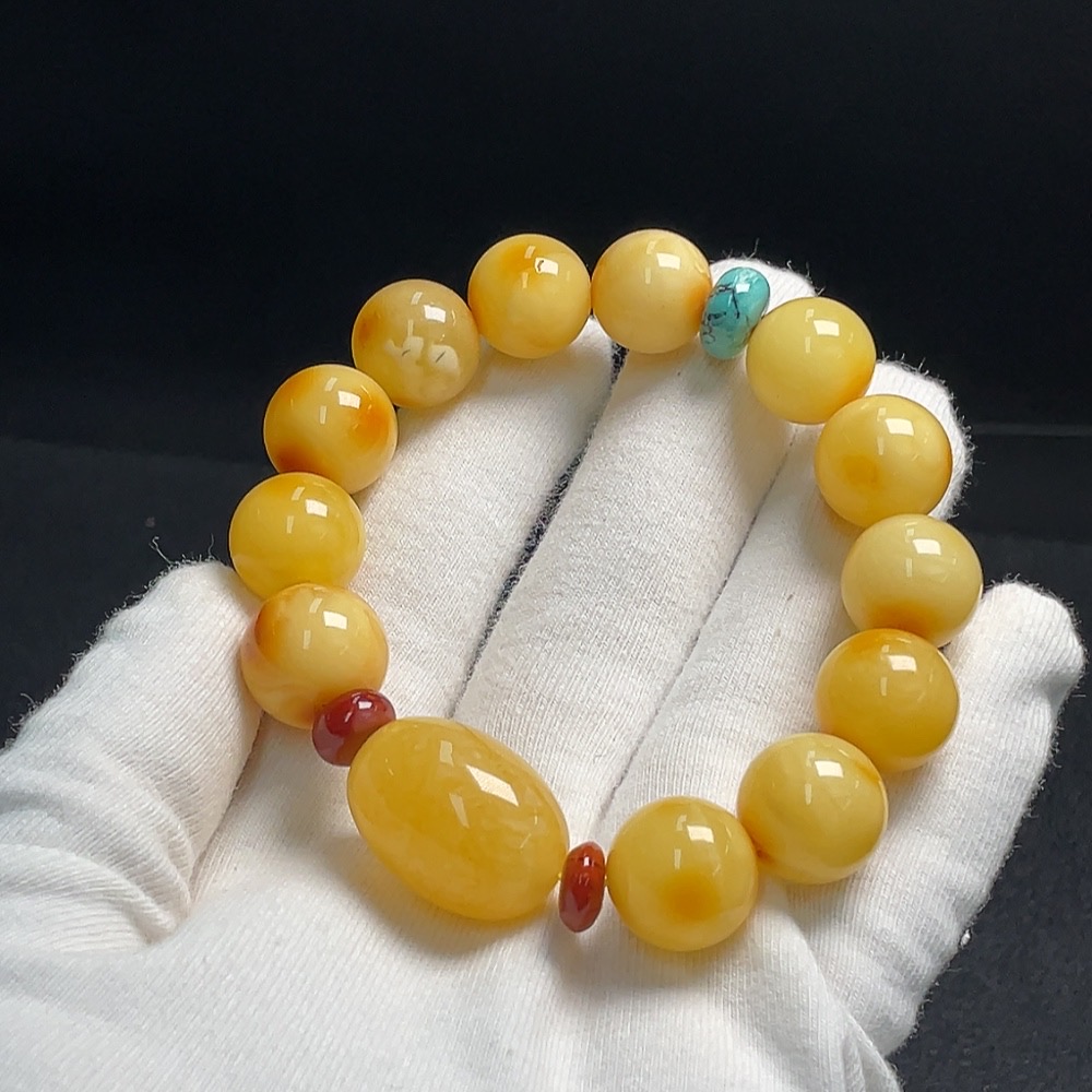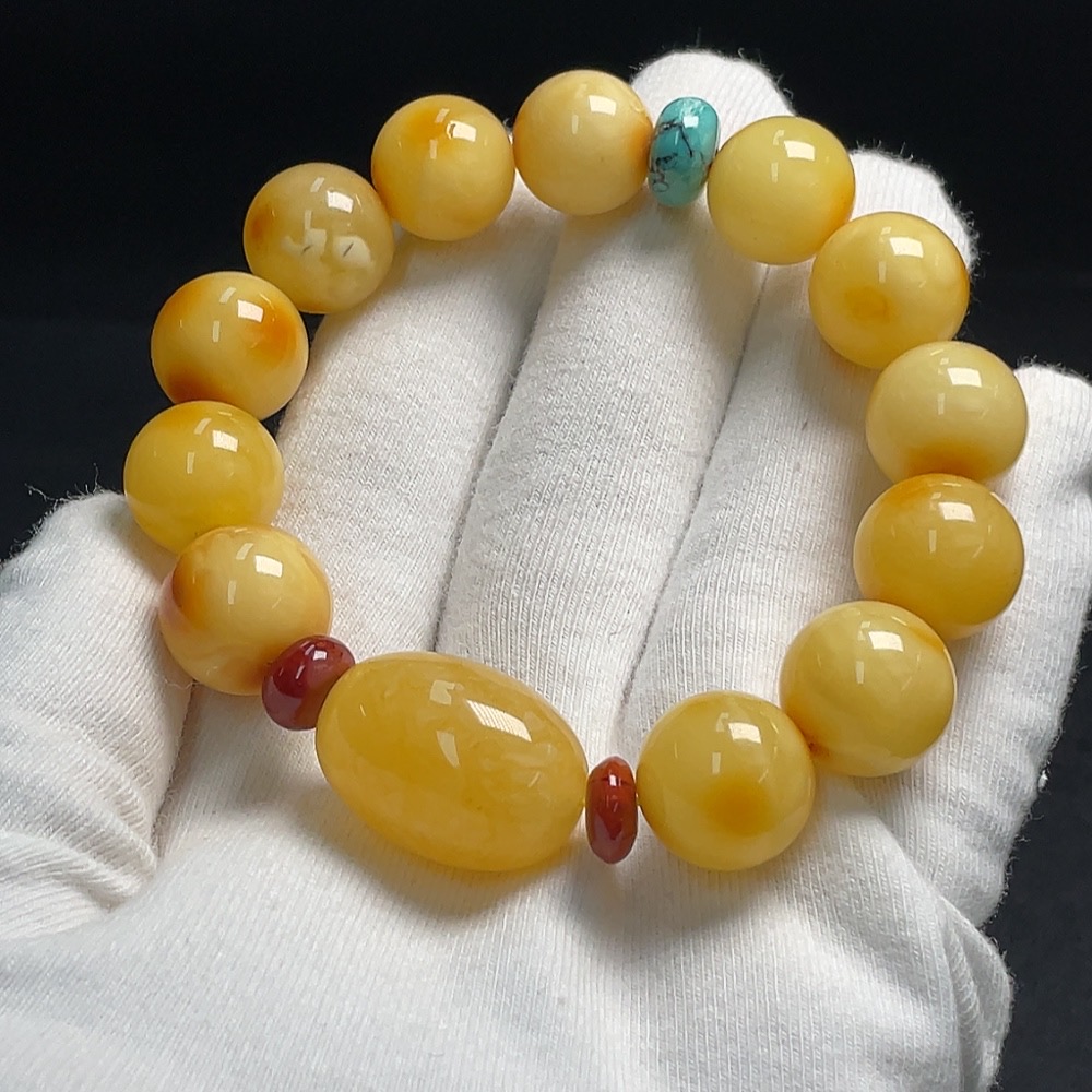 Amber Beeswax Bracelet, approx. 13.7mm, total weight approx. 23.28g, with Southern Red Agate and Turquoise as accessory stones