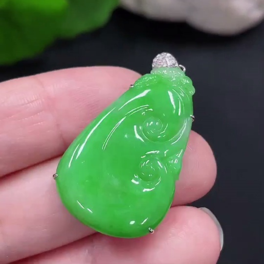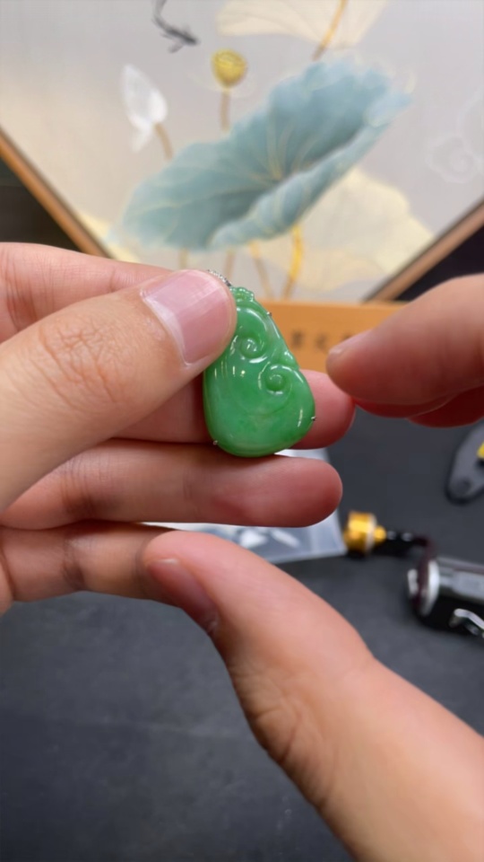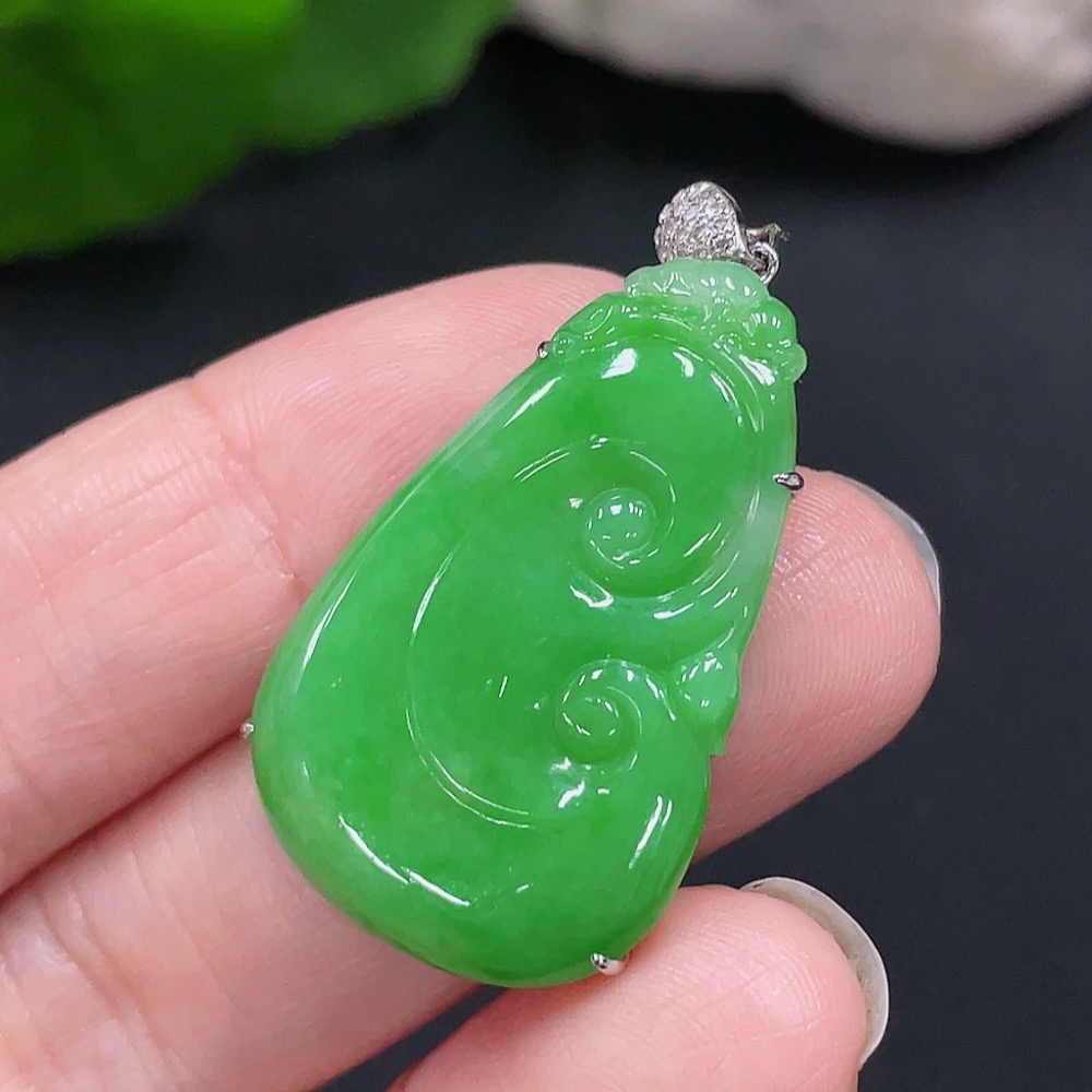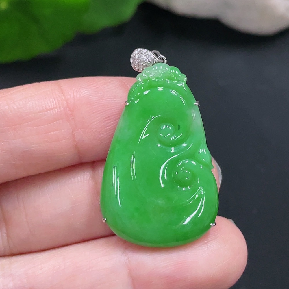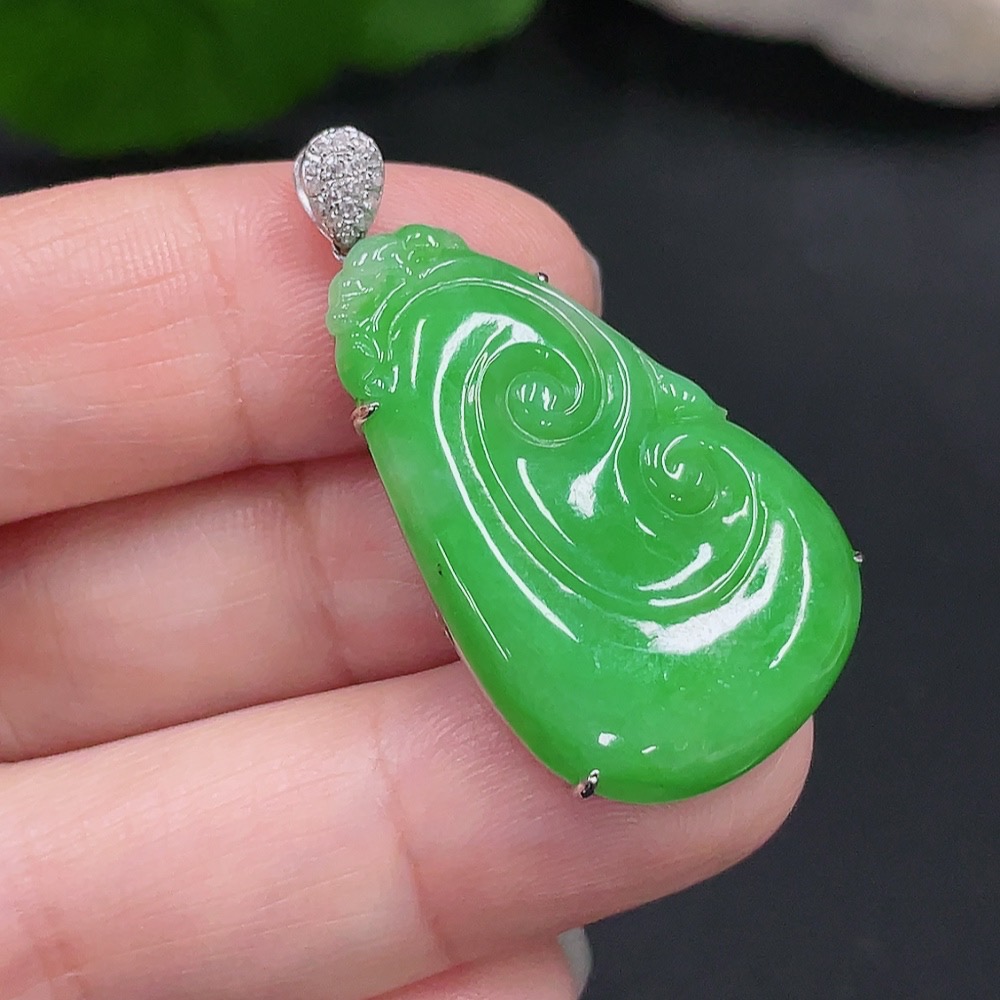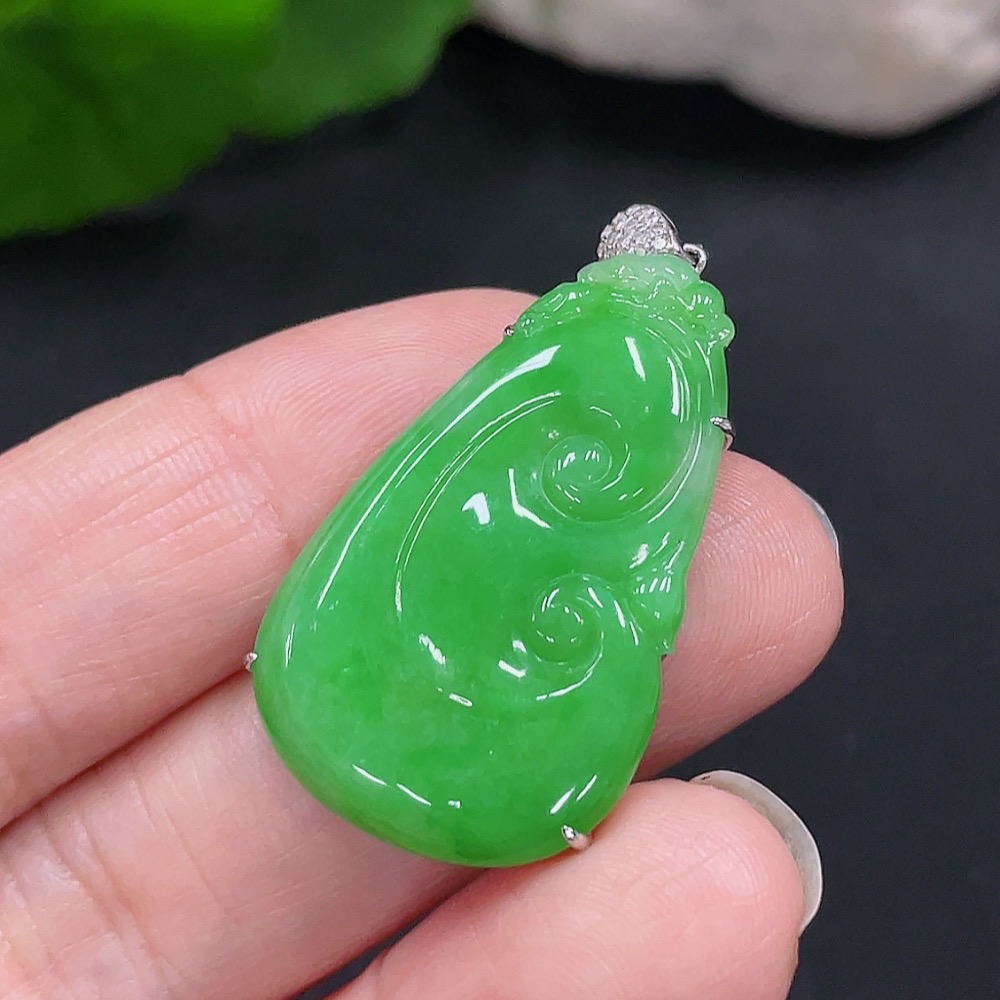 Jadeite Ruyi Inlaid Pendant 18K Gold Total Weight Approx. 6.1g