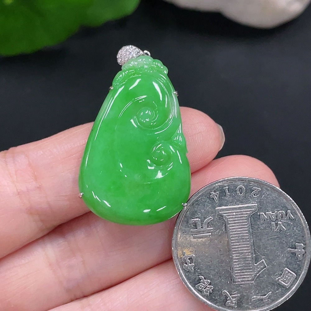 Trezaar - Jadeite Ruyi Inlaid Pendant 18K Gold Total Weight Approx. 6.1g