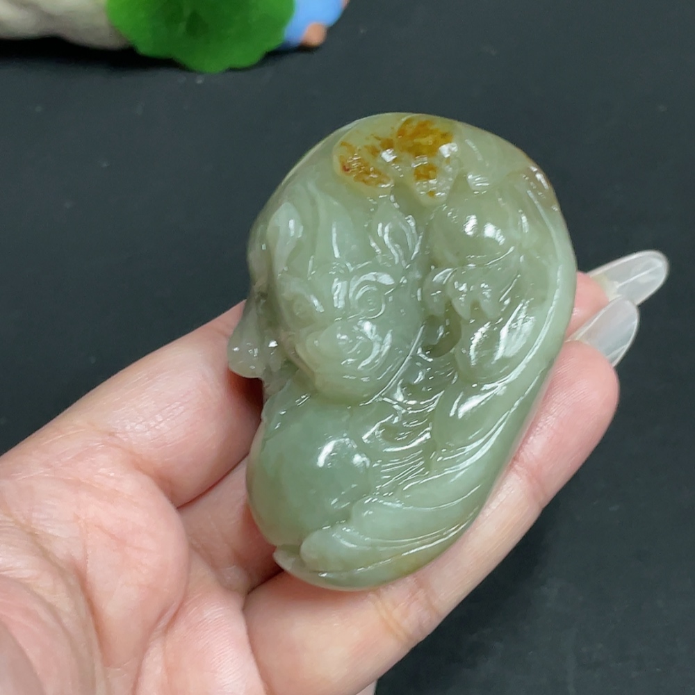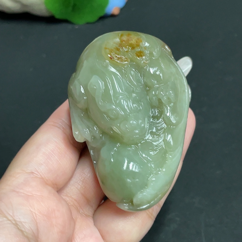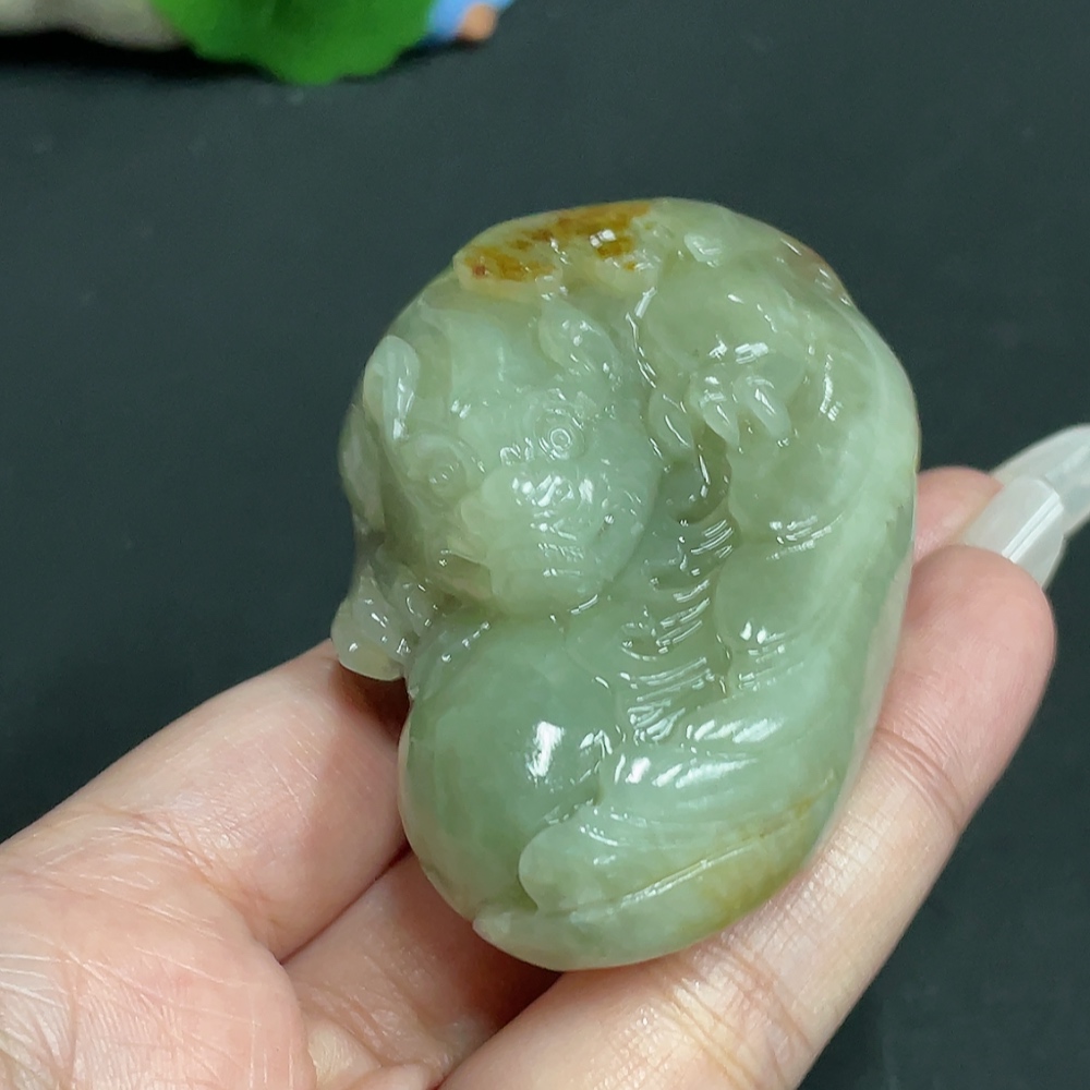 Trezaar - Hetian Jade Handheld Piece, Auspicious Beast, Undetermined Skin Color Origin, Total Weight Approximately 129.8g
