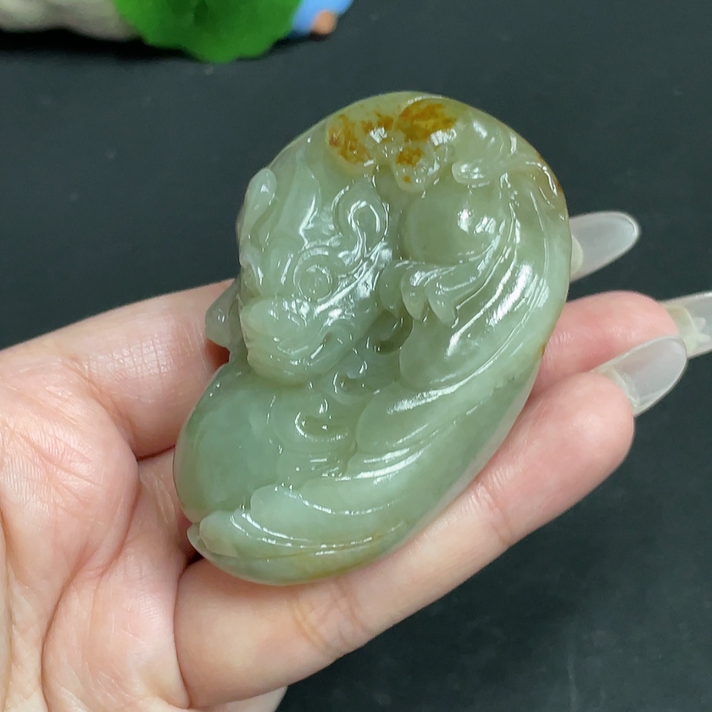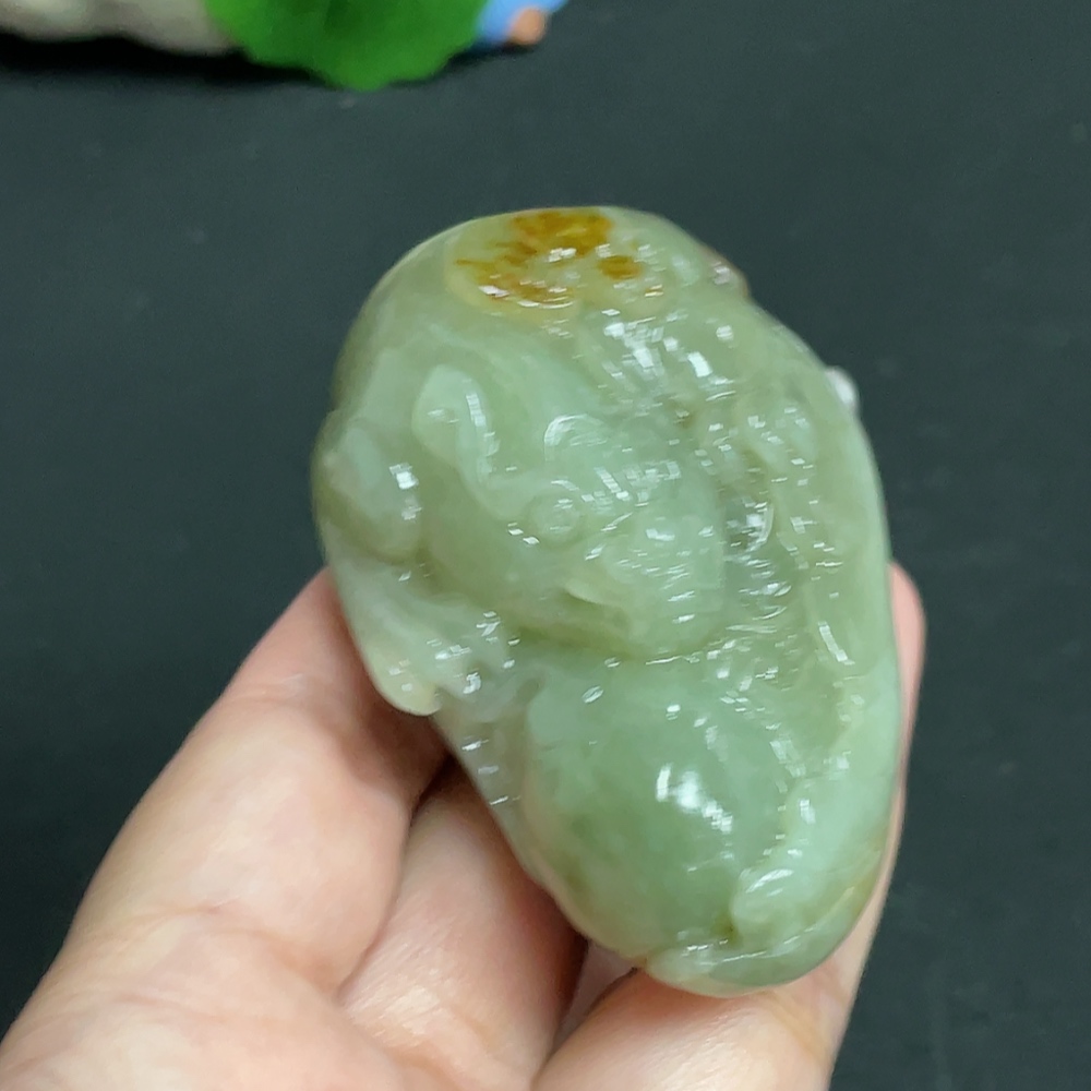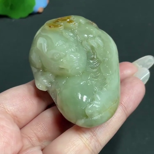 Hetian Jade Handheld Piece, Auspicious Beast, Undetermined Skin Color Origin, Total Weight Approximately 129.8g