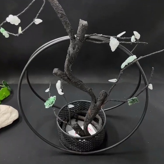 Trezaar - Jadeite Inlaid Ornament Floral Prosperity Containing Other Mineral Components Non-Gold