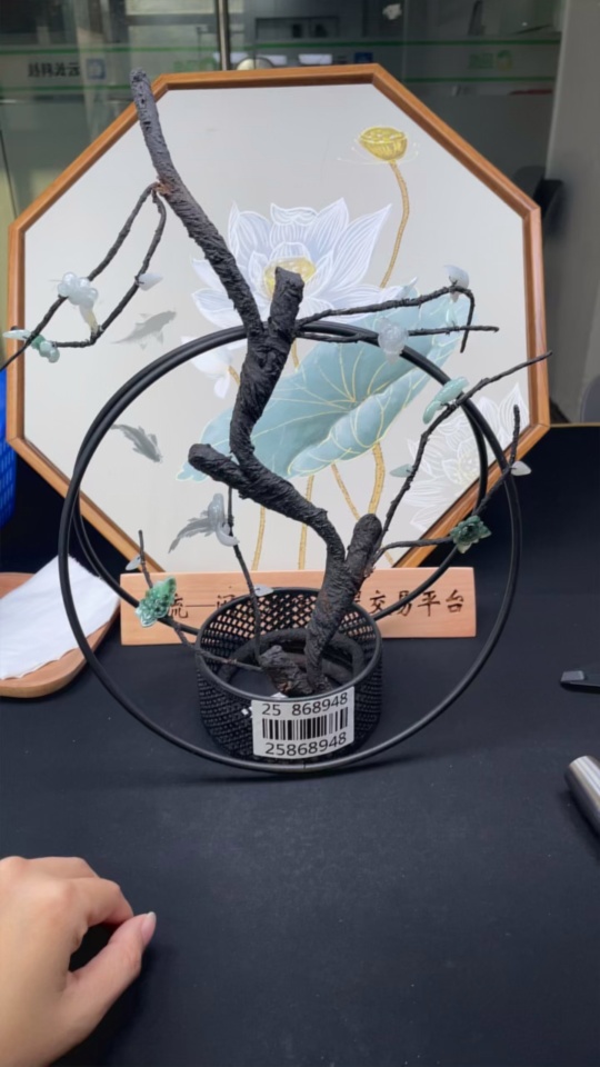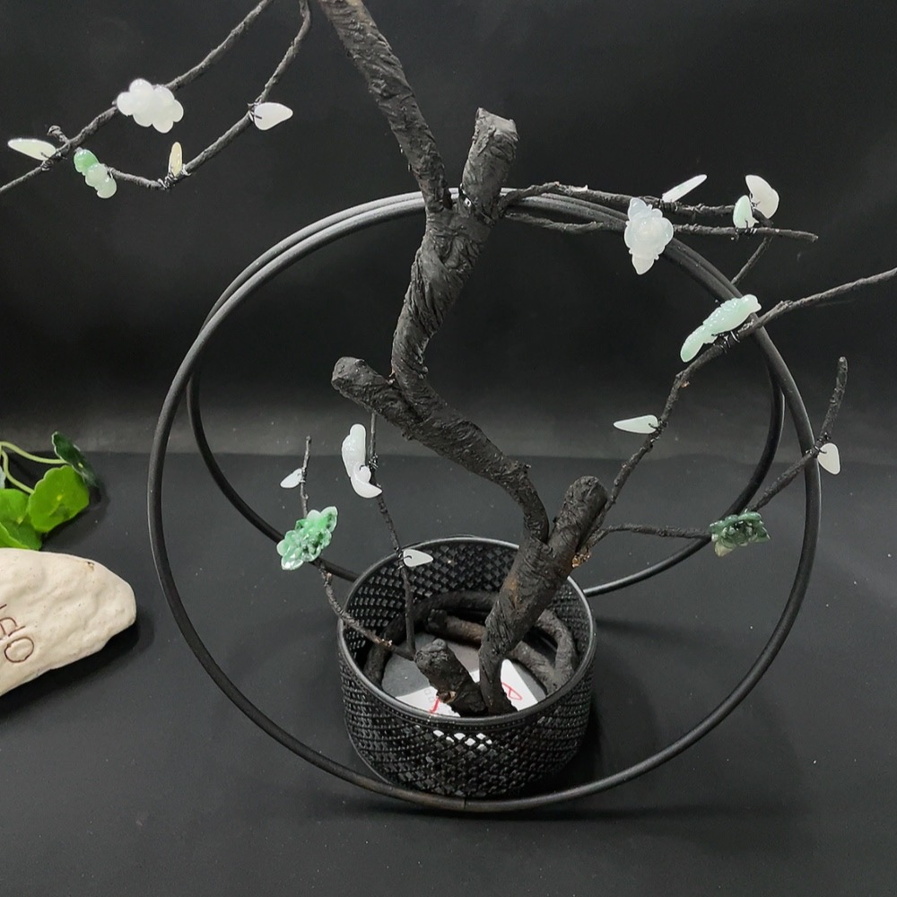 Jadeite Inlaid Ornament Floral Prosperity Containing Other Mineral Components Non-Gold