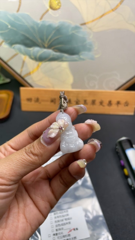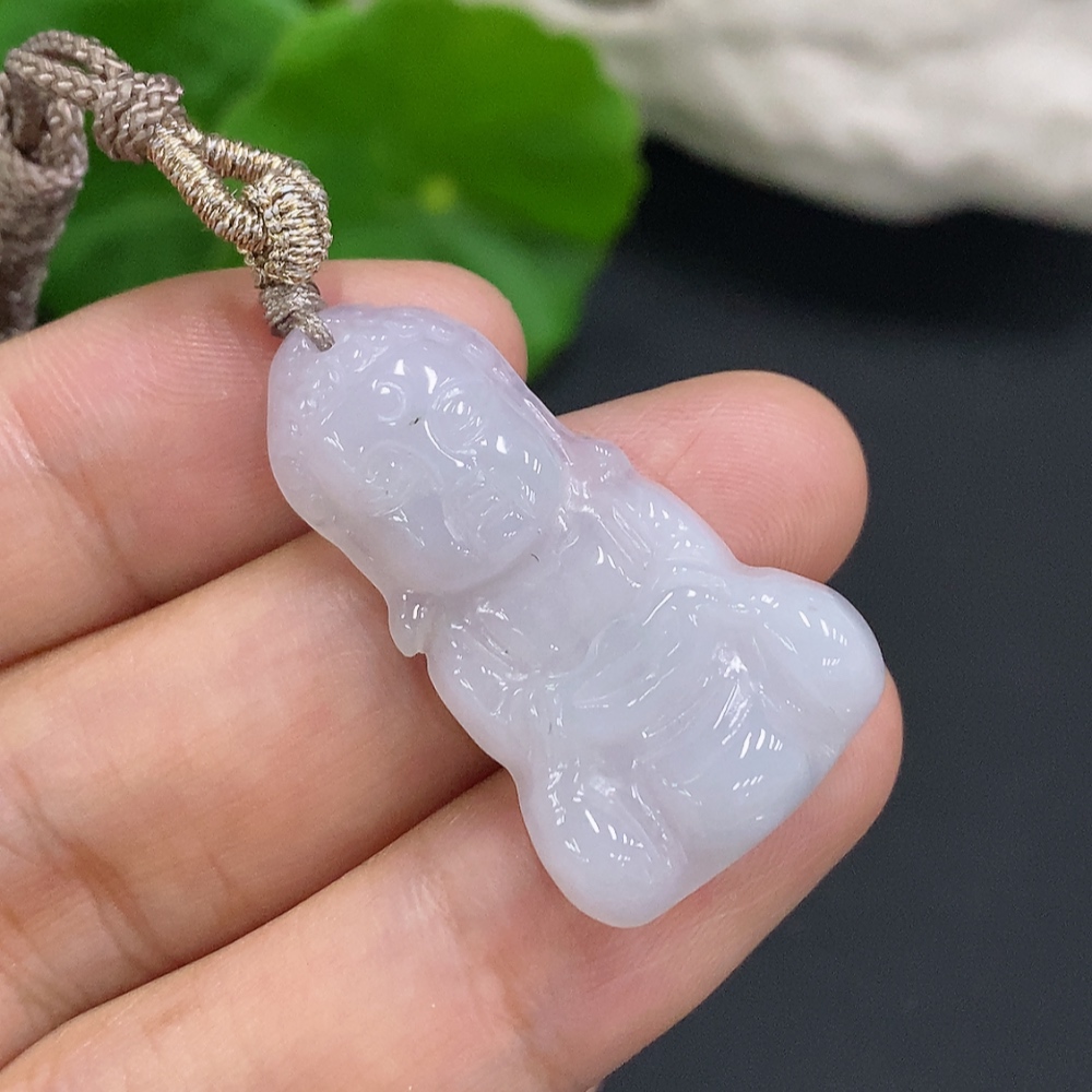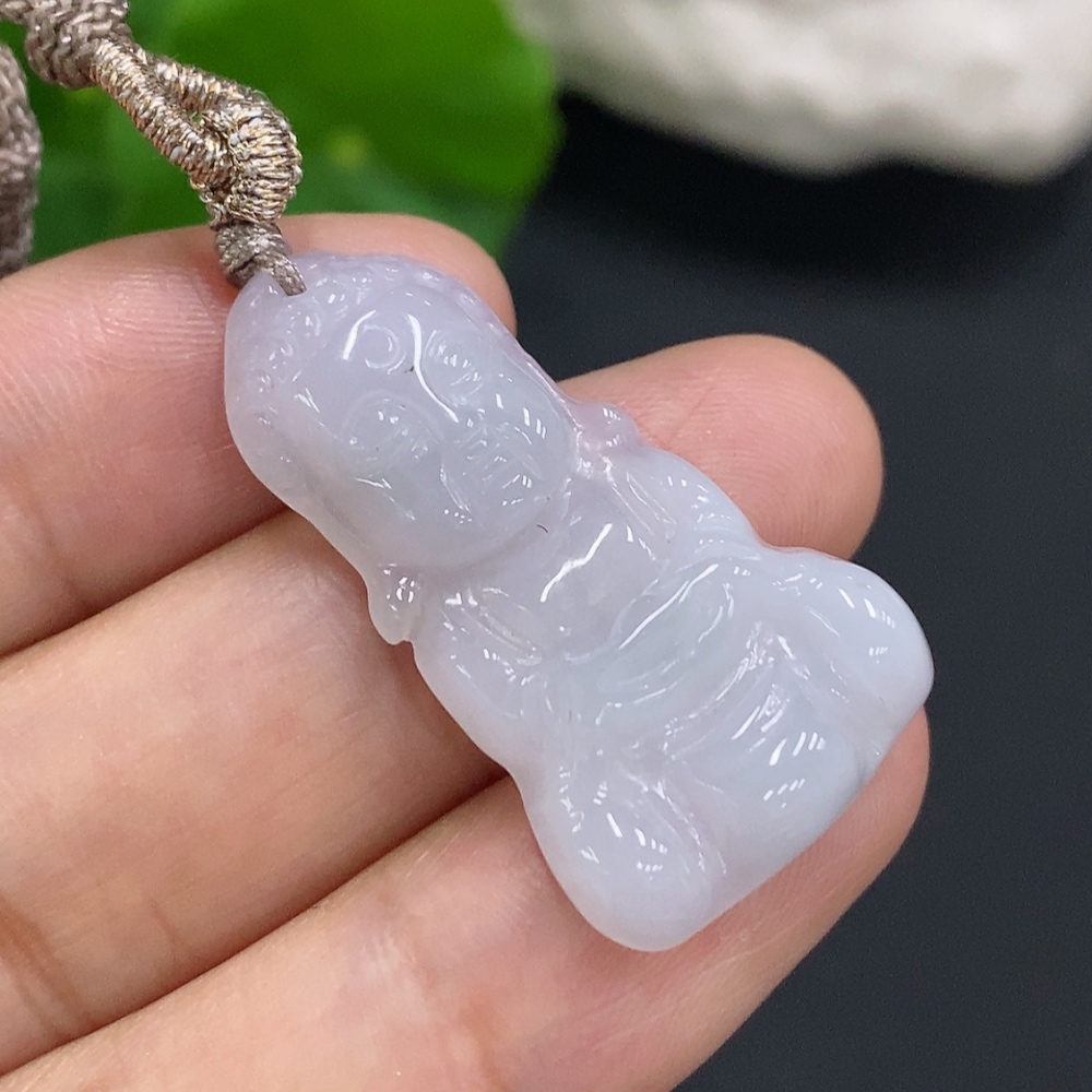 Jadeite Baby Buddha Pendant Total Weight with Rope Approx. 6.2g (with Crack)