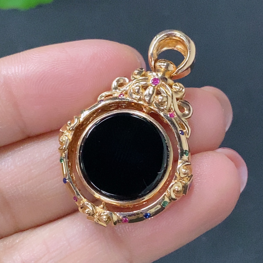 Jadeite Plain Pendant Hanging Piece 18K Gold Total Weight Approx. 7.14g