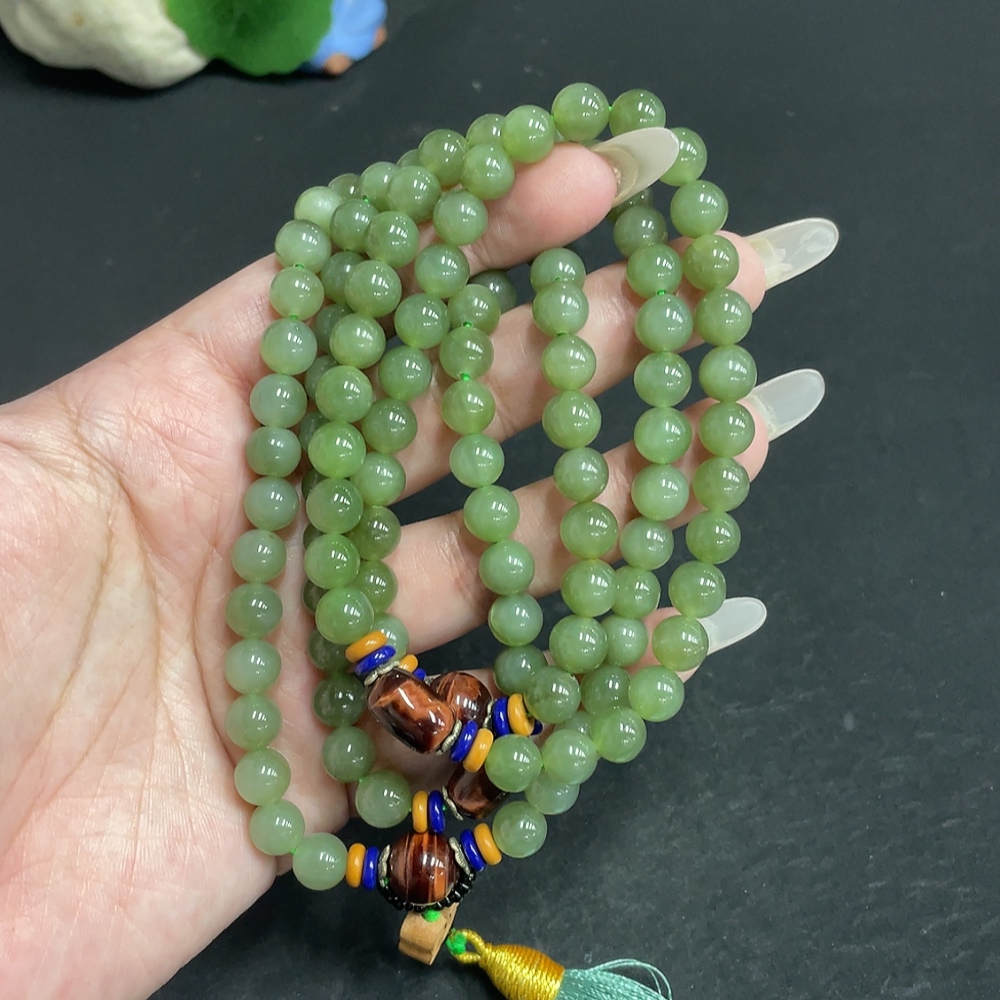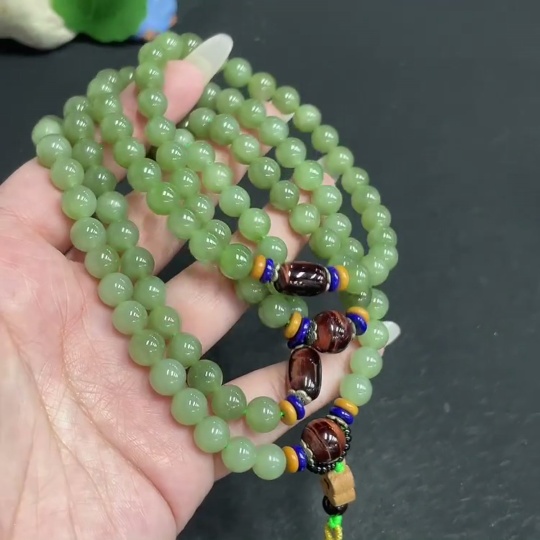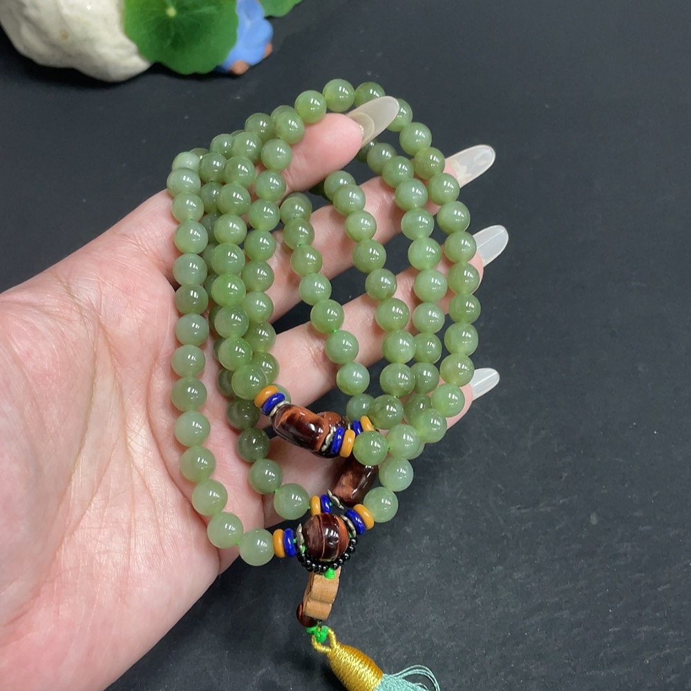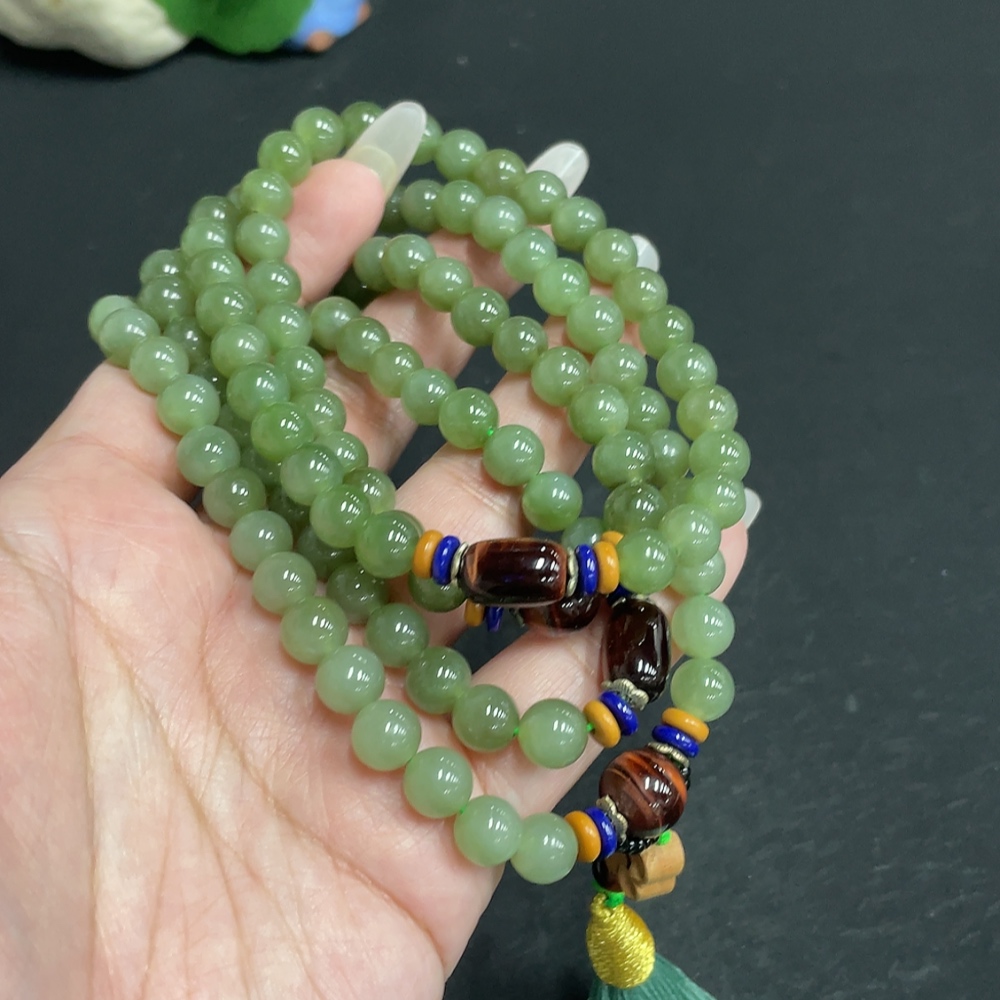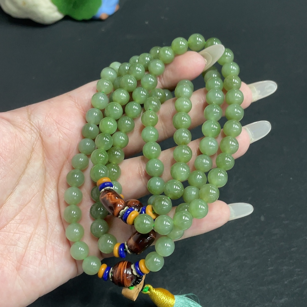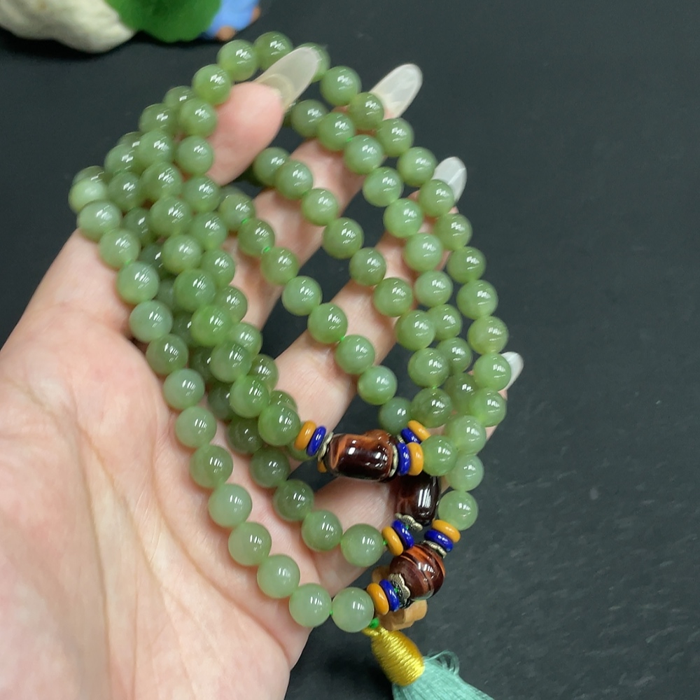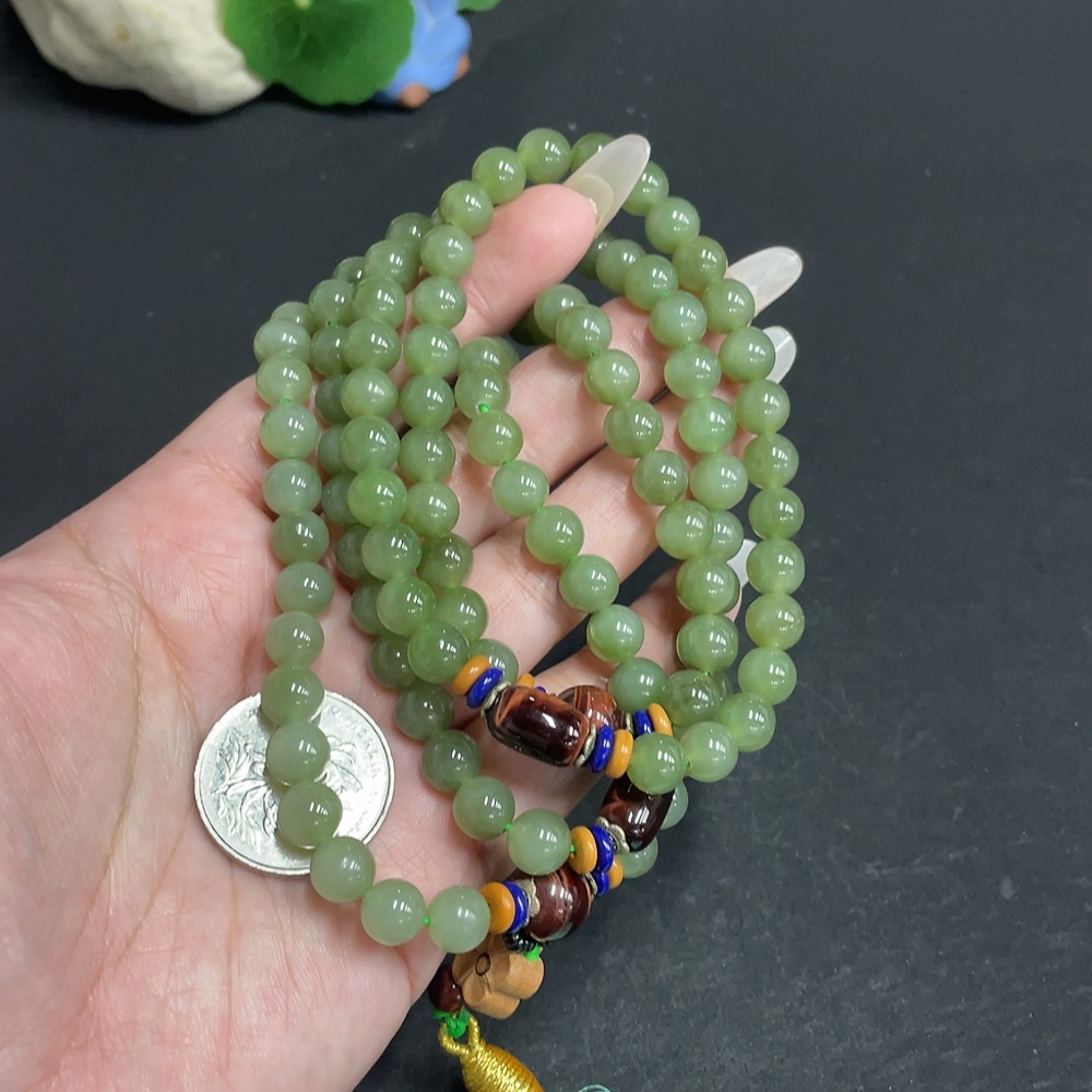 Hetian Jade Bead Necklace, Approx. 7.5mm, Total Weight Approx. 91.7g, Non-Hetian Jade Beads Included