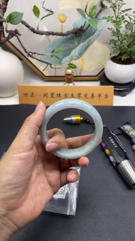 Jadeite Round Bangle, Total Weight Approx. 76.3g, Size 58.2
