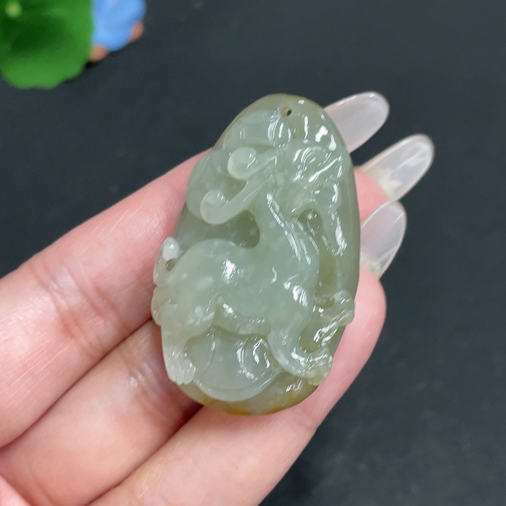 Hetian Jade Pendant, Auspicious Beast, Undetermined Skin Color Origin, Total Weight Approx. 27.8g