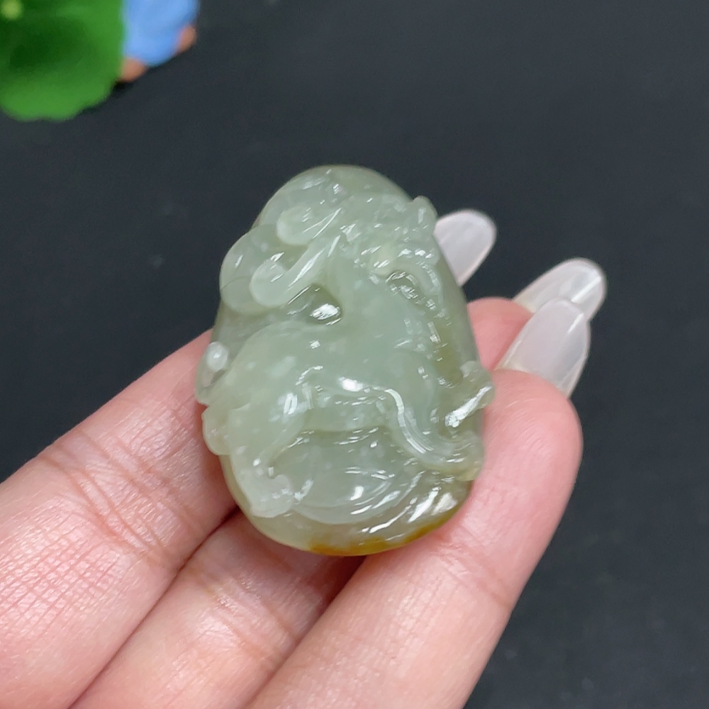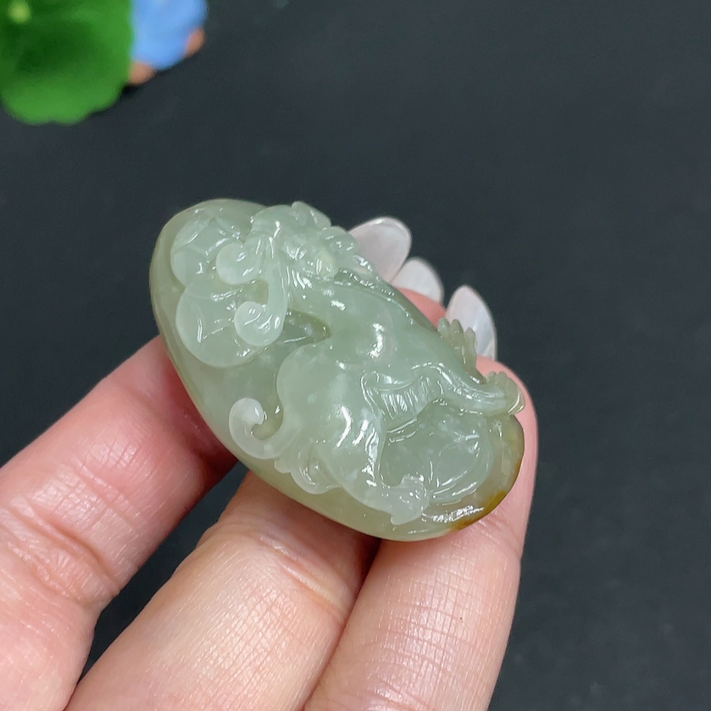 Hetian Jade Pendant, Auspicious Beast, Undetermined Skin Color Origin, Total Weight Approx. 27.8g