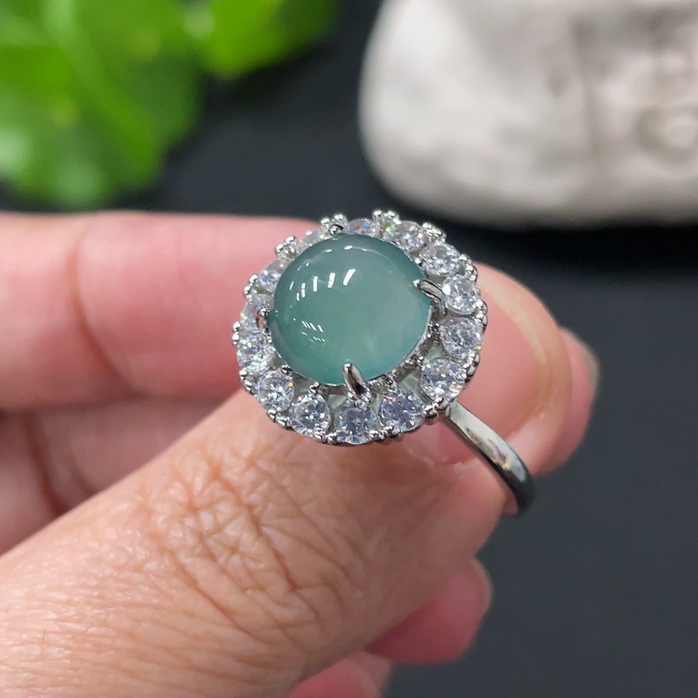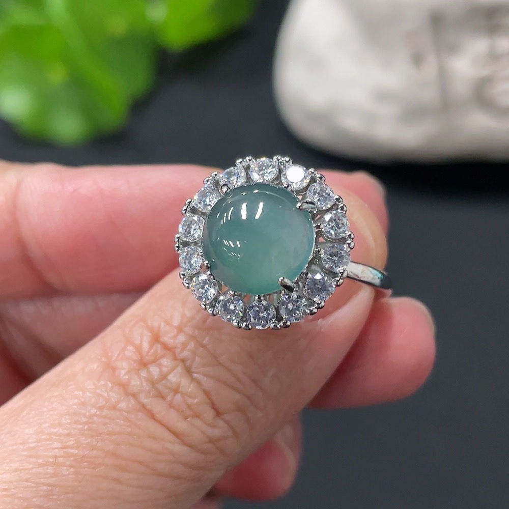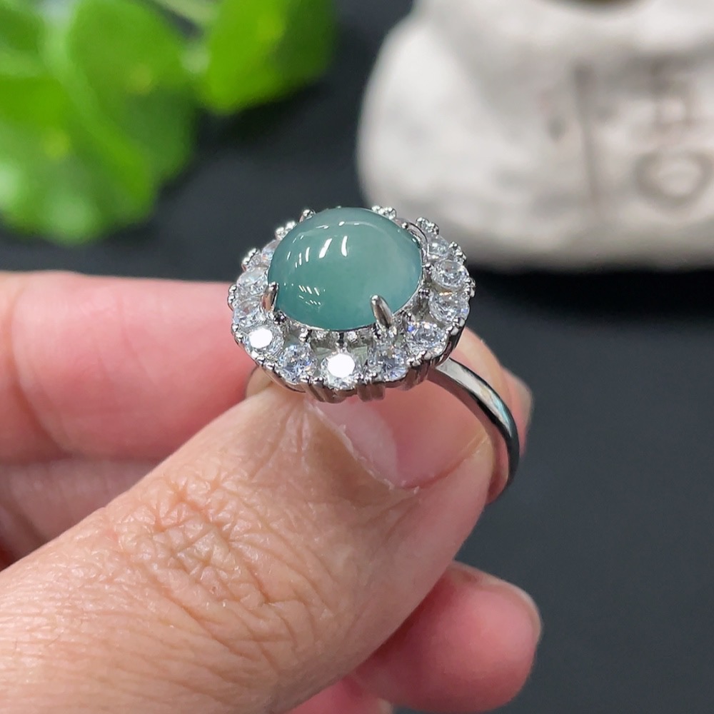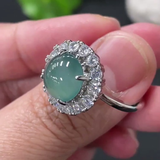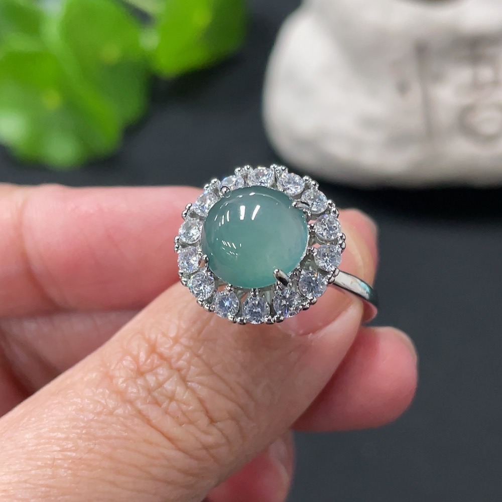Jadeite Cabochon Ring, Non-Gold Setting, Adjustable Size, Total Weight Approx. 4.39g