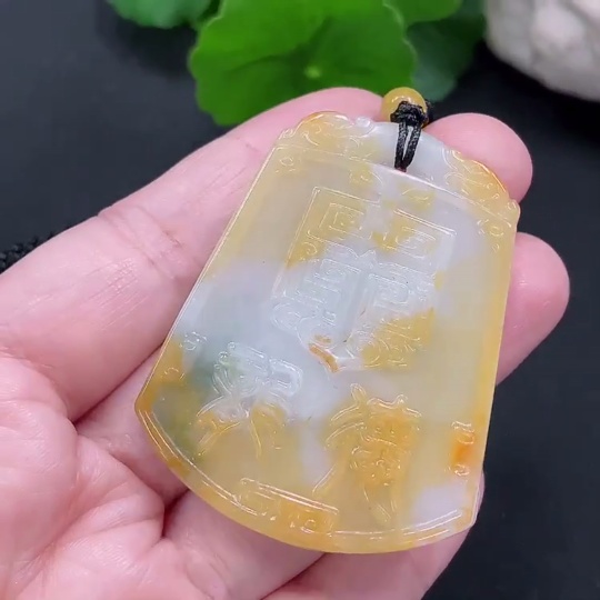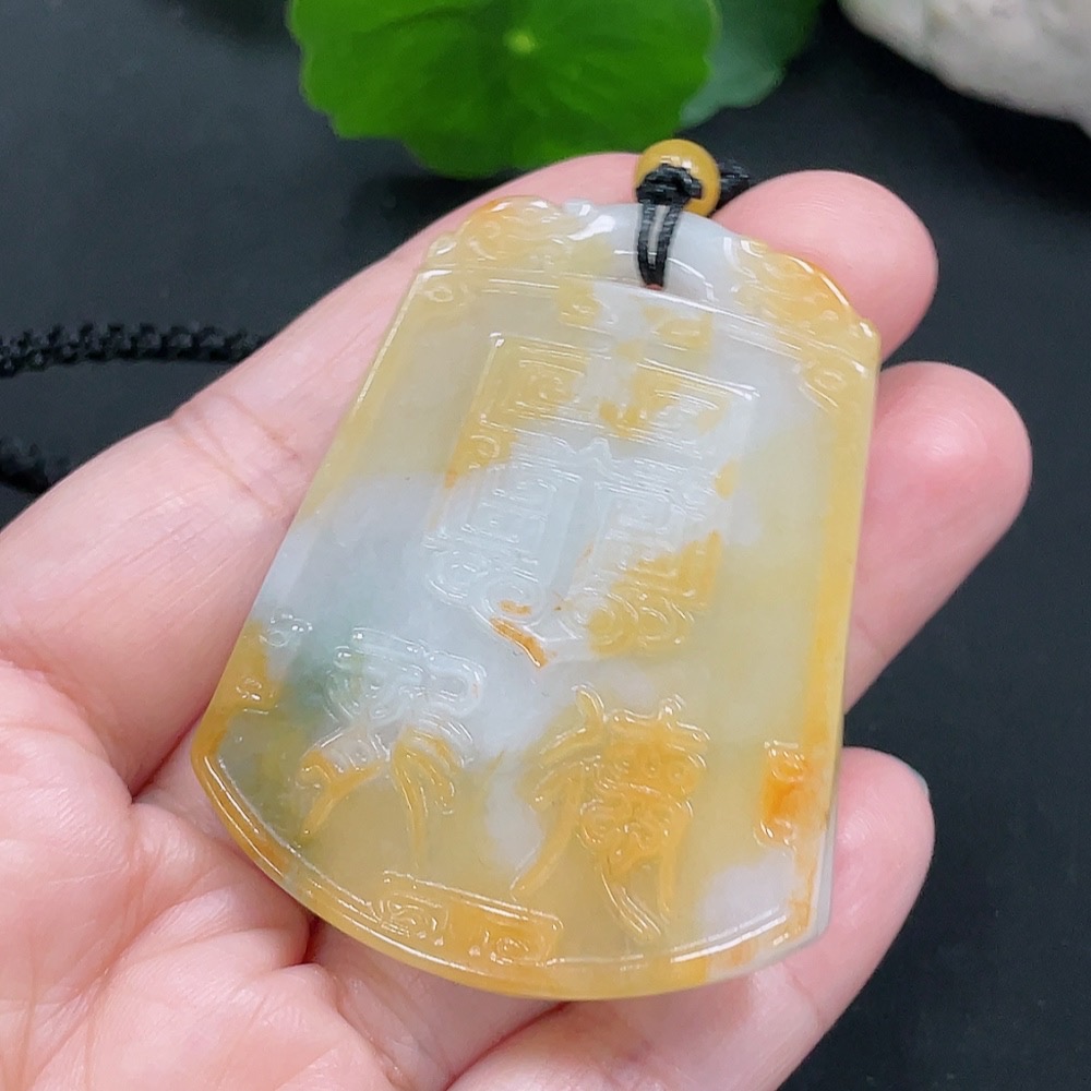 Jadeite Antique Plaque Pendant Total weight approximately 28.2g (including cord weight) (Color origin undetermined)