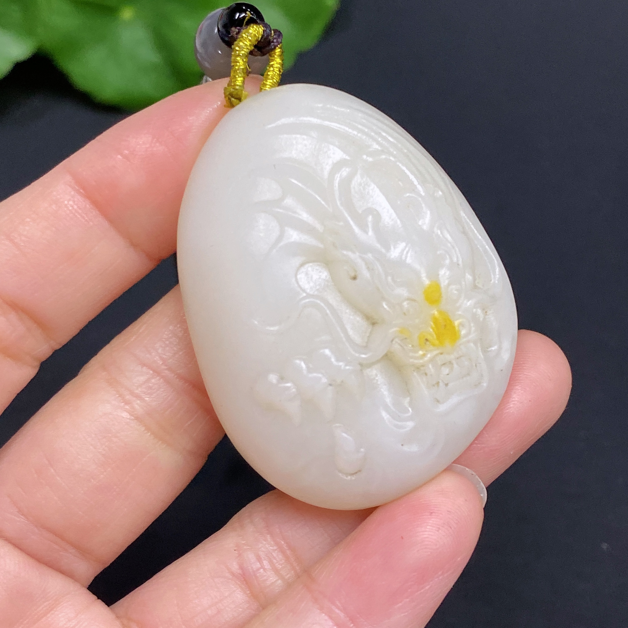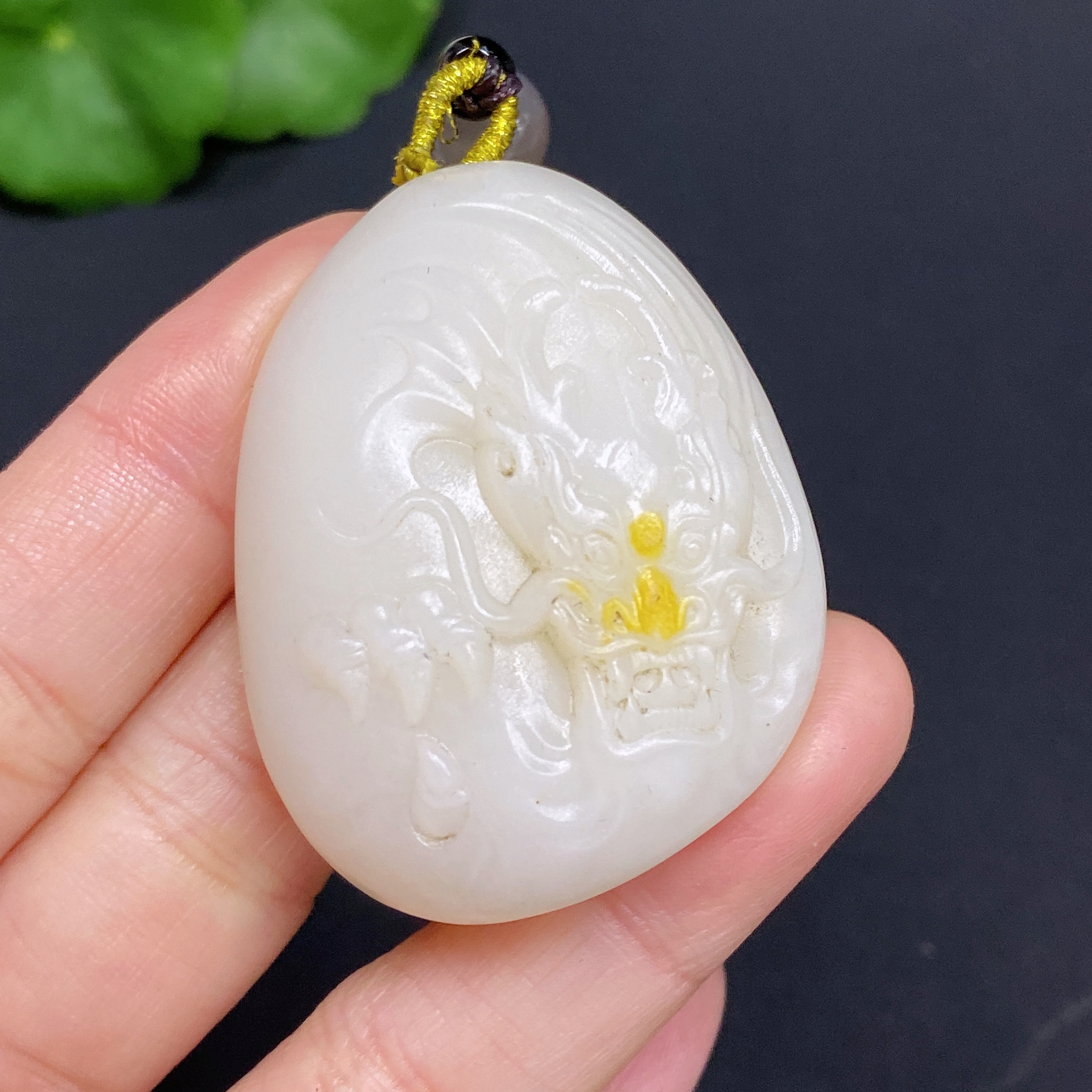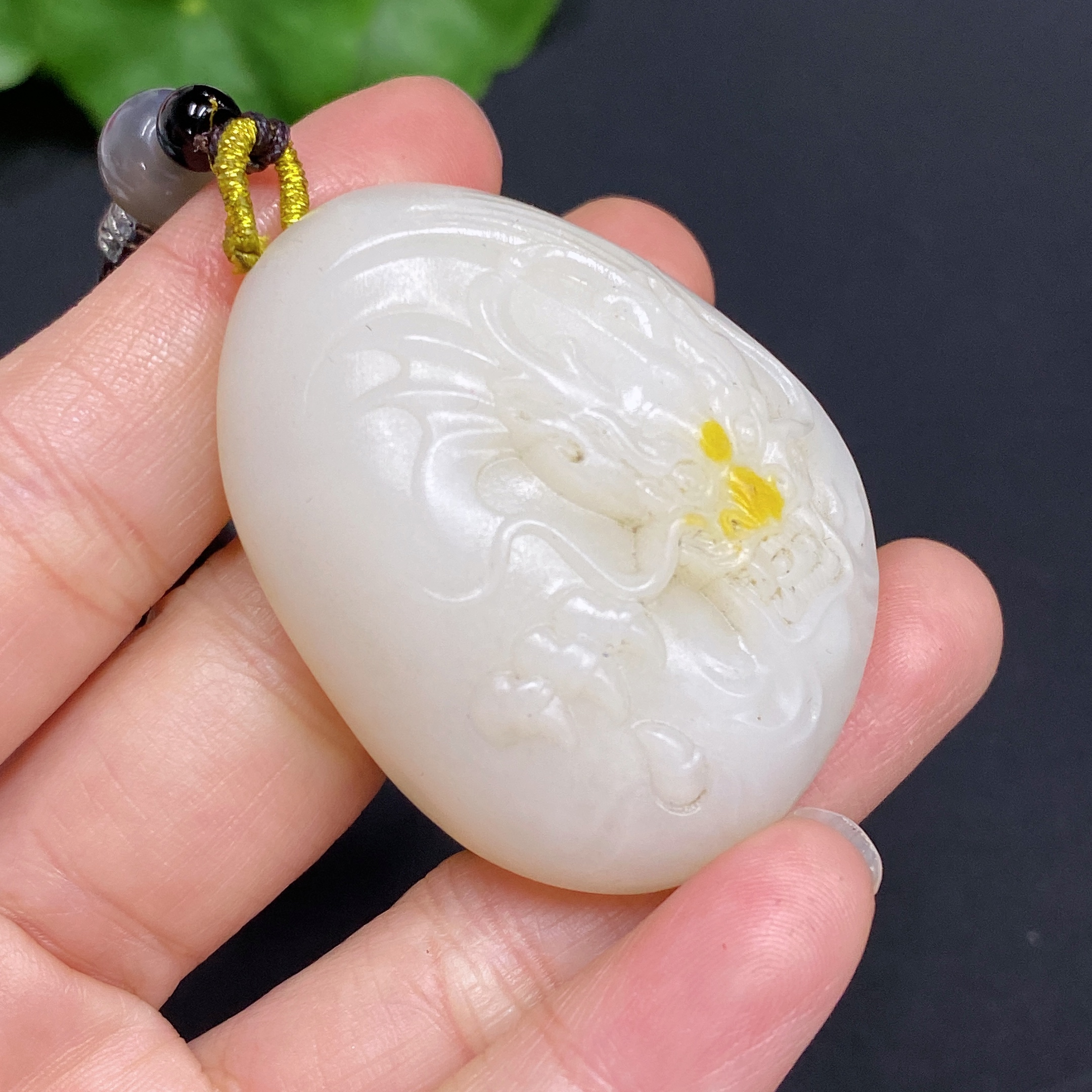 Hetian Jade Pendant Dragon Total Weight Approx. (Including Rope) 44g Undetermined Skin Color Origin