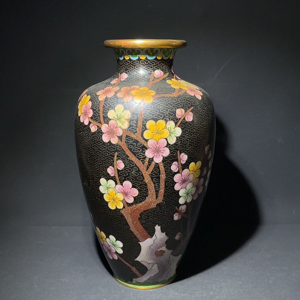 English translation: "Republic of China Period Copper Wire Cloisonné Enamel Plum Vase, Miscellaneous