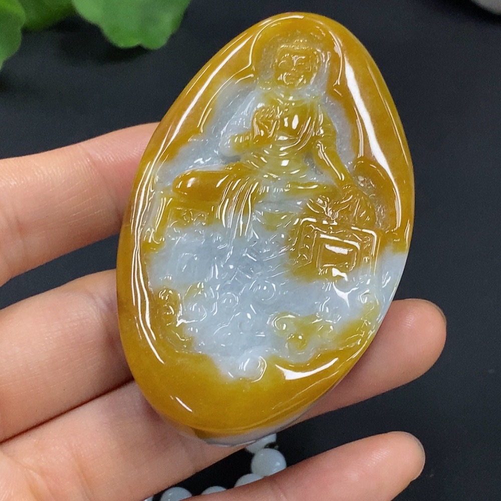 Jadeite Guanyin Pendant Total Weight Approx. 121.08g (Including Chain) Color Origin Undetermined Non-Type A Chain