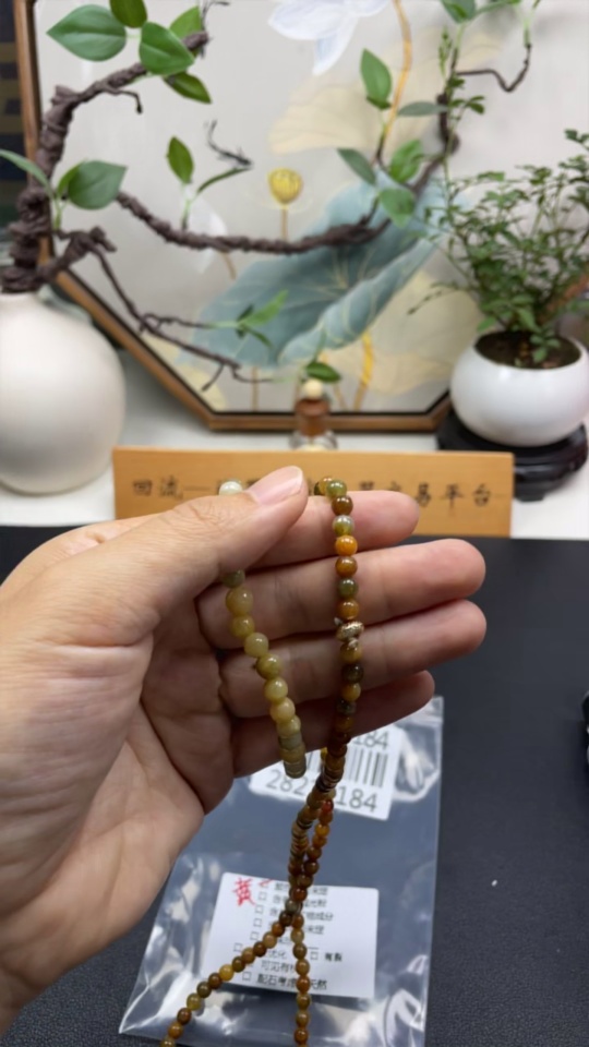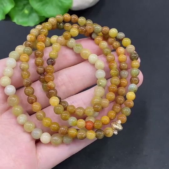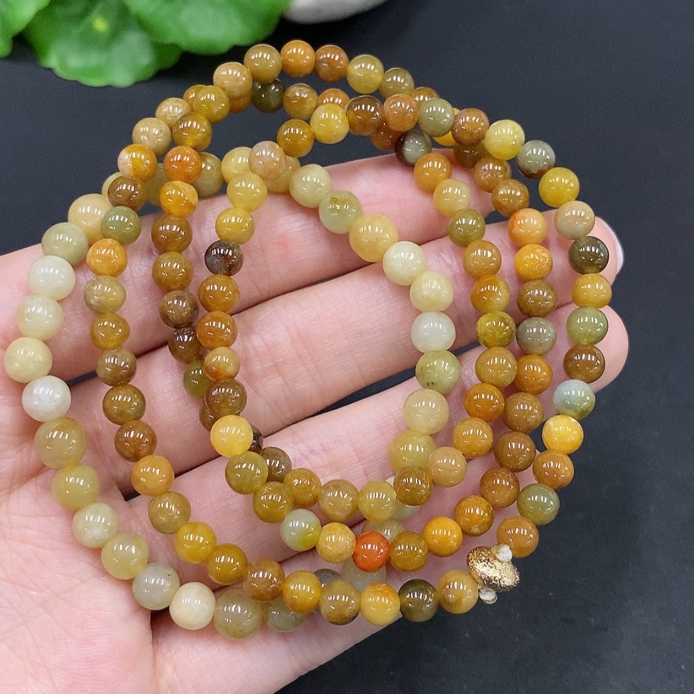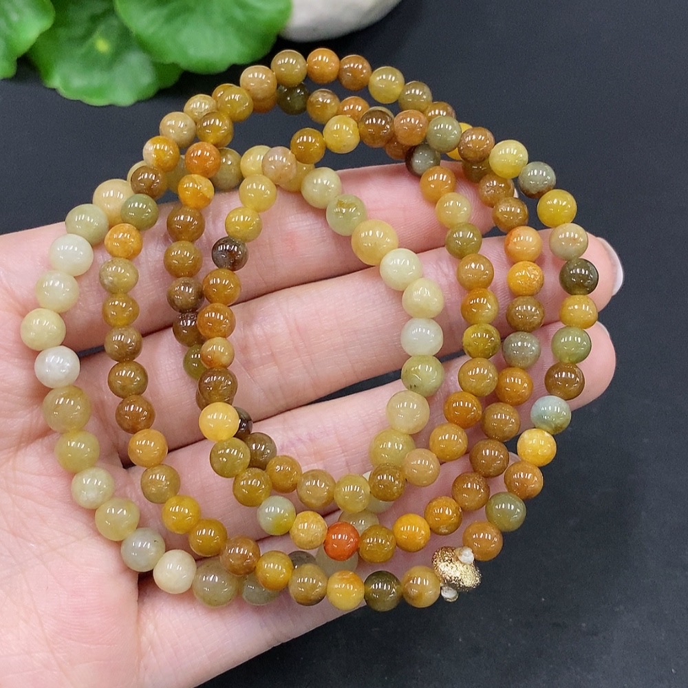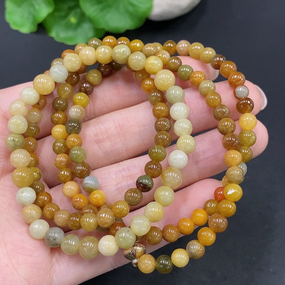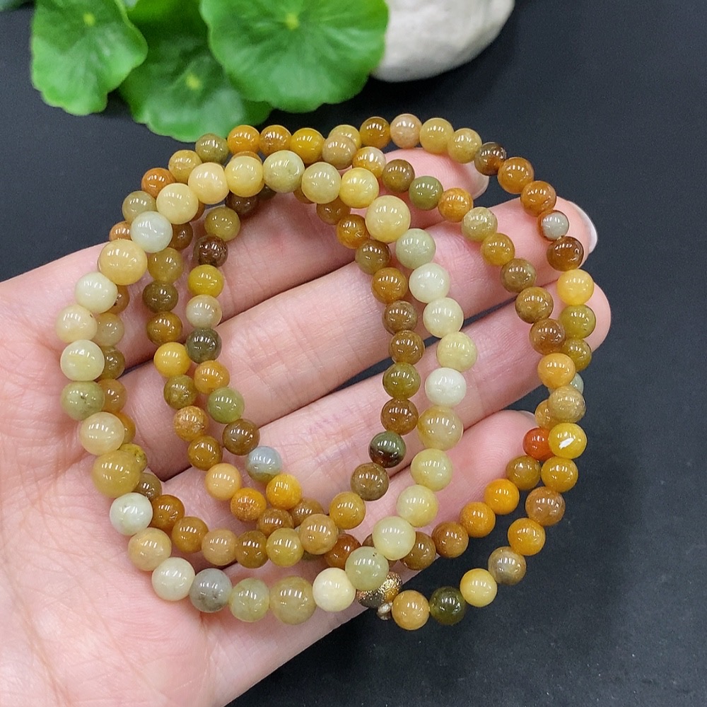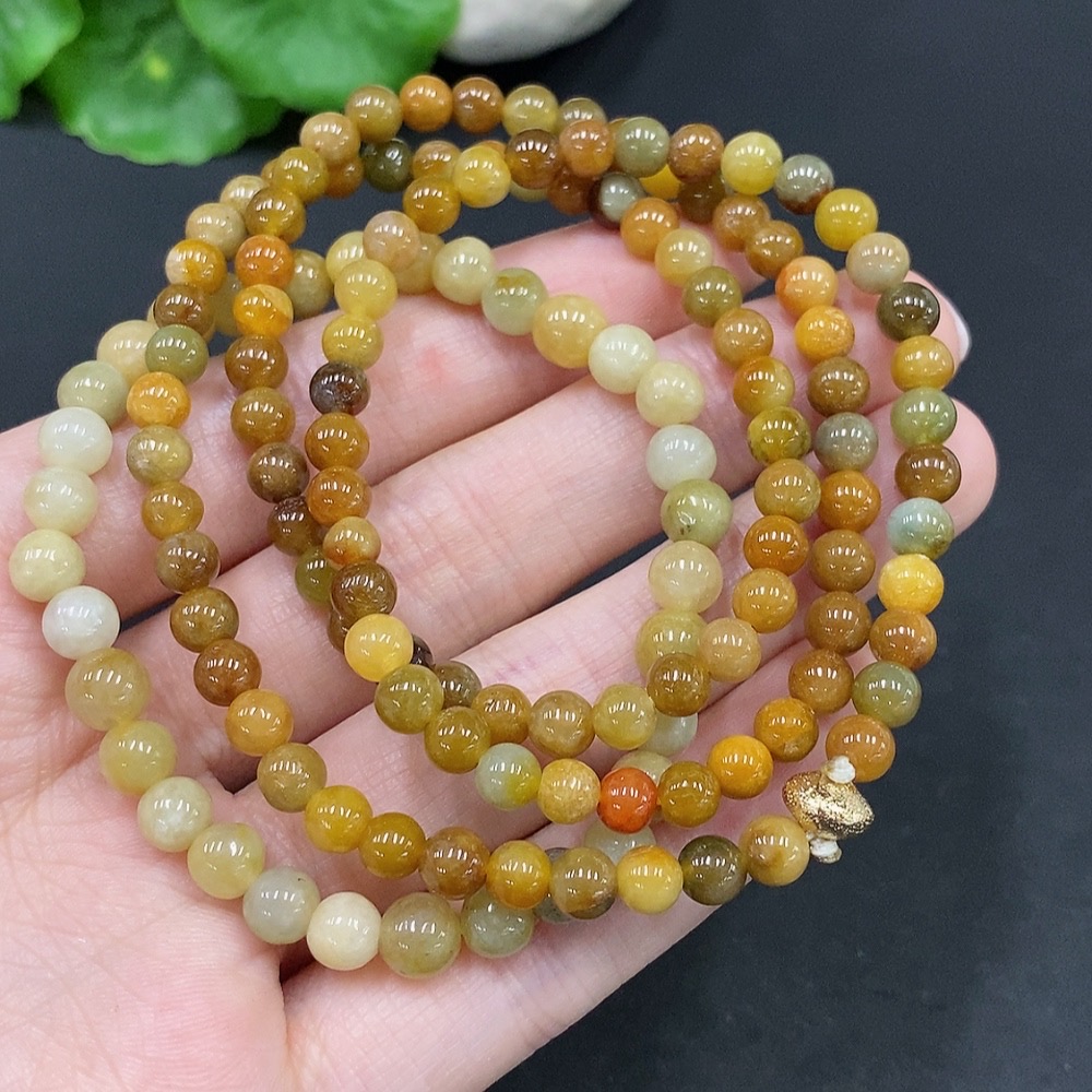 Jadeite Beaded Necklace + Bracelet, Yellow Beads Color Origin Undetermined