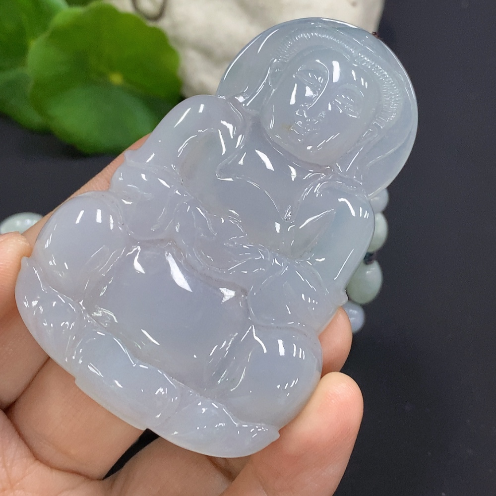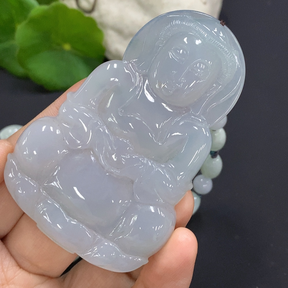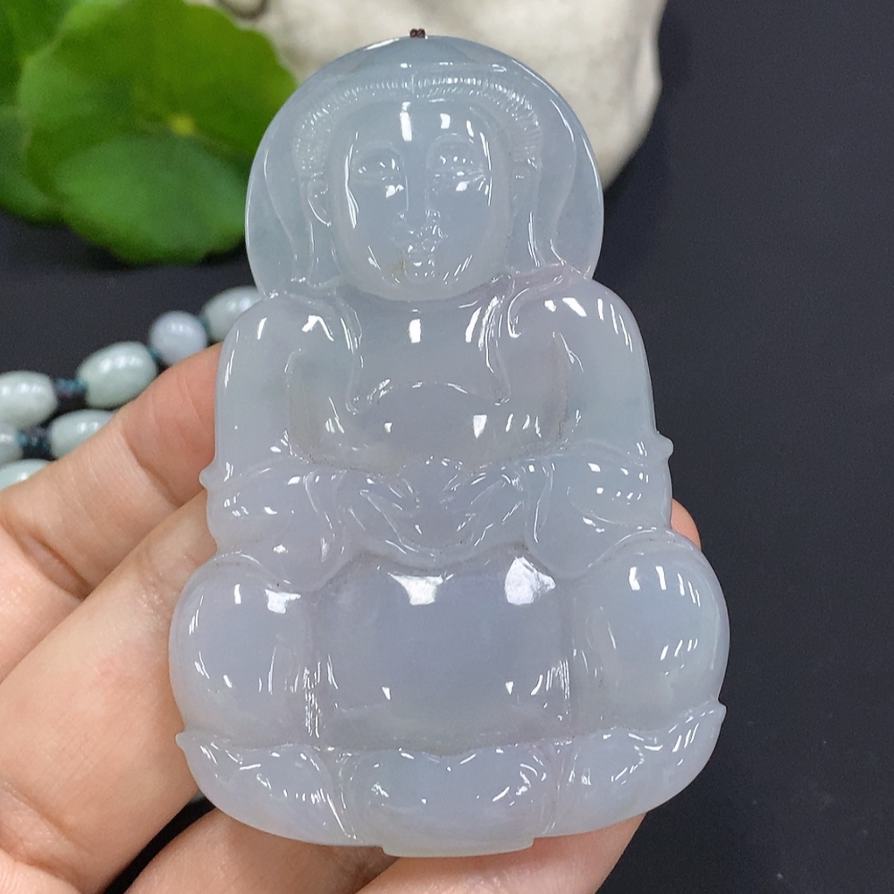 Jadeite Guanyin Pendant Total Weight Including Chain Approx. 100.8g