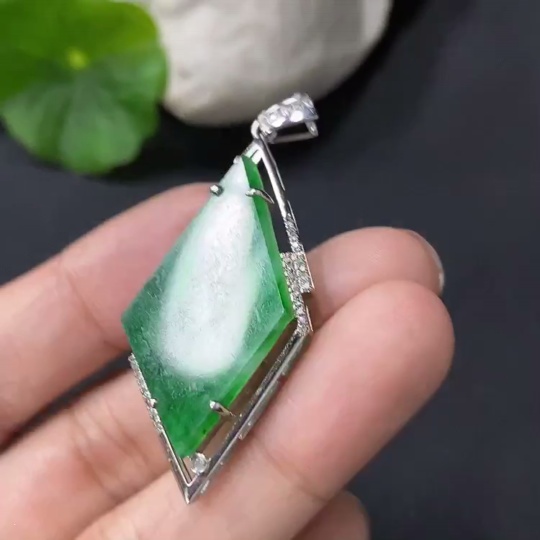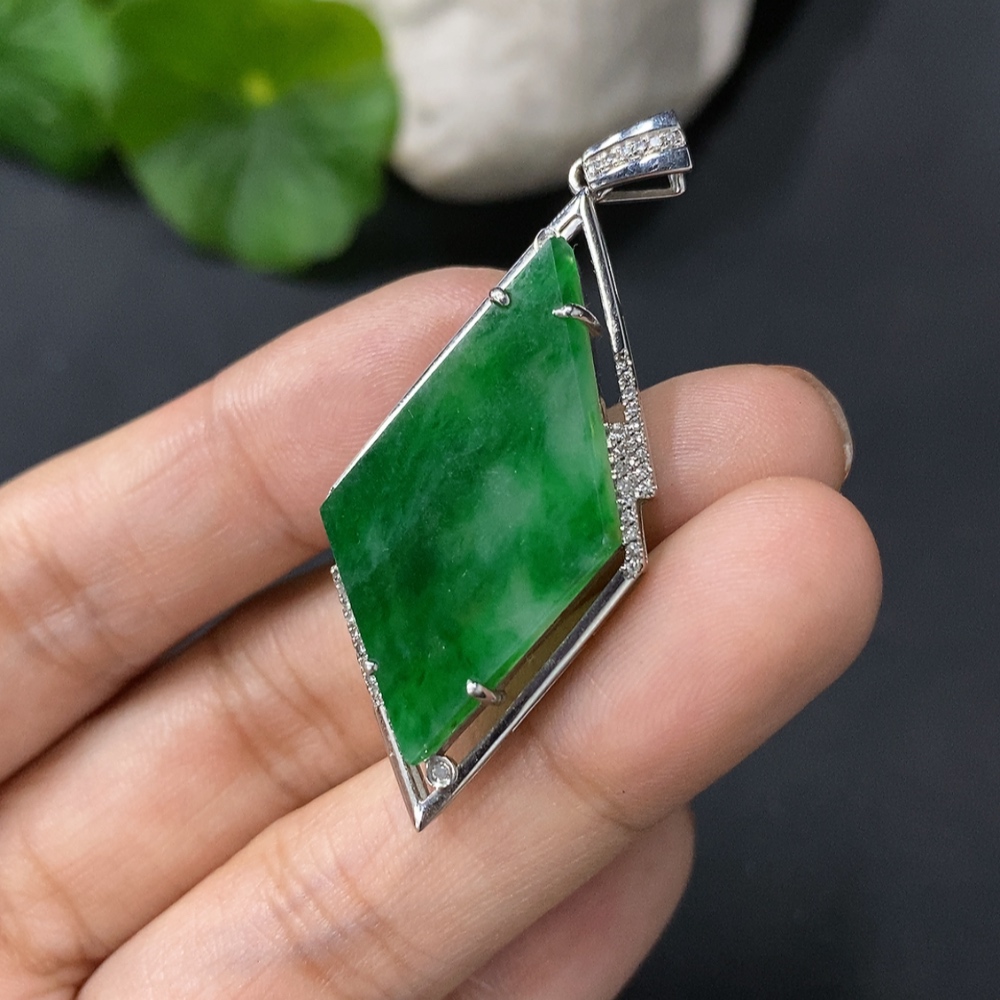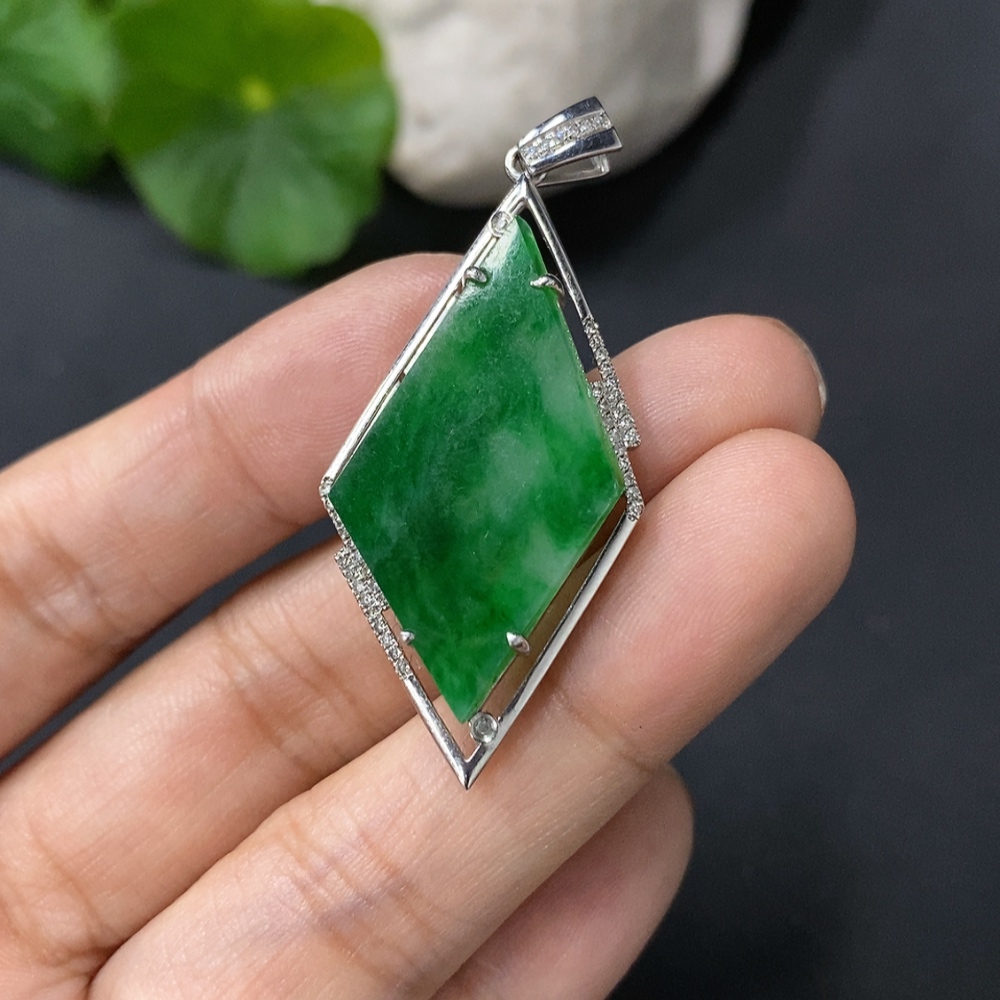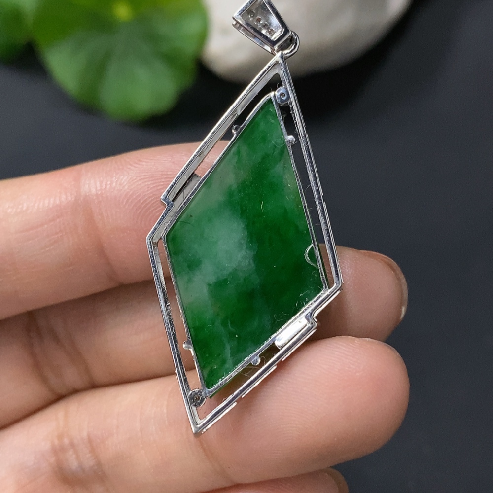 Jadeite Inlaid Pendant, 18k Gold Inlaid, Approx. 4.4g