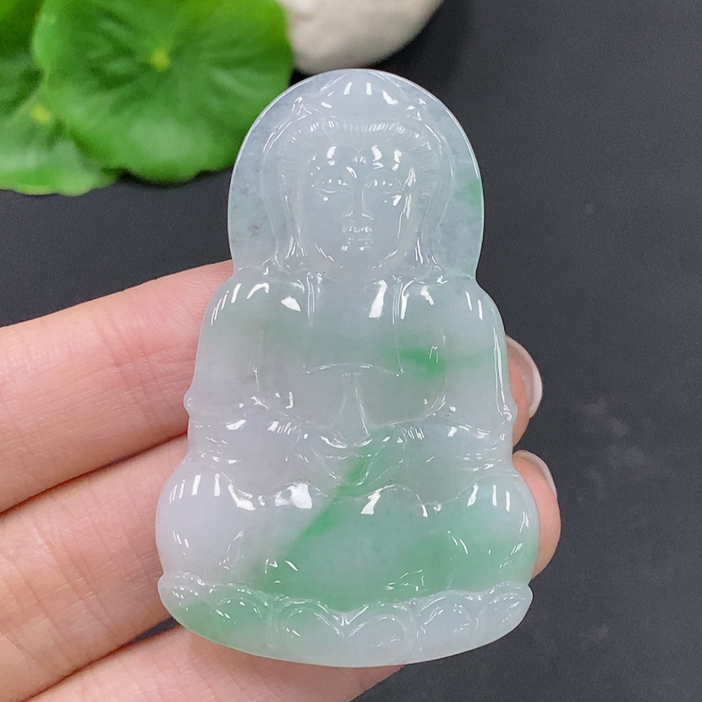 Jadeite Guanyin Pendant, Total Weight Approx. 12.6g