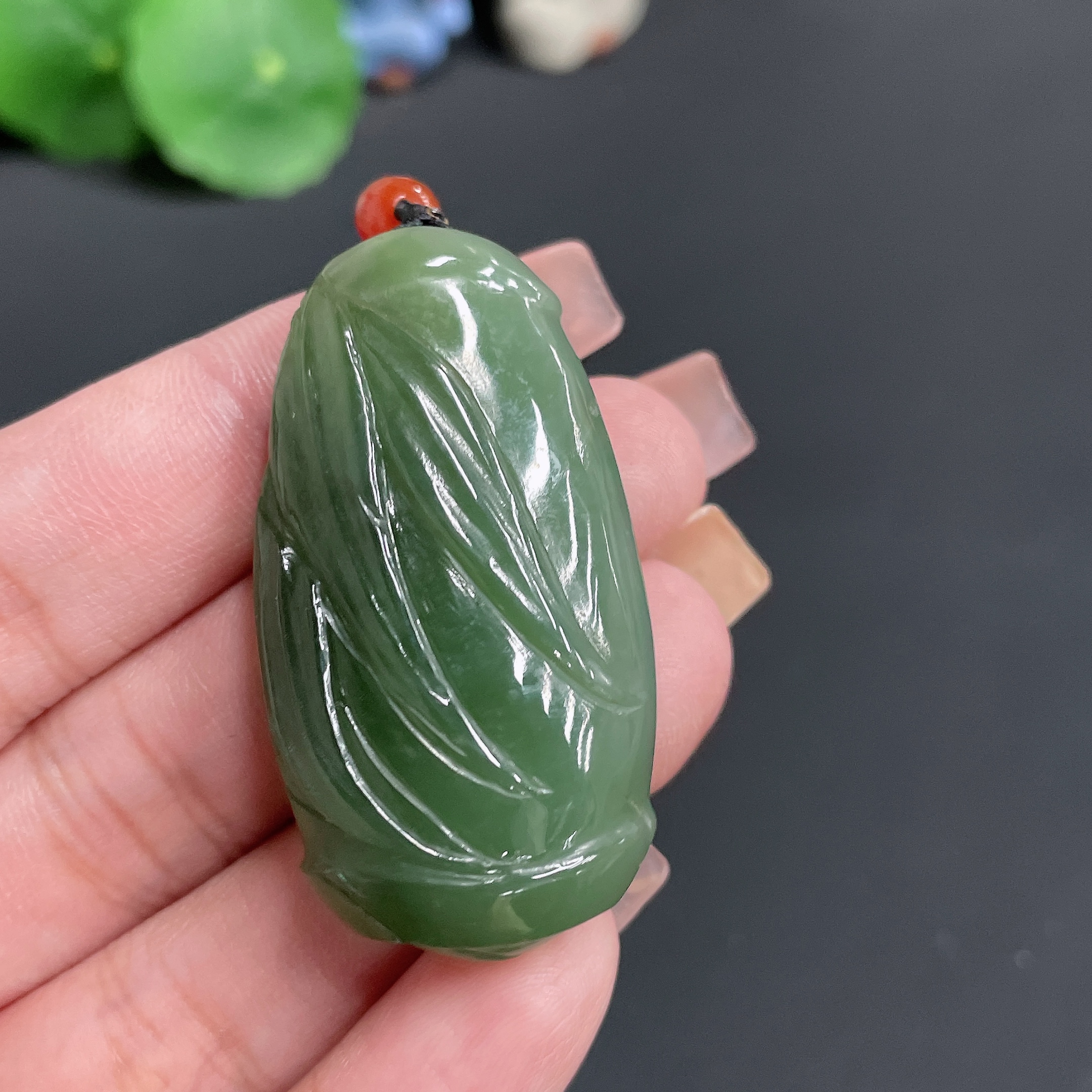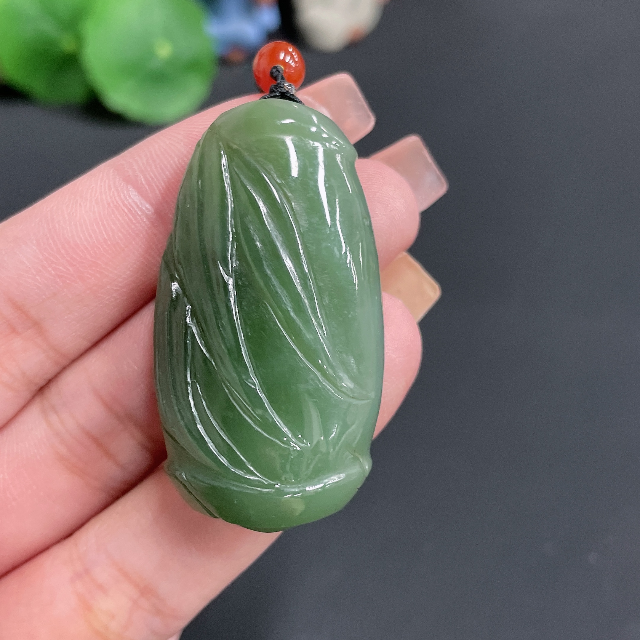 Hetian Jade Pendant Bamboo Joint Total Weight Approx. (Including Rope) 26.9g