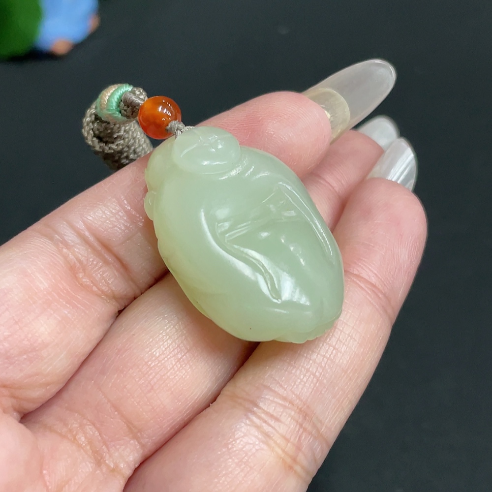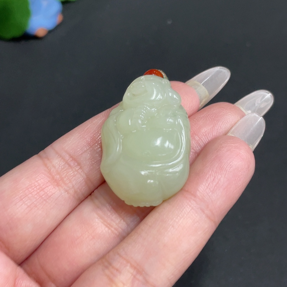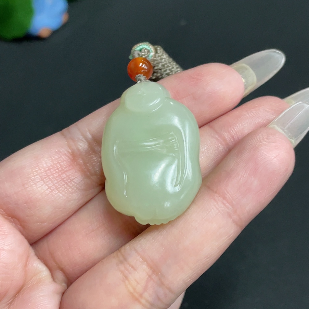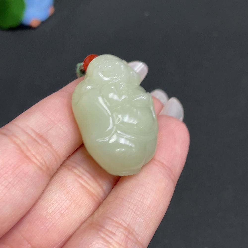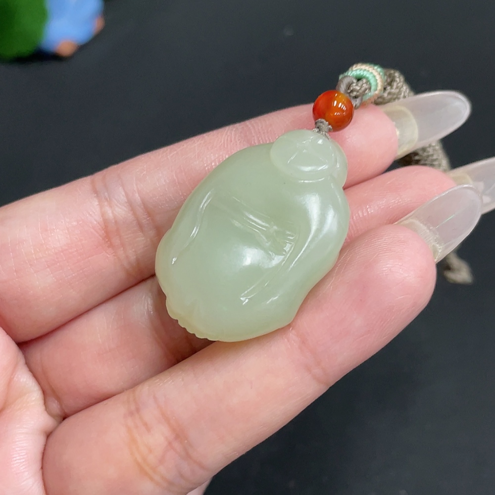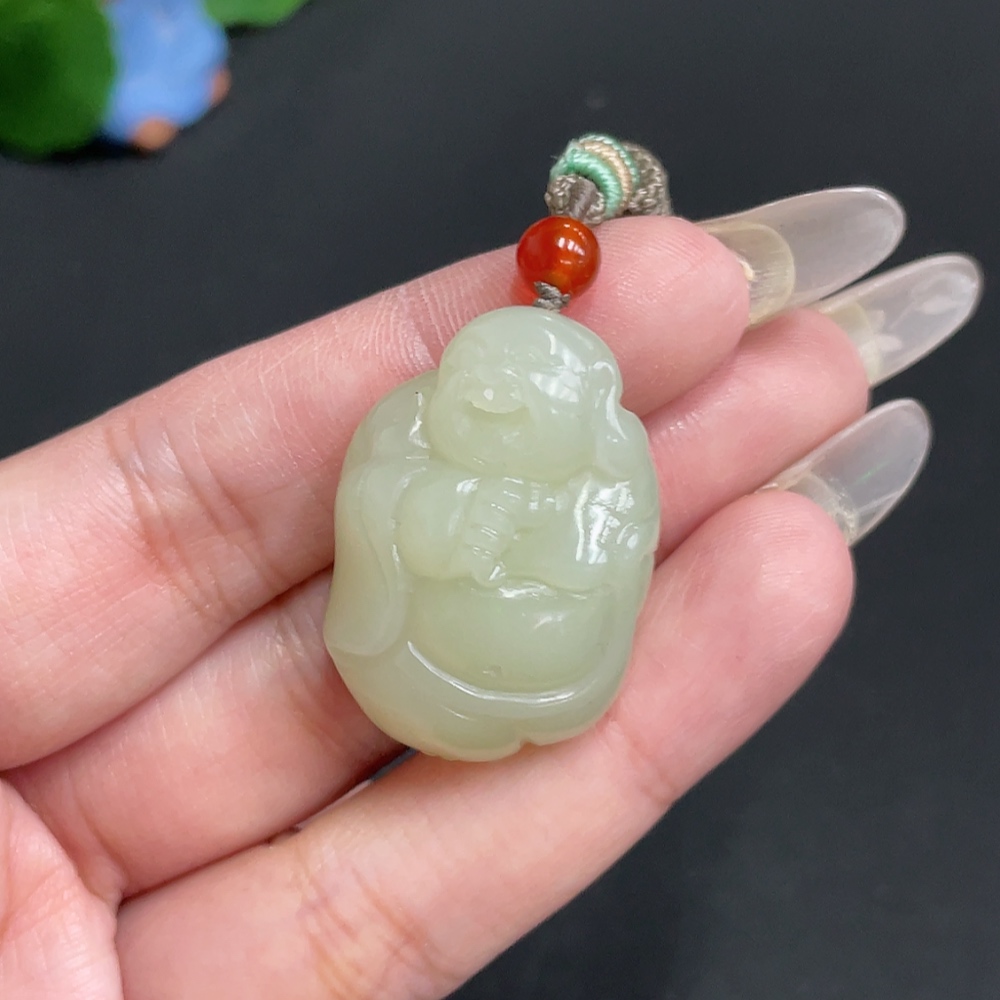 Hetian Jade Pendant Buddha, Total Weight (with rope): approx. 19g