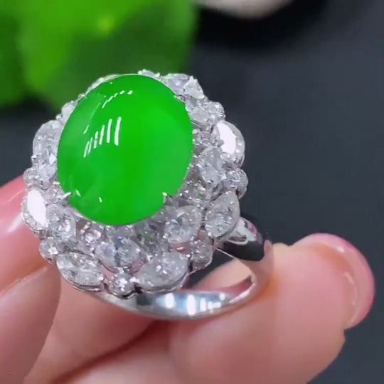 Jadeite Two-Way Ring Pendant with 18K Gold and Diamond Accents, Size 13, Total Weight Approximately 8.6g