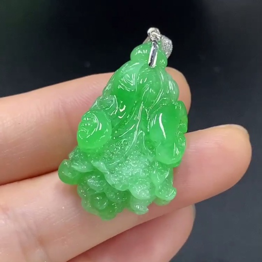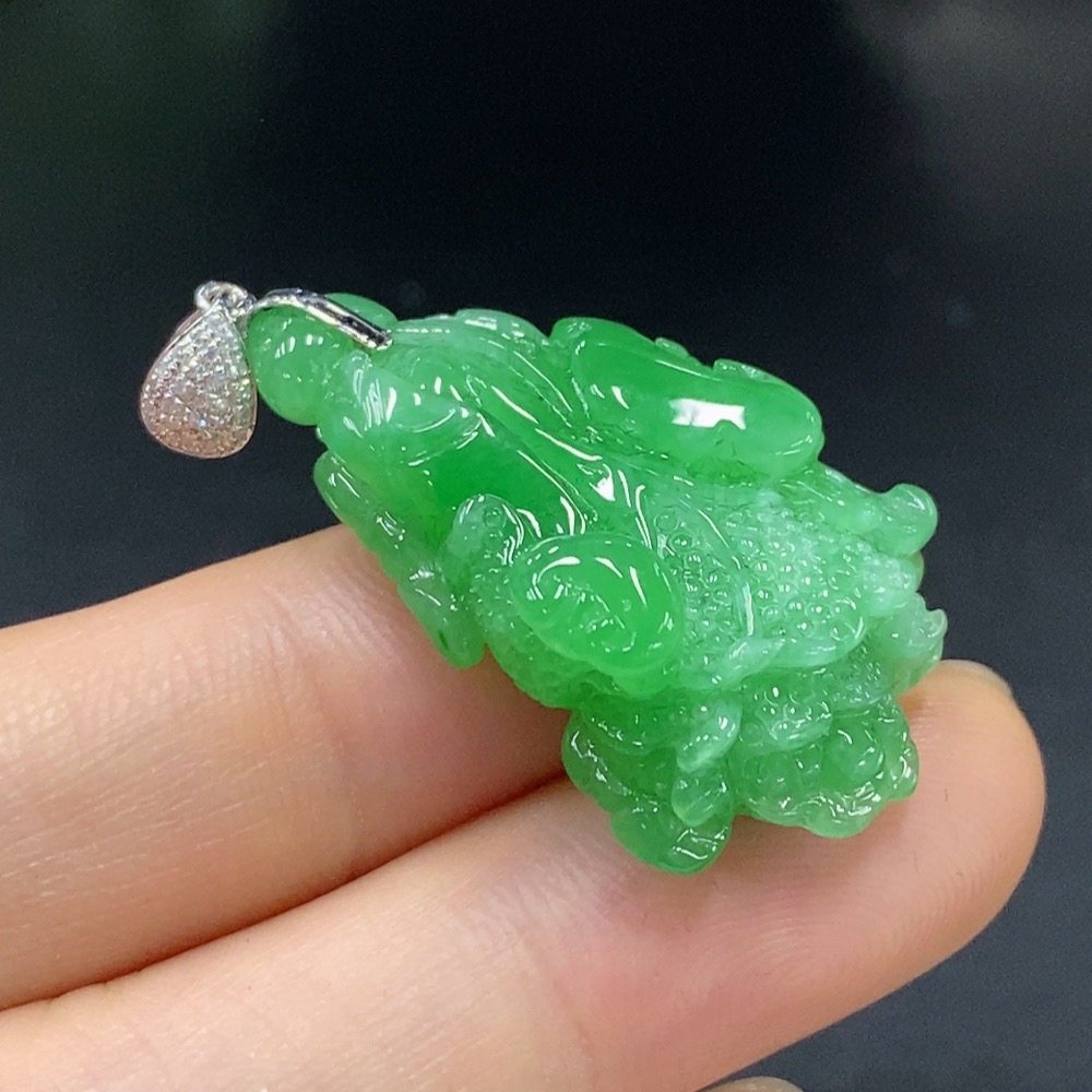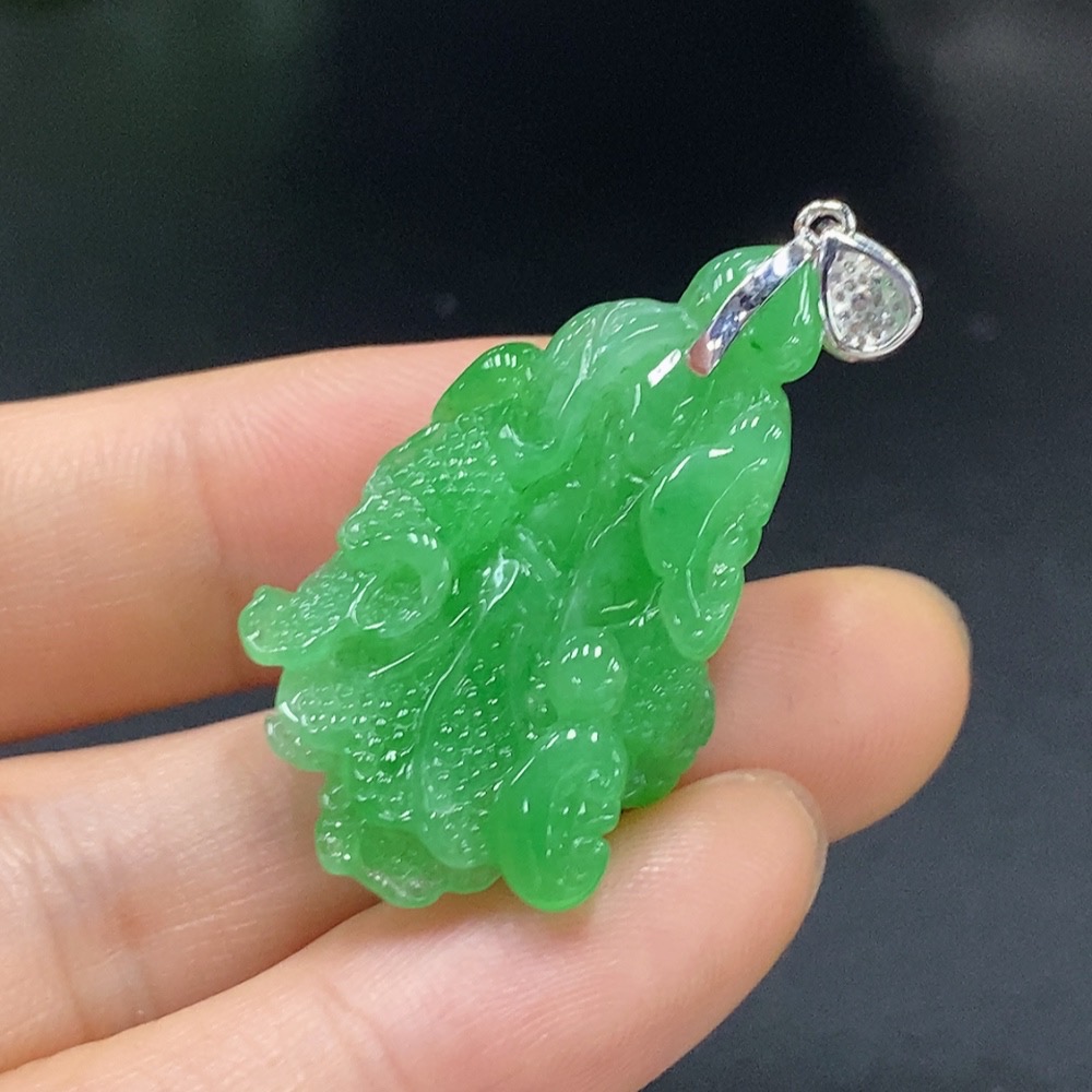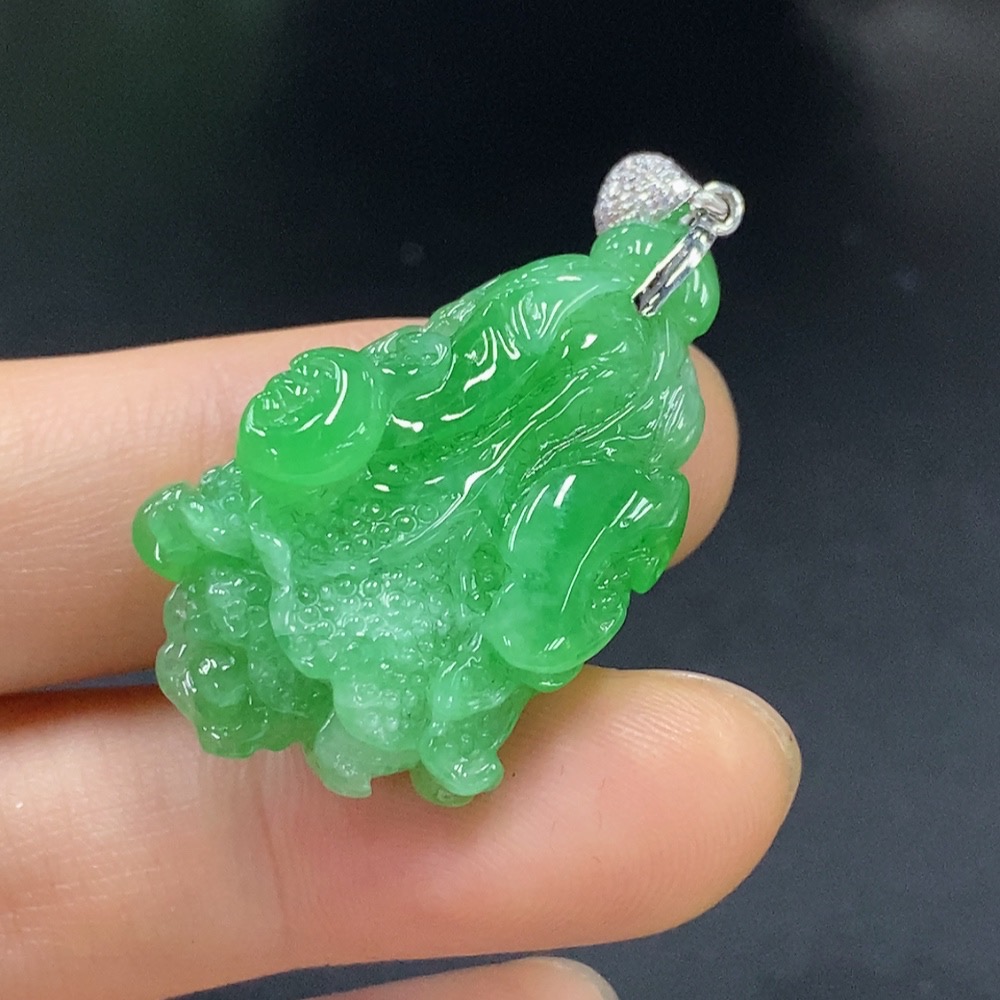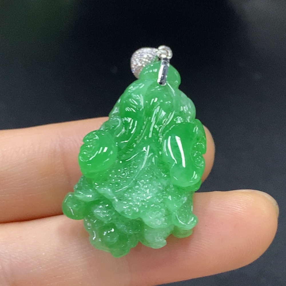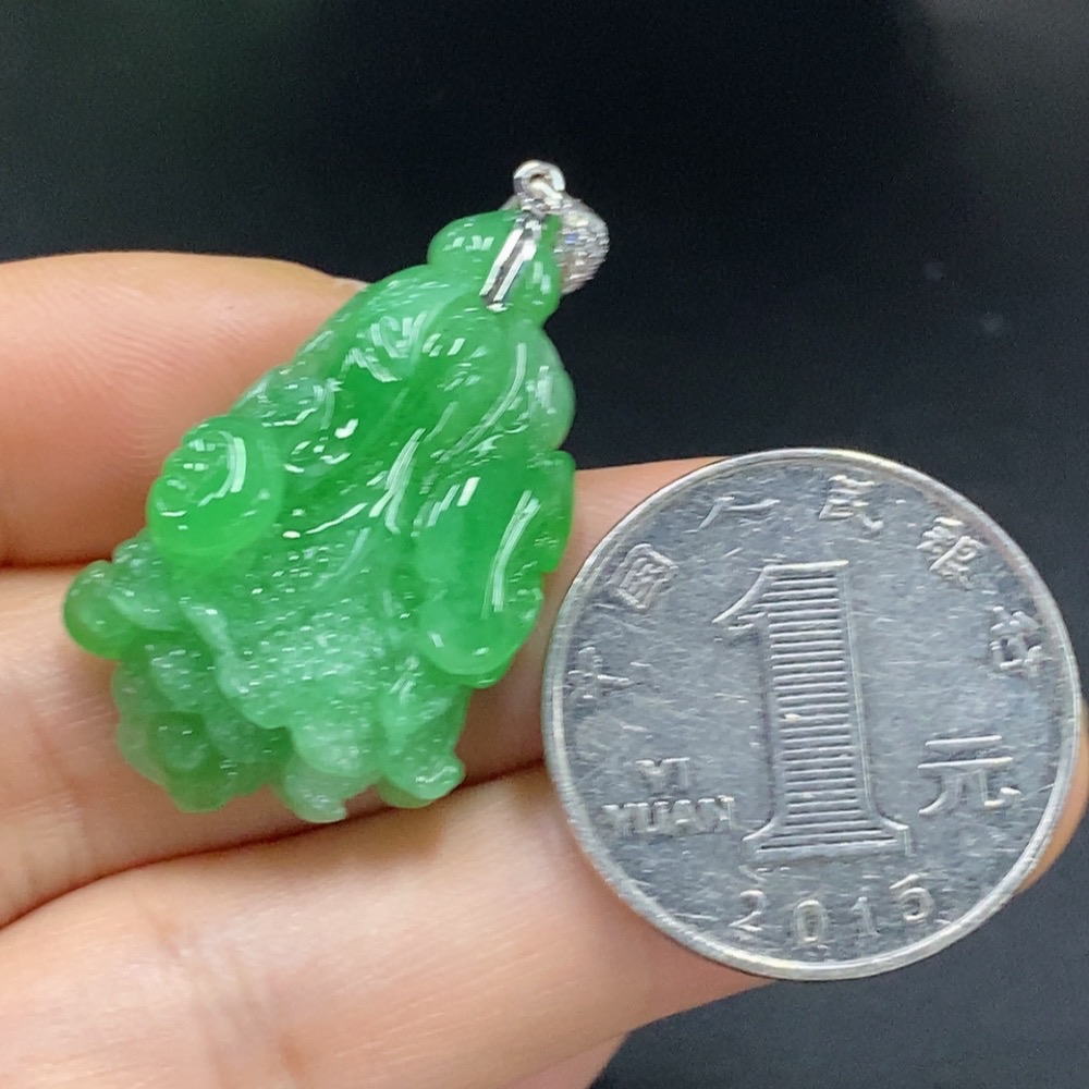 Jadeite Cabbage Pendant with 18K Gold and Diamond Accents, Total Weight Approx. 6.83g