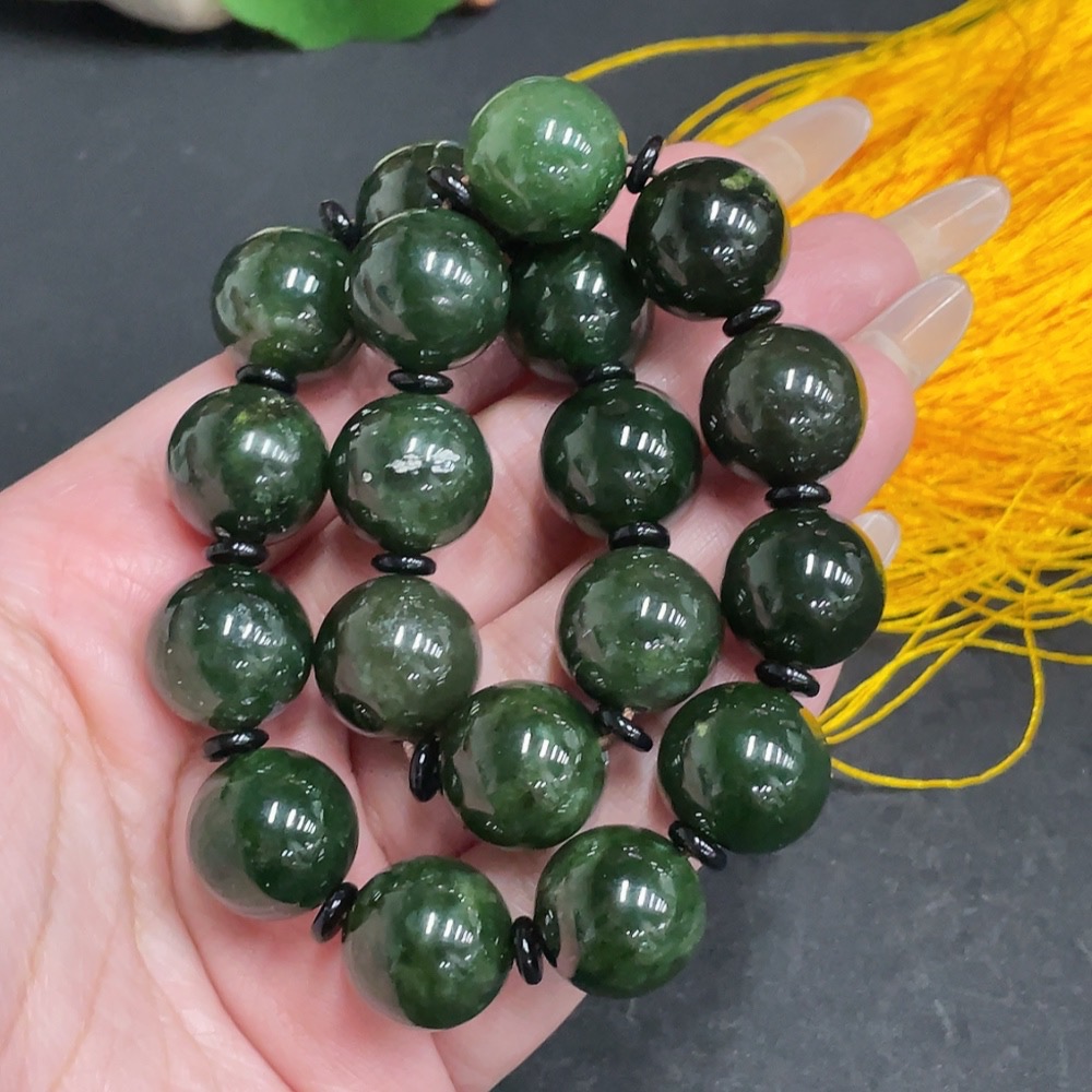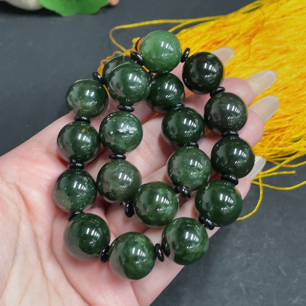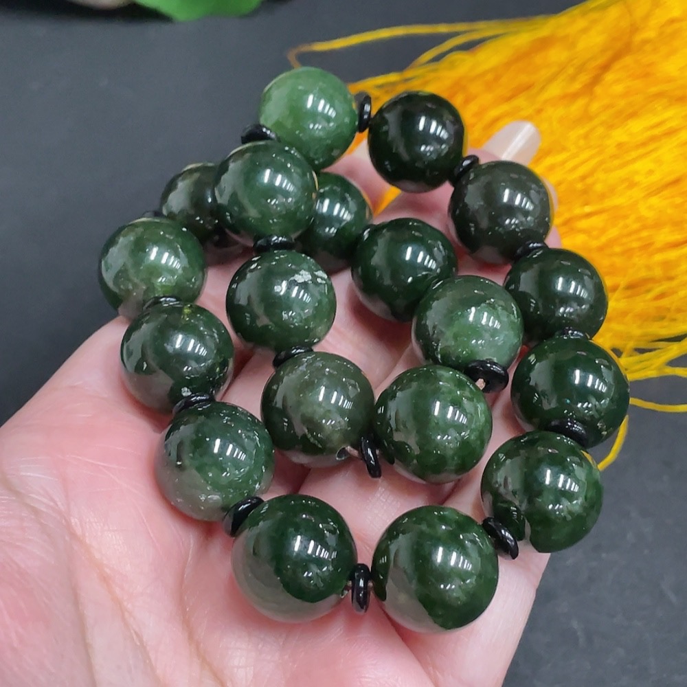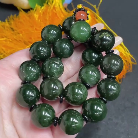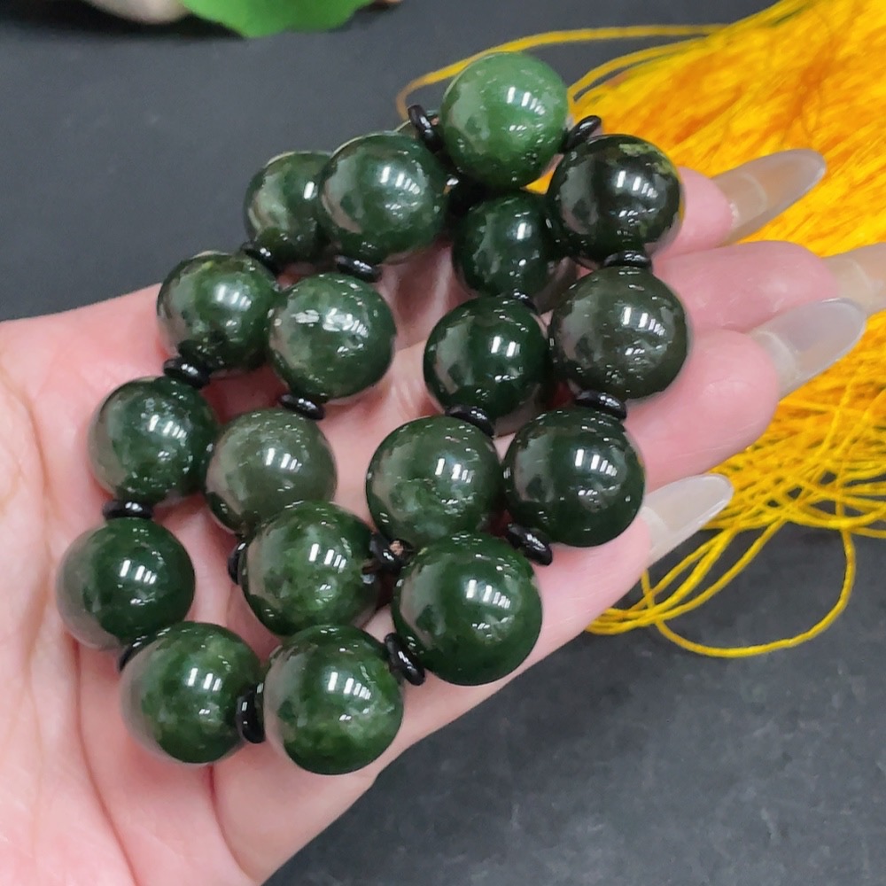 Hetian Jade Bead Necklace, Approx. 14.8 mm, Total Weight Approx. 126.9g