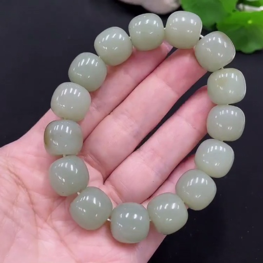 Hetian Jade Bead Bracelet, Total Weight Approx. 68.1g, Bead Size Approx. 14.1mm