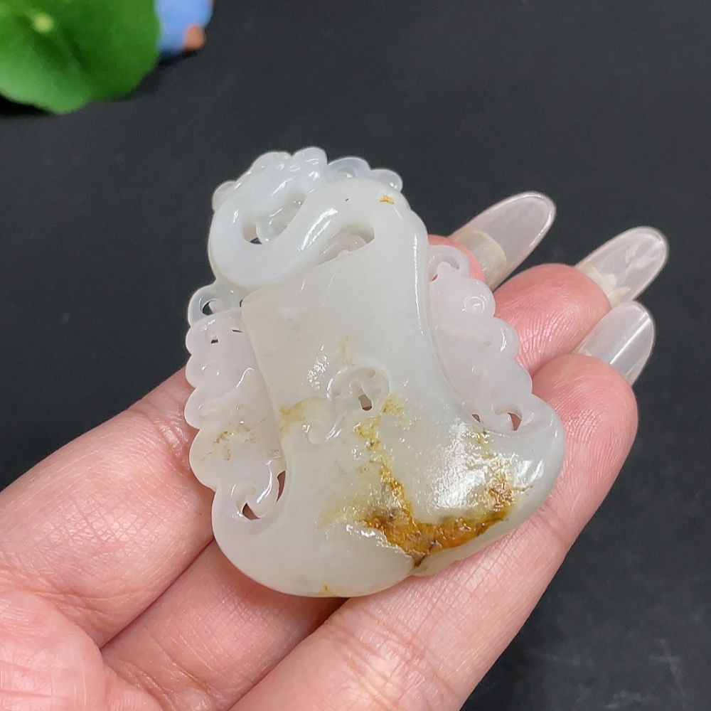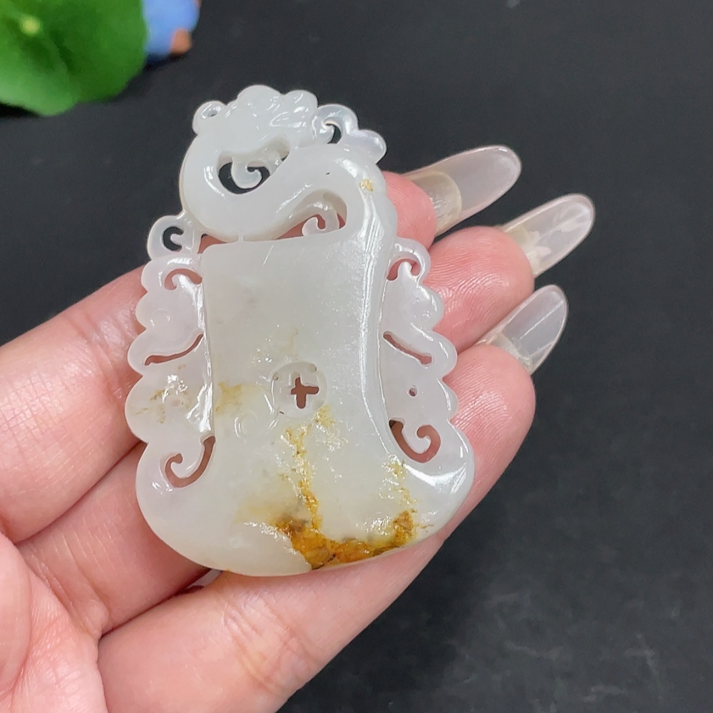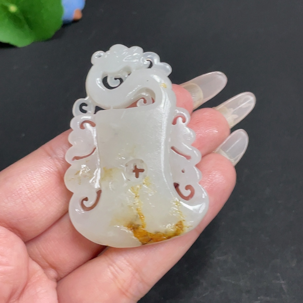 Hetian Jade Pendant, Antique-style Piece, Undetermined Skin Color Origin, Total Weight Approximately 30.4g