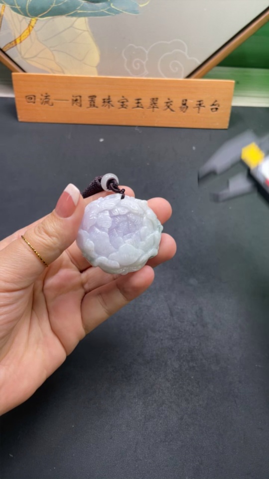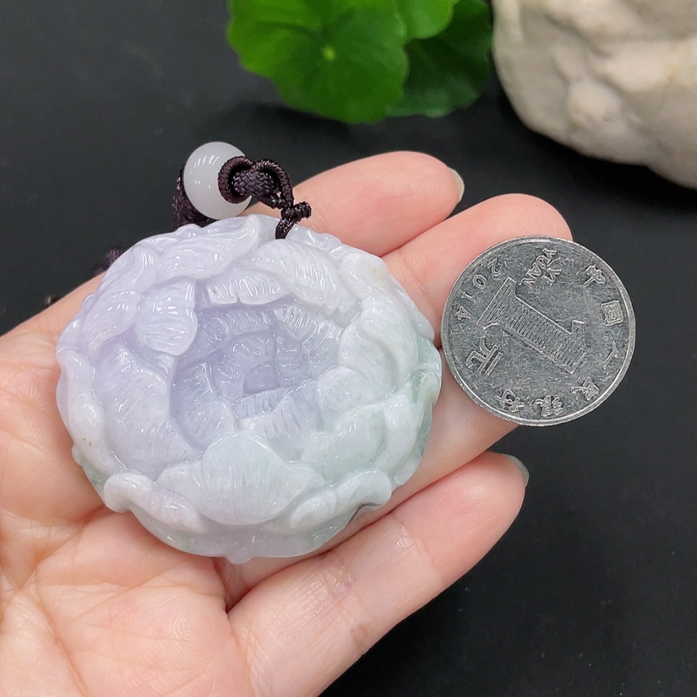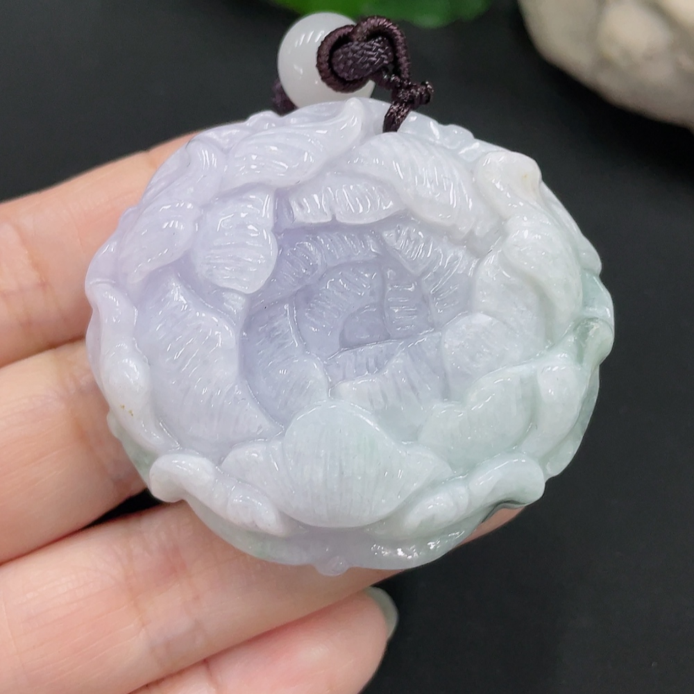 Jadeite Pendant Floral Blossom and Prosperity Total Weight Approx. 58.03g