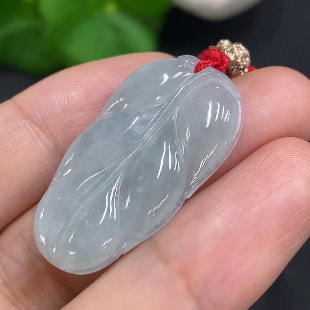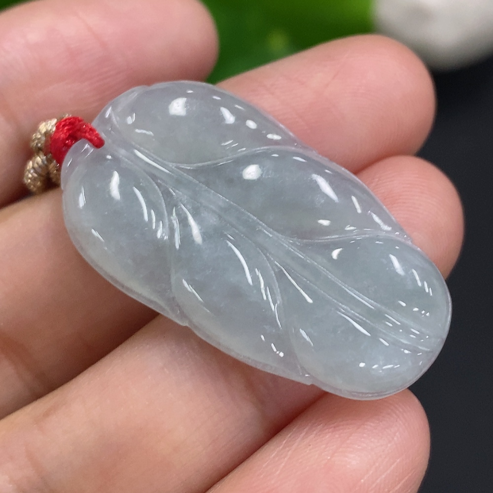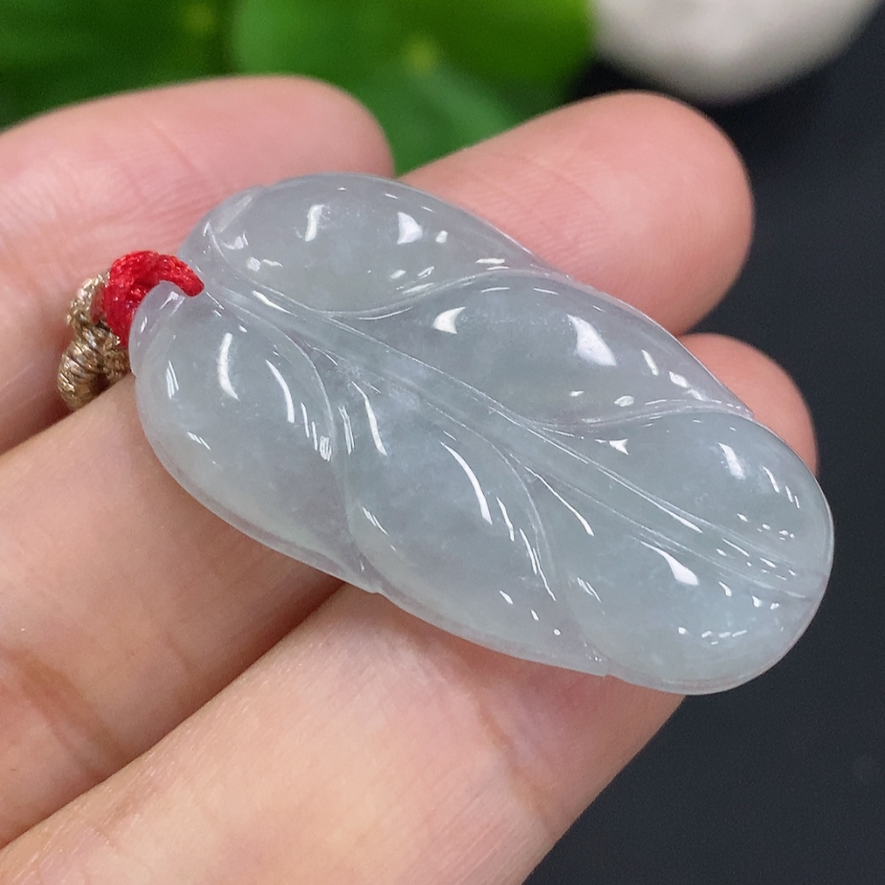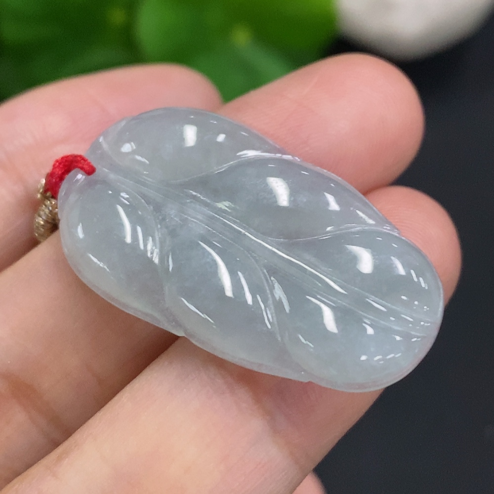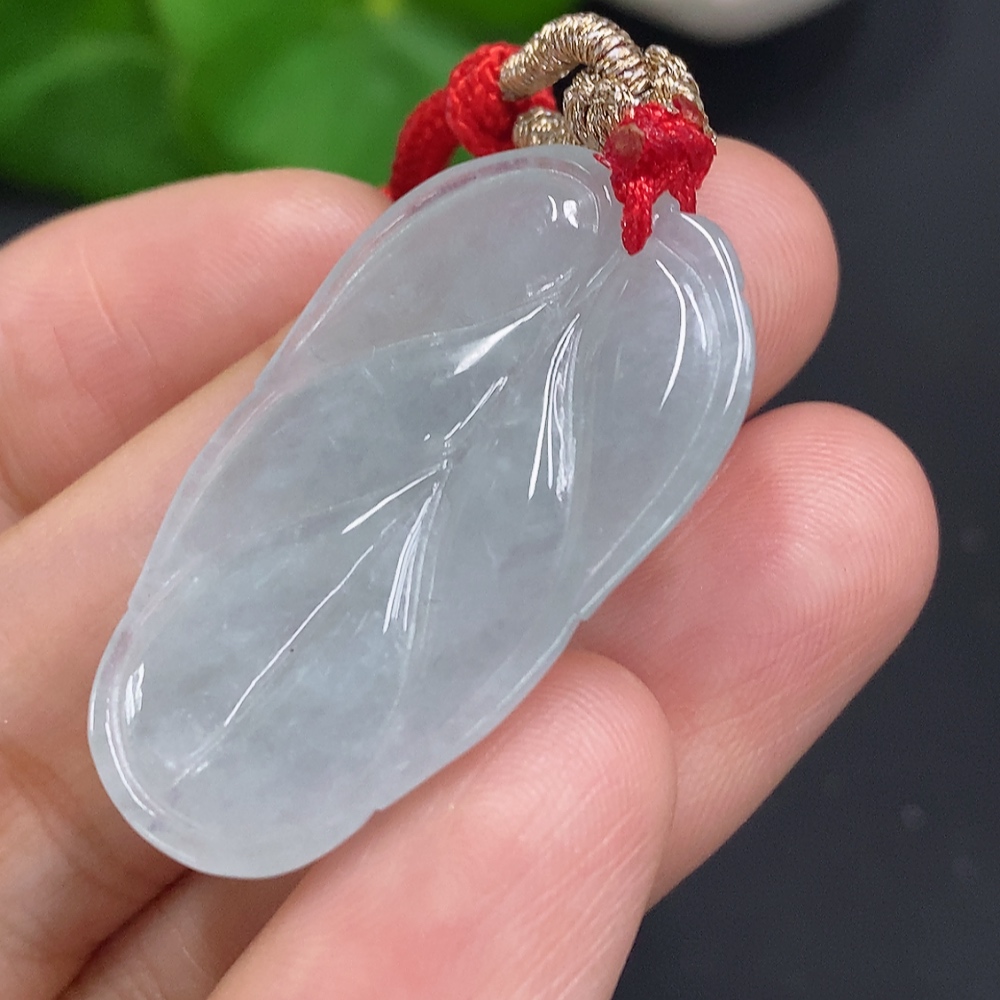 Jadeite Leaf Pendant Total Weight Including Rope Approximately 6.2g