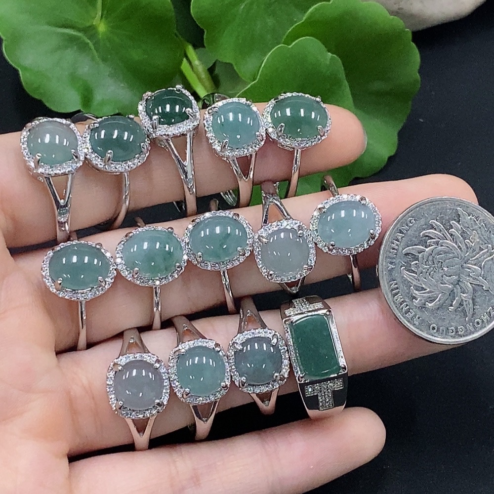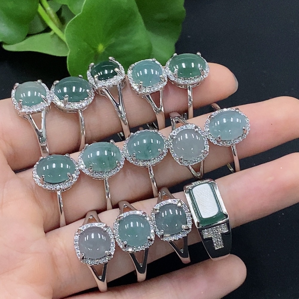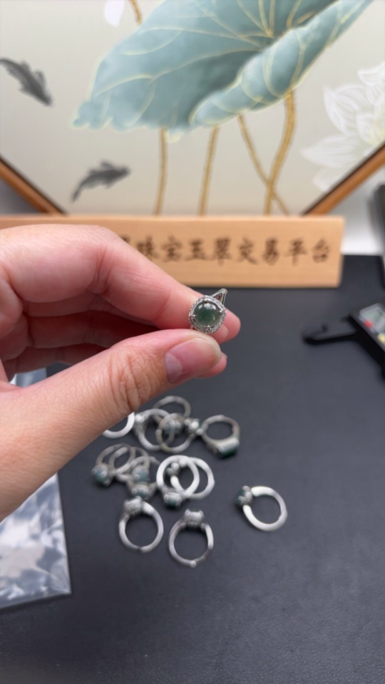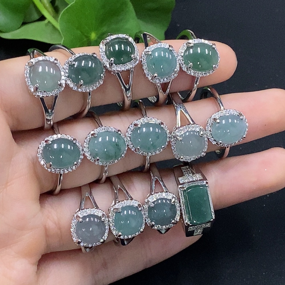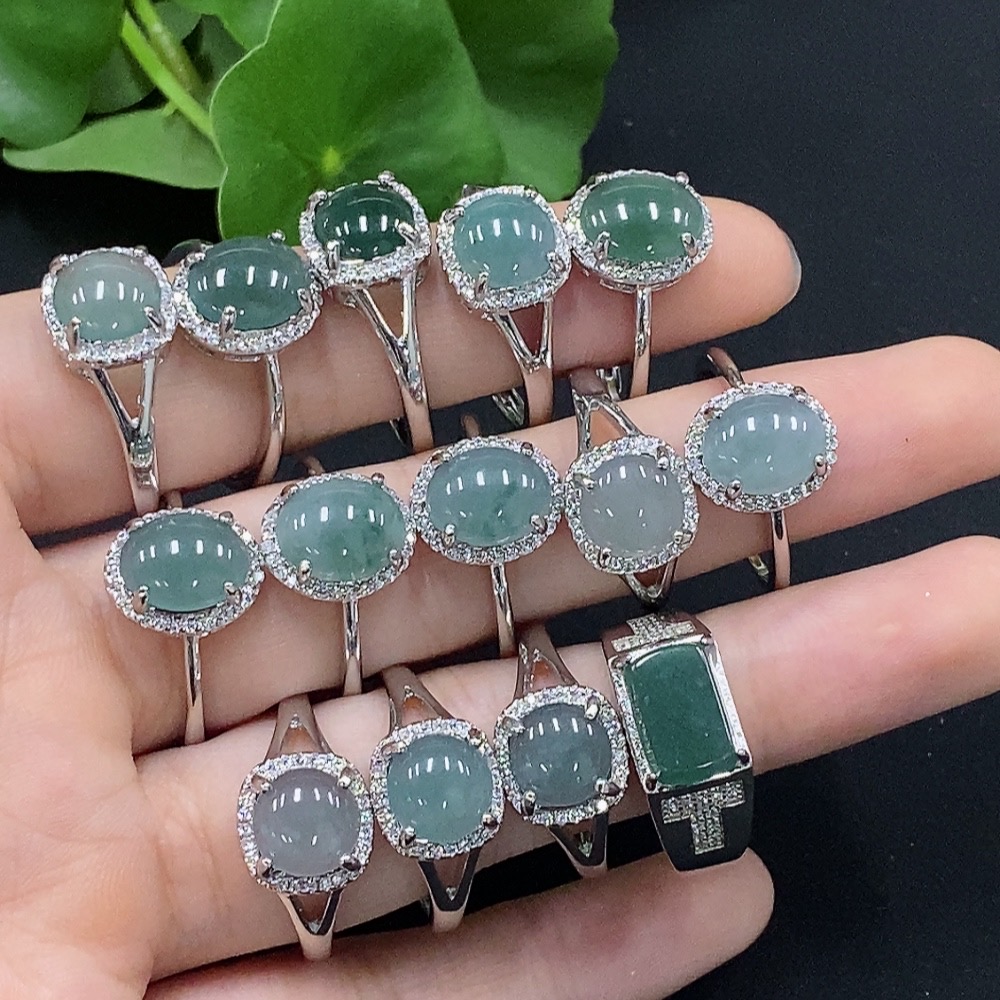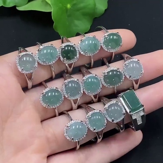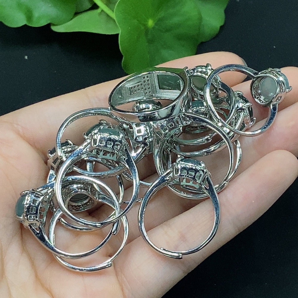 Jadeite Cabochon Inlaid Ring Non-Gold Setting Adjustable