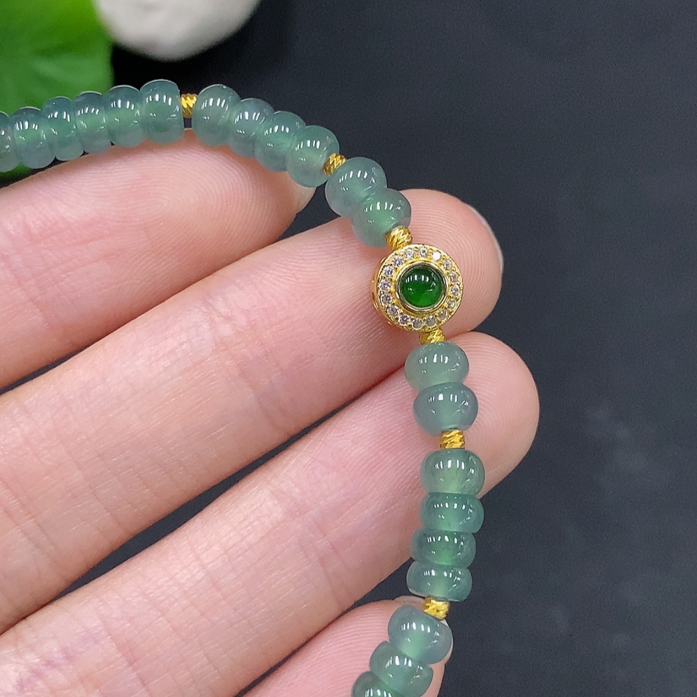 Jadeite Bead Necklace Approx. 5mm Non-gold Total Weight Approx. 9.1g