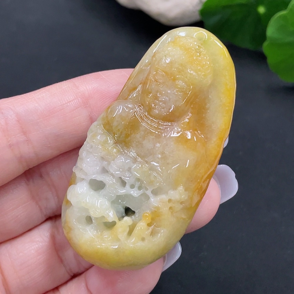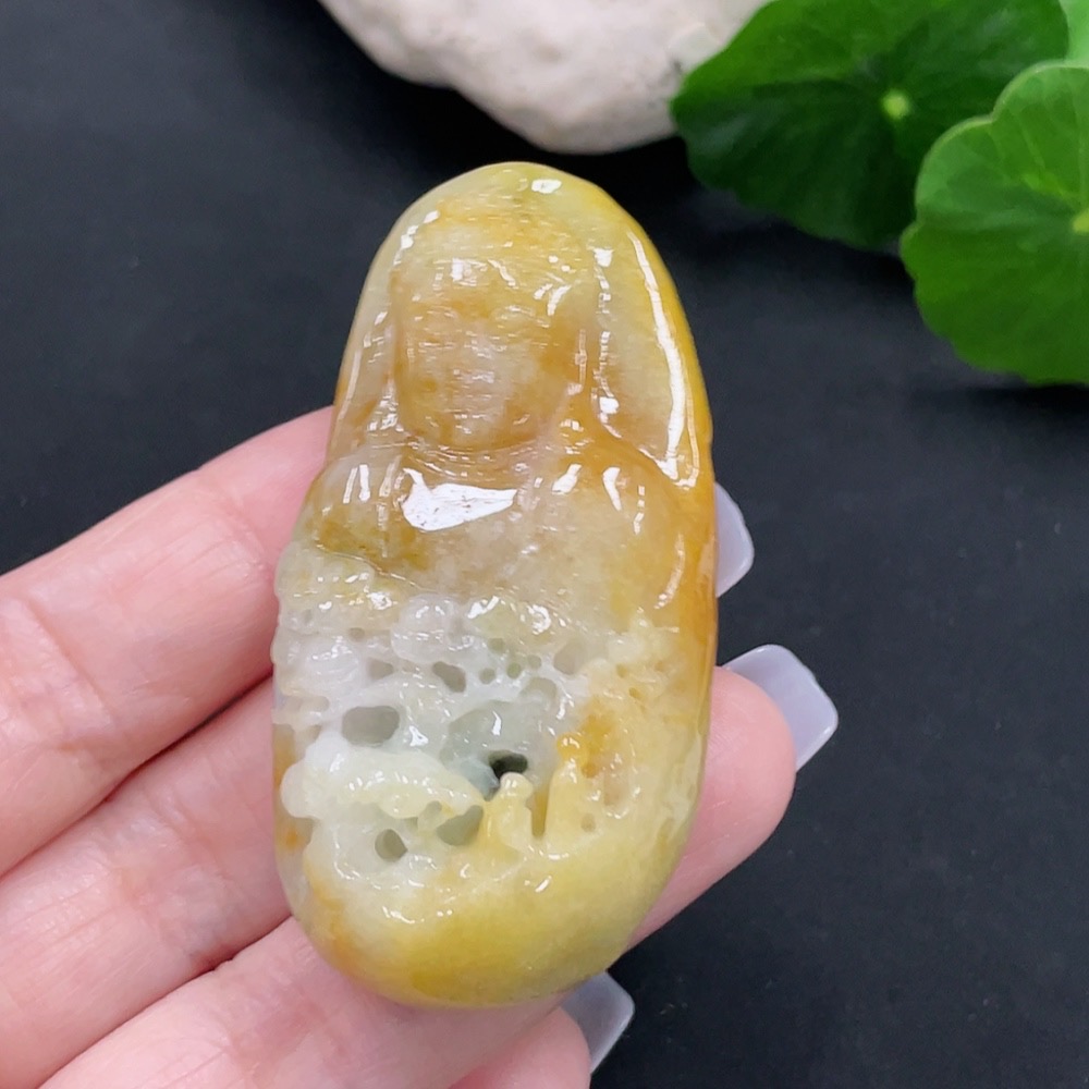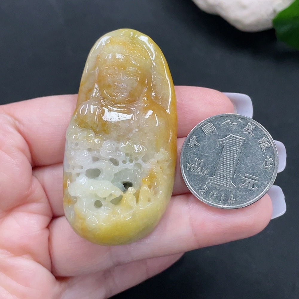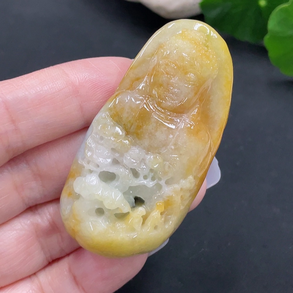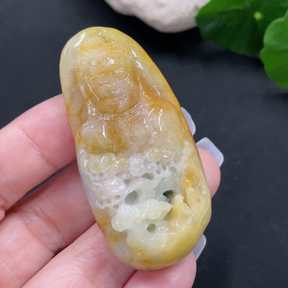Jadeite Buddha Pendant Total Weight Approx. 38.8g (Color origin undetermined)