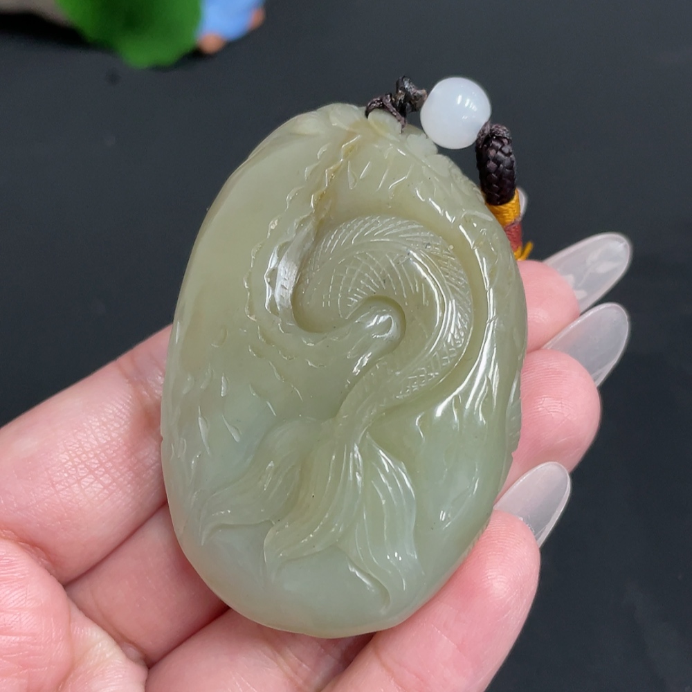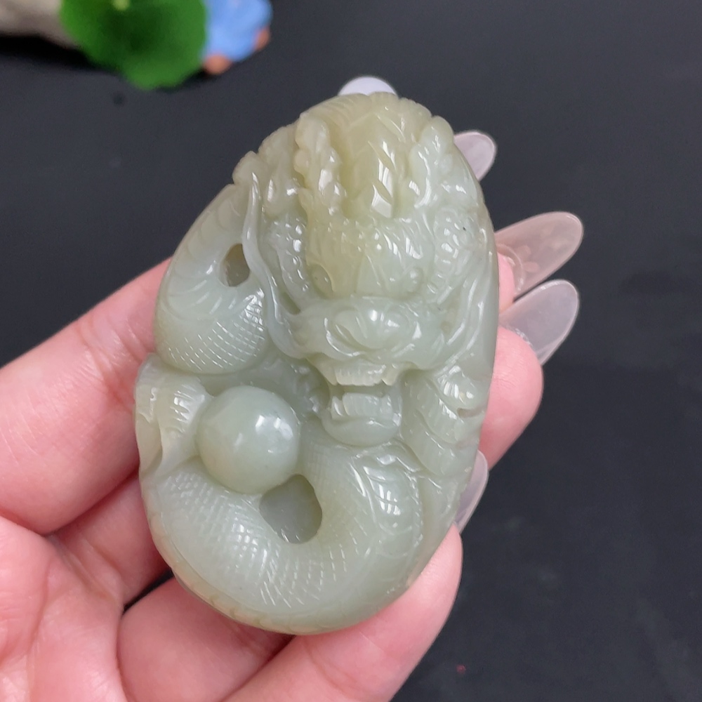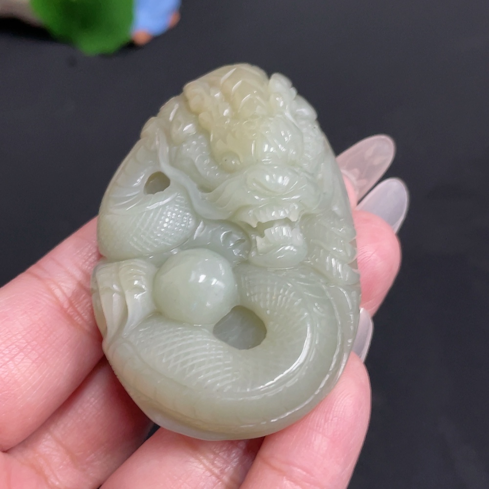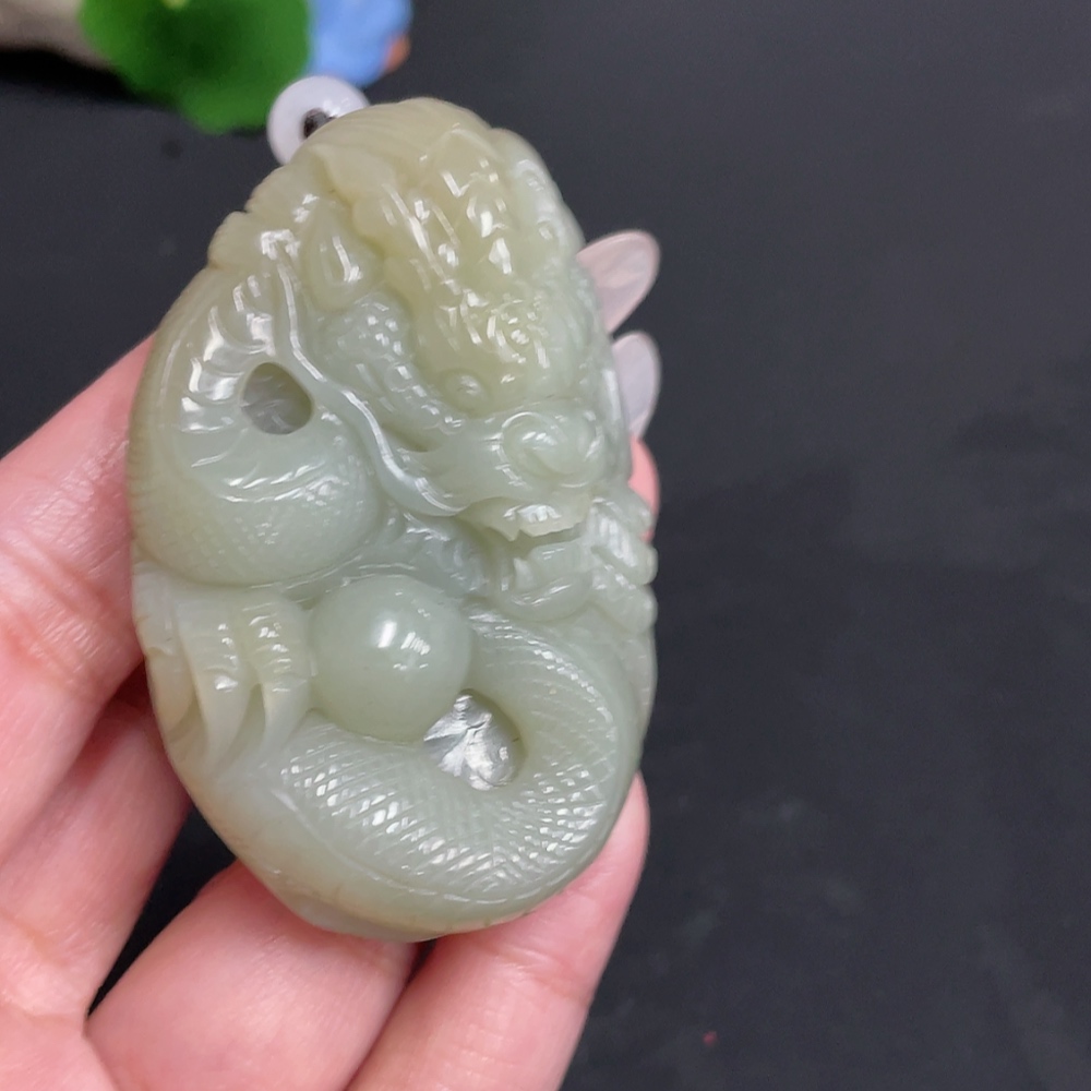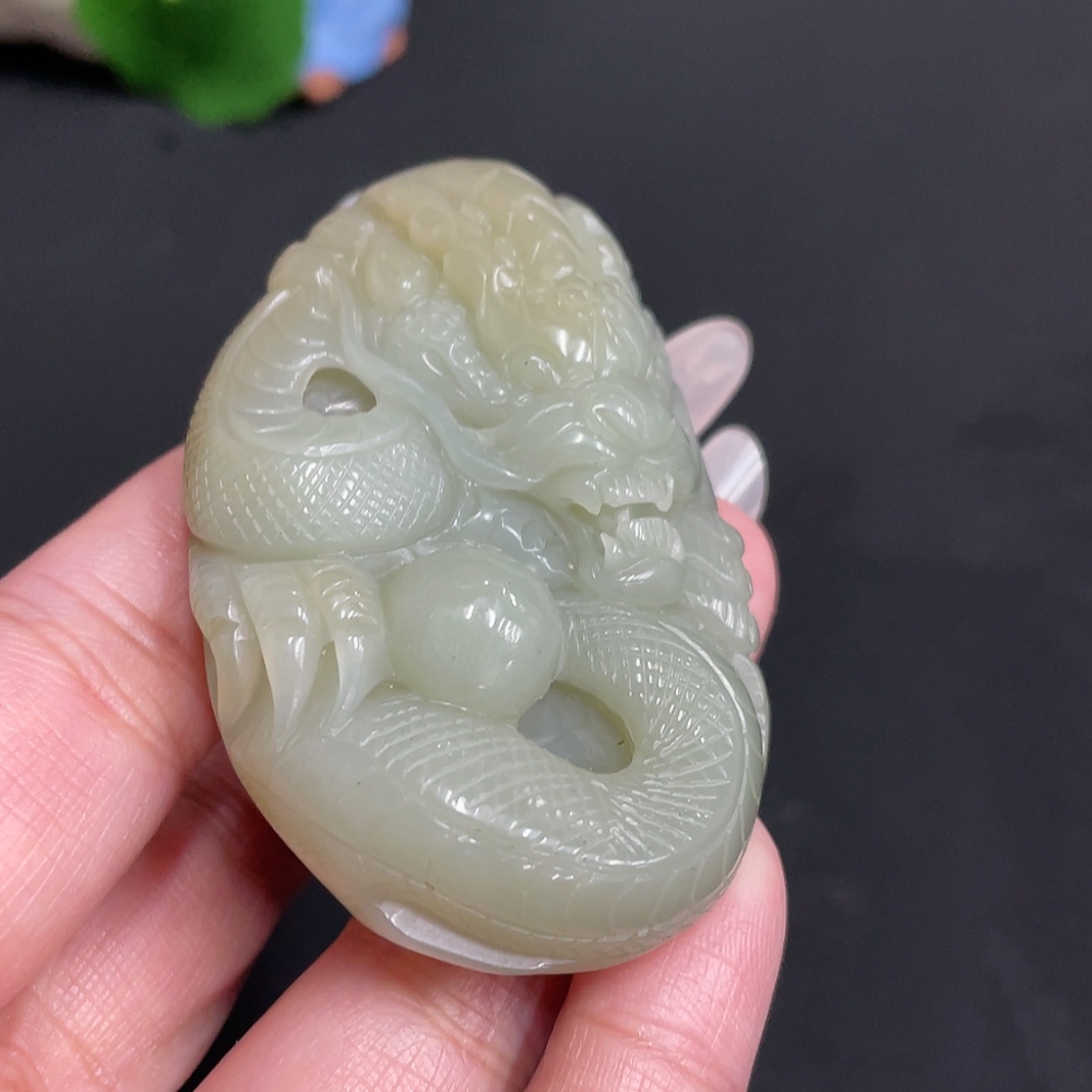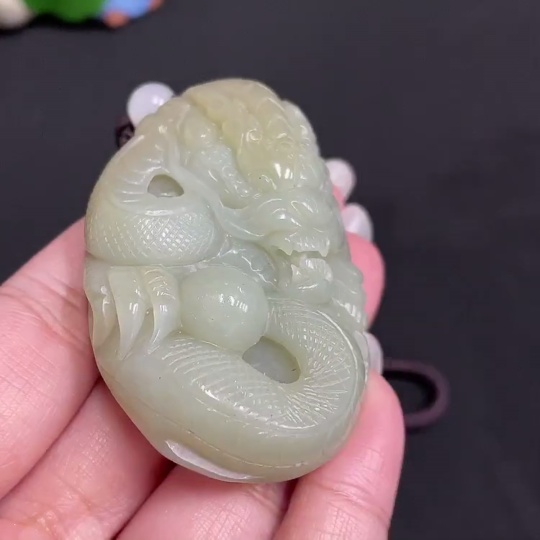 Hetian Jade Pendant Dragon Total Weight Approx. [with Rope] 75g
