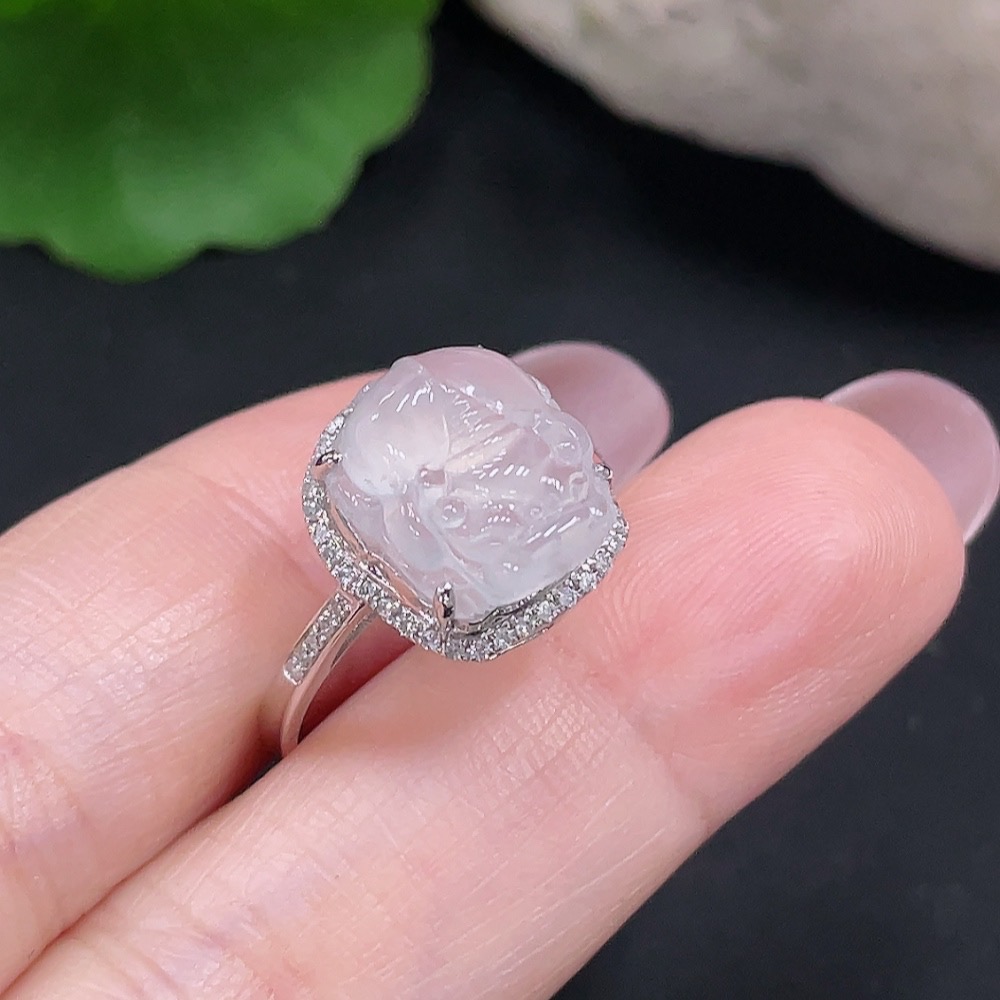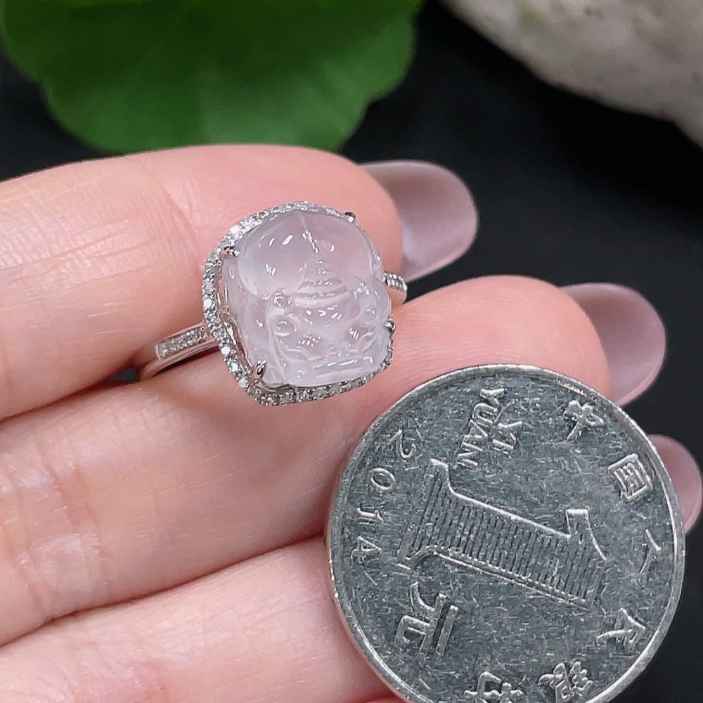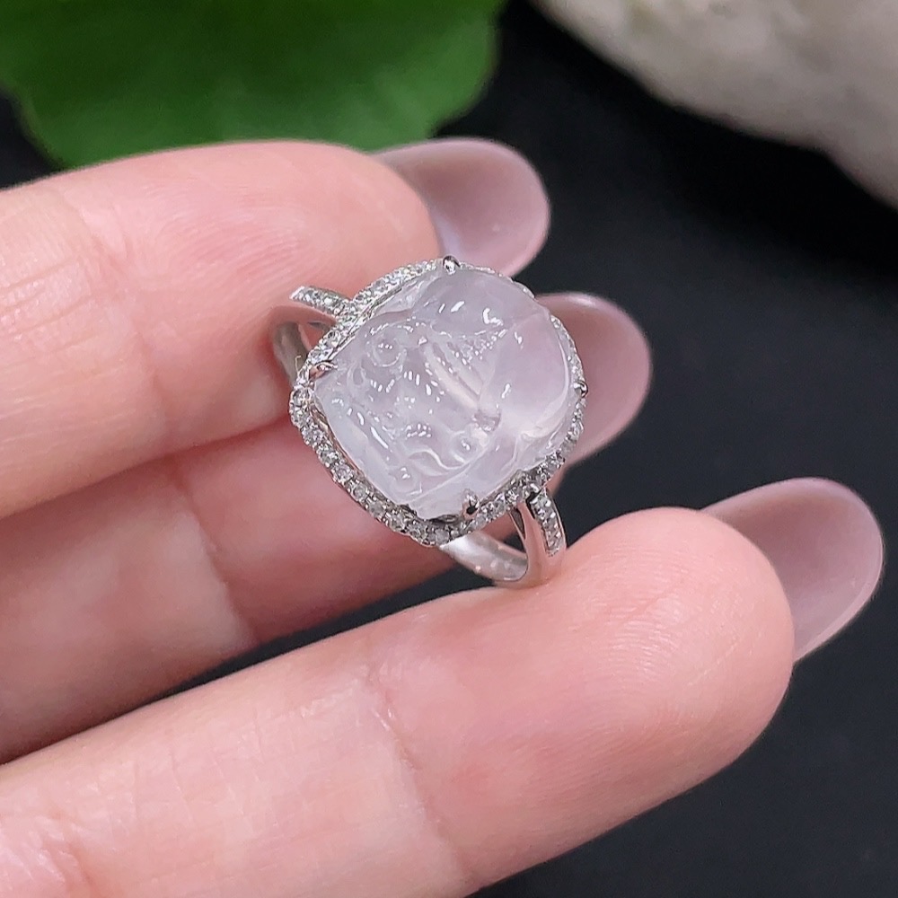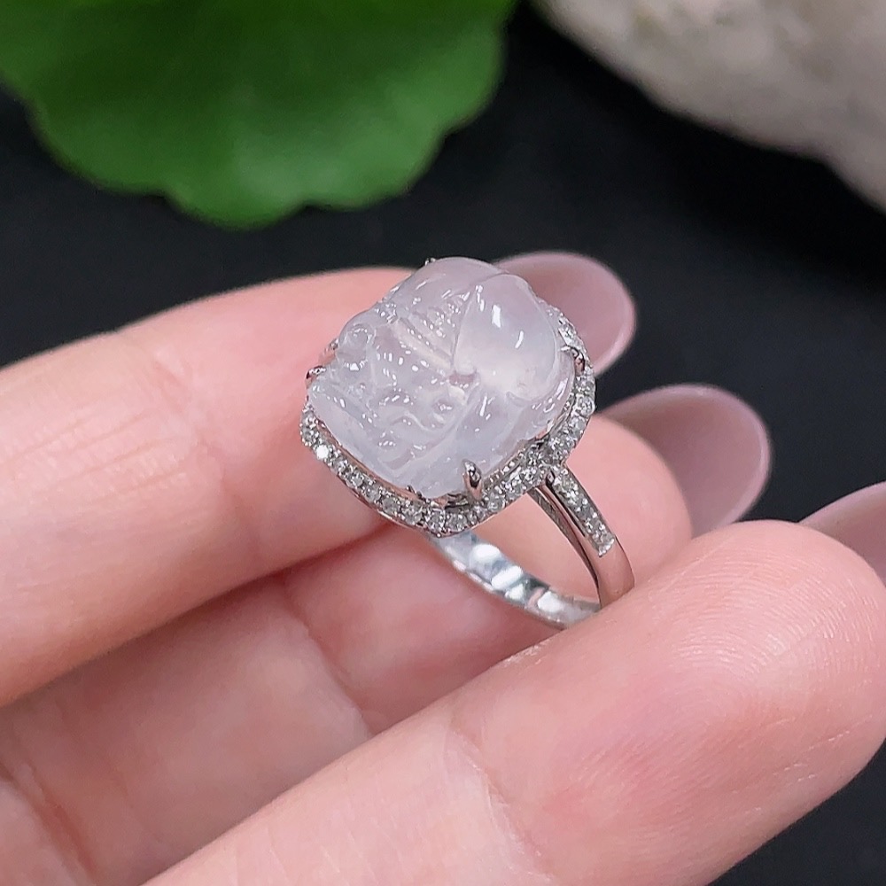 Jadeite Inlaid Ring Size 15 18K Gold Total Weight Approx. 3g (With Diamond Accents)