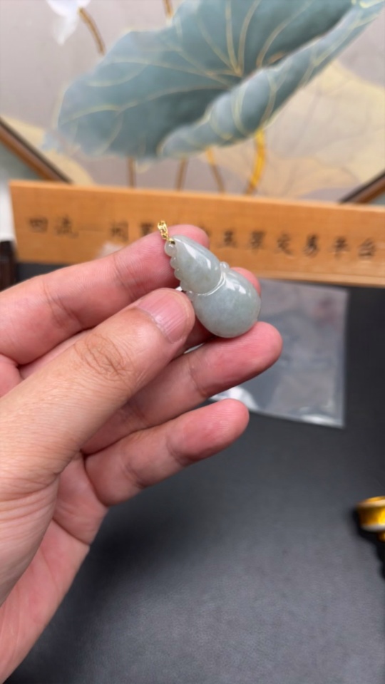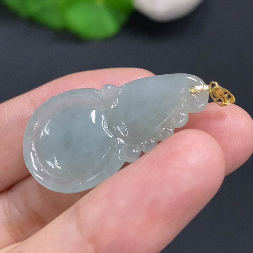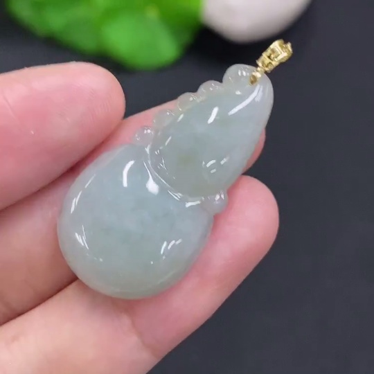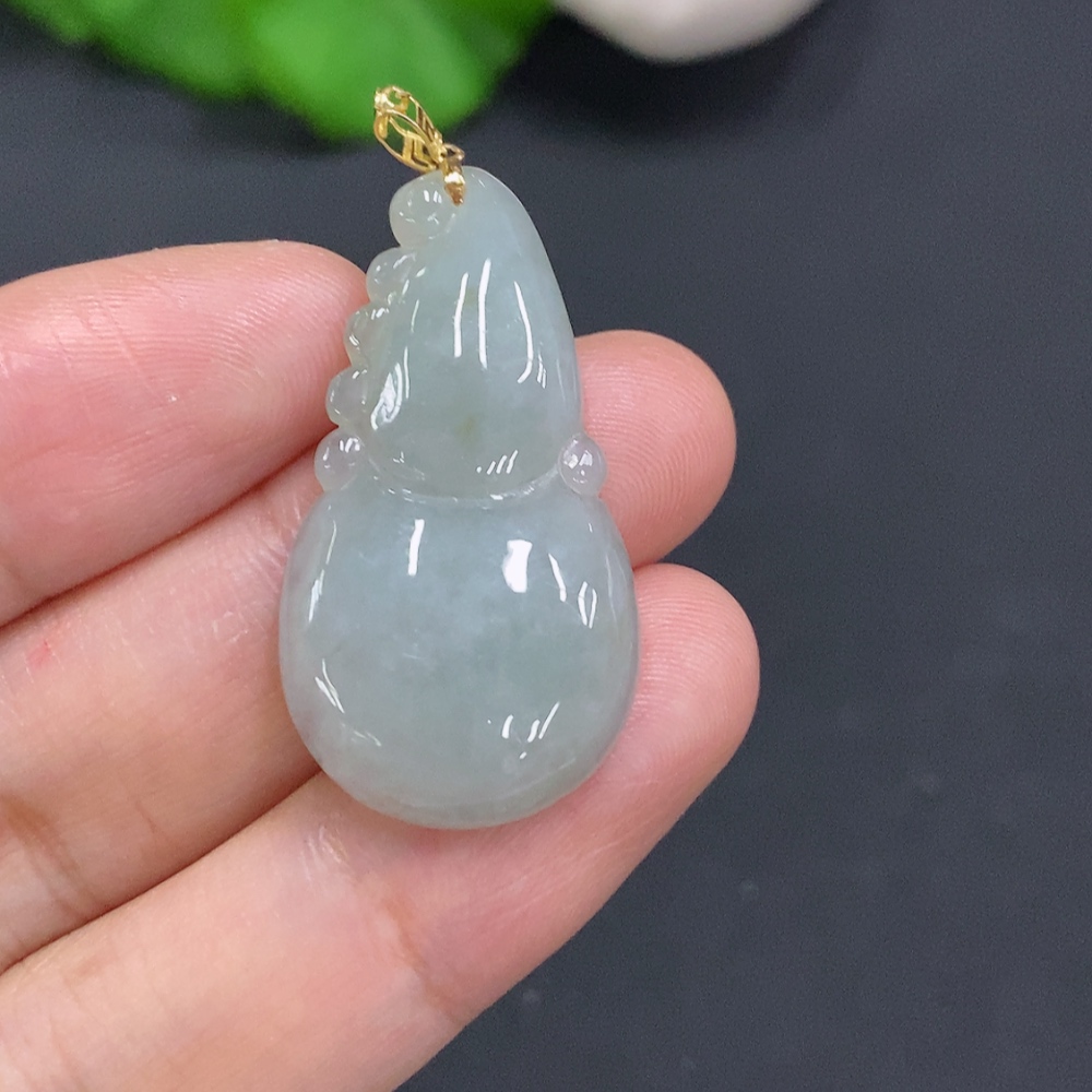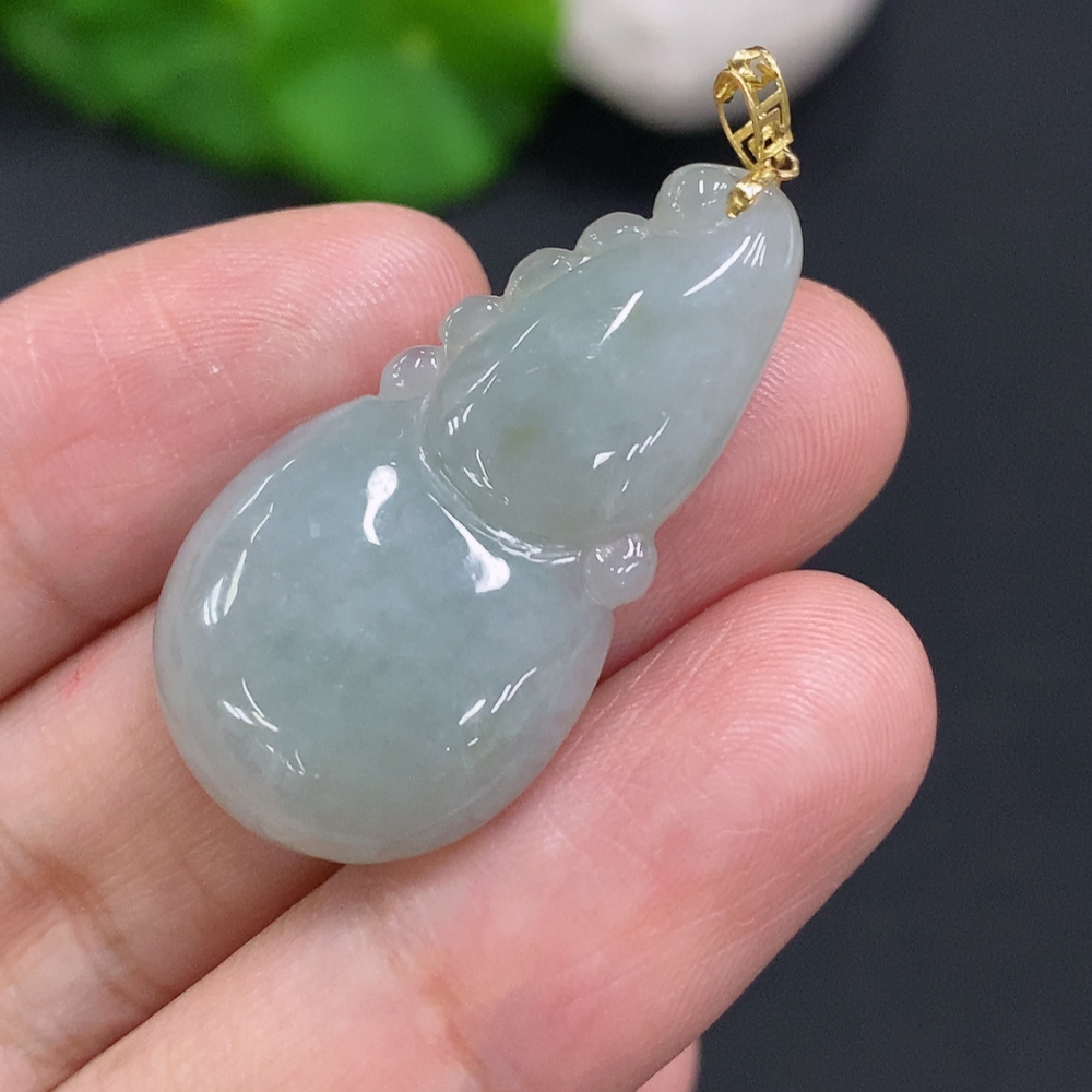 Jadeite Gourd Pendant with 18K Gold Clasp, Total Weight Approximately 5.6g