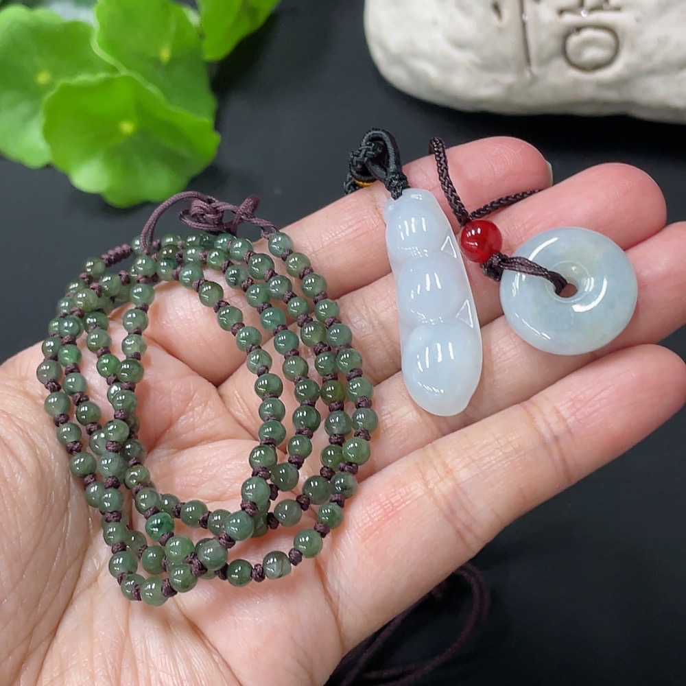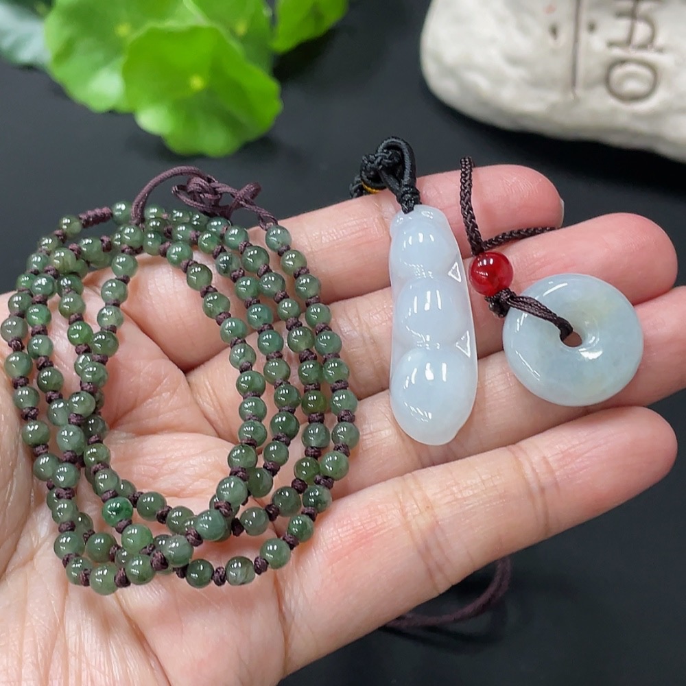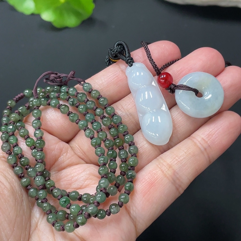 Jadeite pendant + bead chain, card 3.6mm approx, matching beads non-A